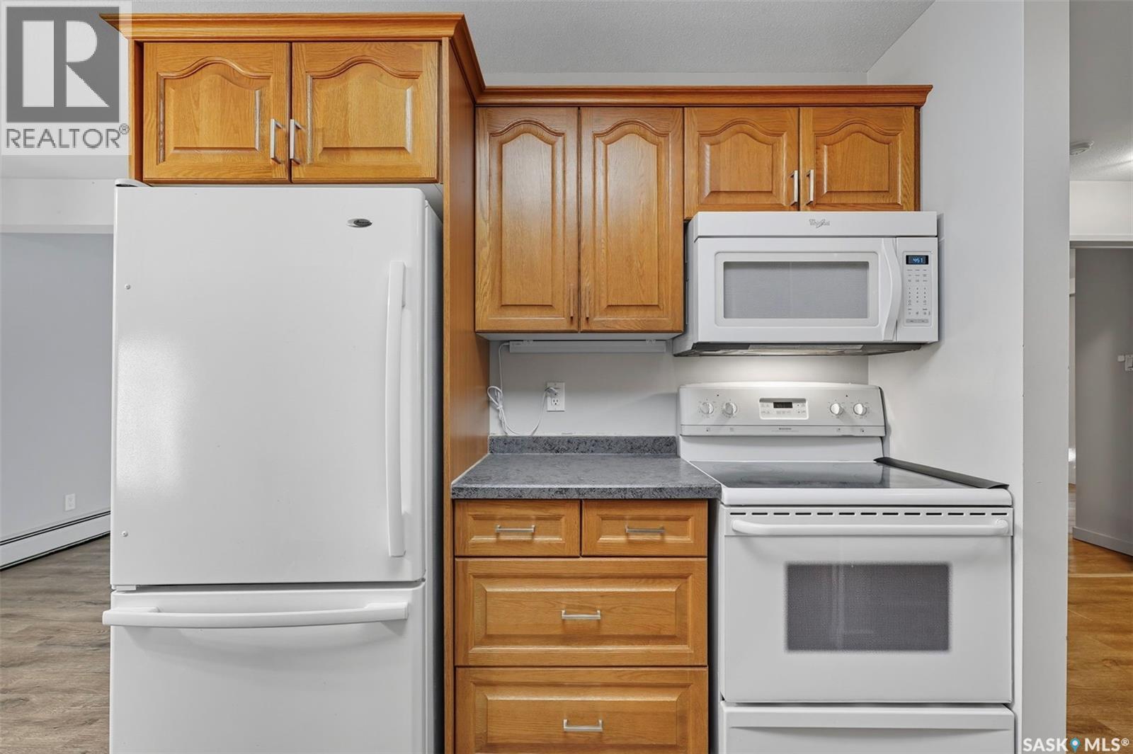 $458 MonthlyWelcome to 101- 307 Tait Crescent, a unit located on the southwest side of the main floor. This 855 sq ft home offers a bright and inviting living space with updated flooring throughout the unit. with a south-facing dining room window and west-facing patio doors. The kitchen offers ample oak cabinet space. Two good-sized bedrooms with closets. In-suite laundry and ALL appliances included. This unit comes with a convenient surface parking stall located in the back parking lot. Building has great bike storage room at back of property! Convenient access to city transit with access to nearby shopping & many amenities.Quick Possession available! Contact your favourite realtor for a private viewing today!! (id:34297)