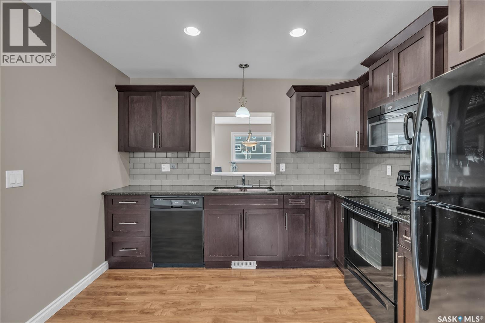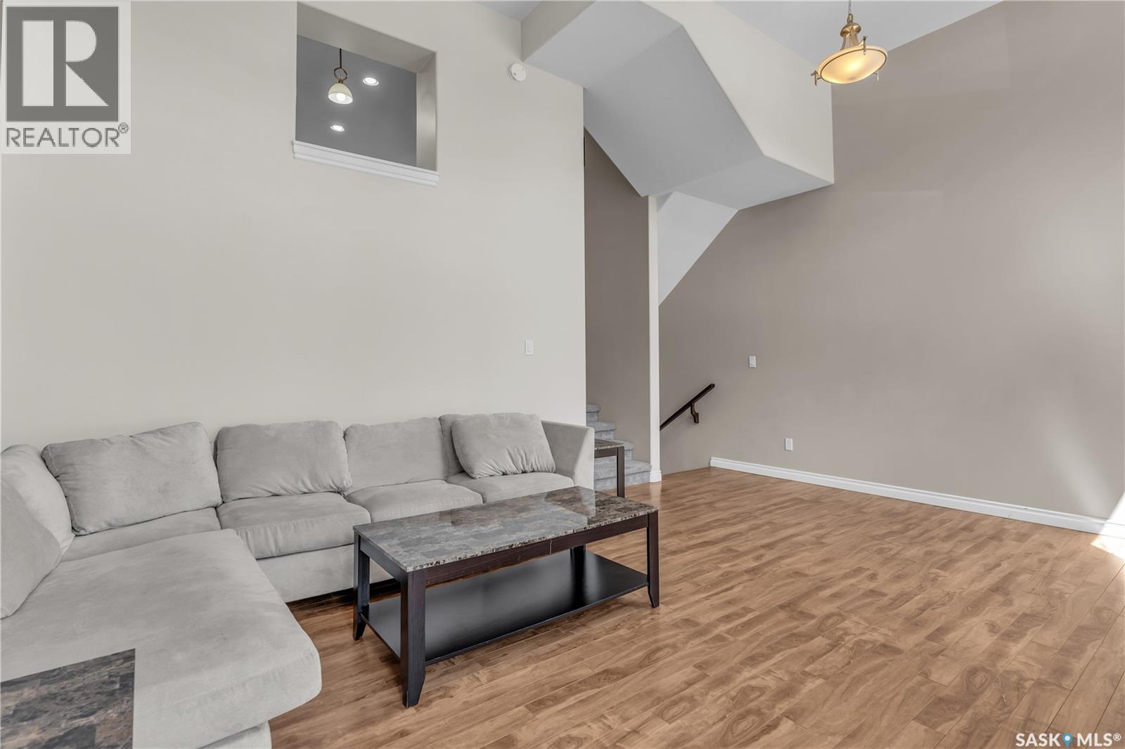 $449.59 MonthlyA Beautiful high-end townhouse for sale in sought-after Stonebridge! This stunning property offers 3 bedrooms, 4 bathrooms, and 1,467 sqft of fully developed living space, this well-maintained home is move-in ready and perfect for families or professionals. From the moment you enter the spacious front foyer, you'll be impressed by the thoughtful layout and natural light. The main level features a stunning, sunlit living room with soaring 12'6" ceilings, large windows, and patio doors that open to your private balcony—an ideal spot to entertain or enjoy your morning coffee while watching the sunrise. The second level showcases a stylish kitchen and dining area, complete with rich espresso cabinetry, stainless steel appliances, a tile backsplash, and a convenient 2-piece powder room for guests. Upstairs on the third level, you’ll find all three bedrooms, including a generous primary suite with a walk-in closet and a 4-piece en-suite. An additional 4-piece bathroom completes this level. In the basement level, you will a family room with another 4-piece bathroom for your additional living space. The utility room and a storage room also locate on this level. Don't miss the video tour on YouTube, and contact your local Saskatoon REALTOR® today to schedule a private showing! (id:34297)