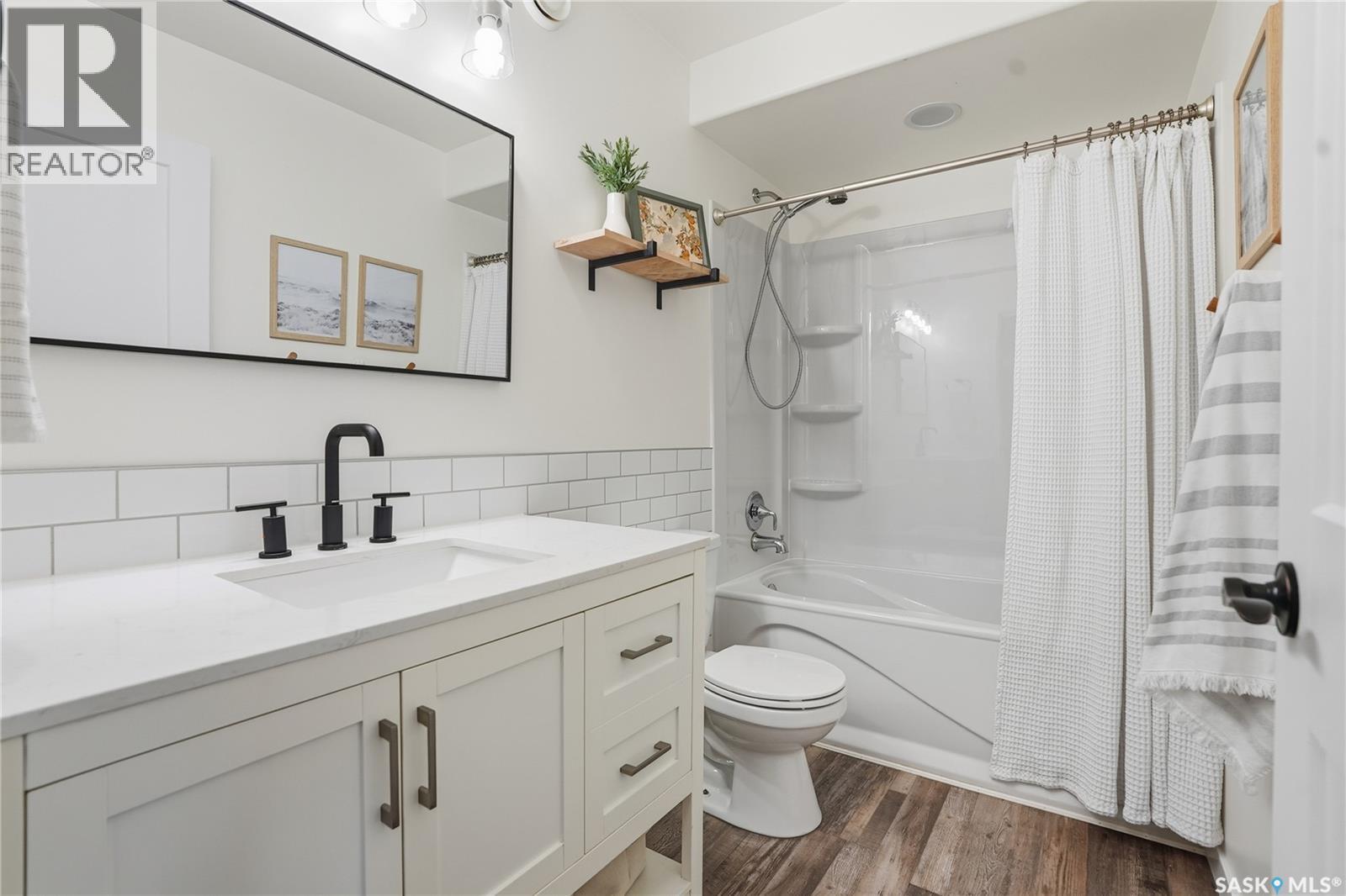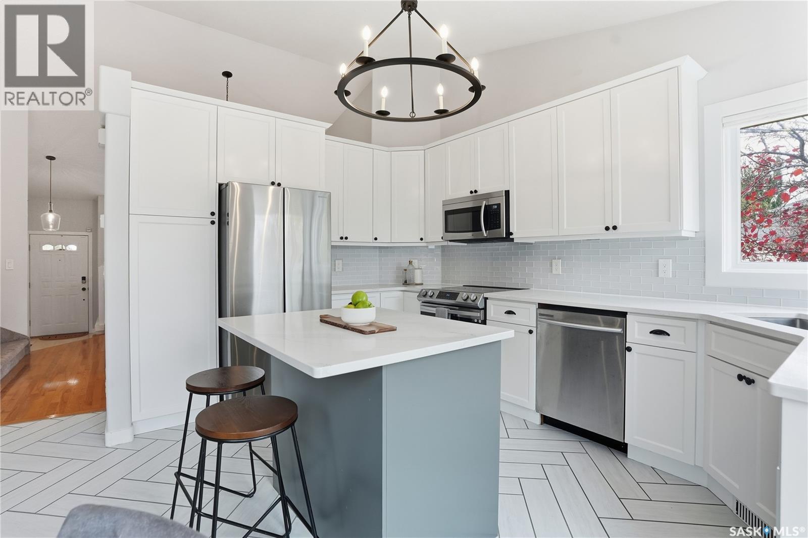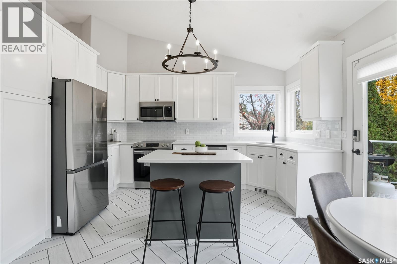 Set on a quiet crescent in the heart of Arbor Creek, this former Dundee show home has been lovingly updated from top to bottom. A home that feels both modern and comfortable, with every space refreshed and ready for what’s next. Light moves easily through the open layout, highlighting the vaulted ceilings, new trim and doors, and warm vinyl plank floors that tie the main living areas together. The kitchen was completely reimagined with quartz countertops, refaced cabinetry, a tile backsplash, new flooring, and a centre island that naturally draws people in. Both the main and ensuite bathrooms have been fully renovated with timeless finishes, while the basement has been completely finished to add extra space for relaxing, working, or hosting guests. Every detail, from new railings and lighting to updated switches, plugs, and built-ins, adds to the sense of care and thought that’s gone into this home. Recent updates include a new furnace, hot water heater, and modern appliances — all adding peace of mind for years to come. Outside, a mature and private yard offers a two-tier deck with glass railing and dura decking, perfect for quiet mornings or evenings under the trees. Located steps from Dr. John G. Egnatoff School, Centennial Collegiate, and Arbor Creek Park, and just minutes from shopping and amenities in University Heights, 103 Budz Crescent is a home that blends everyday comfort with lasting style — a place that feels right from the moment you walk in. (id:34297)
