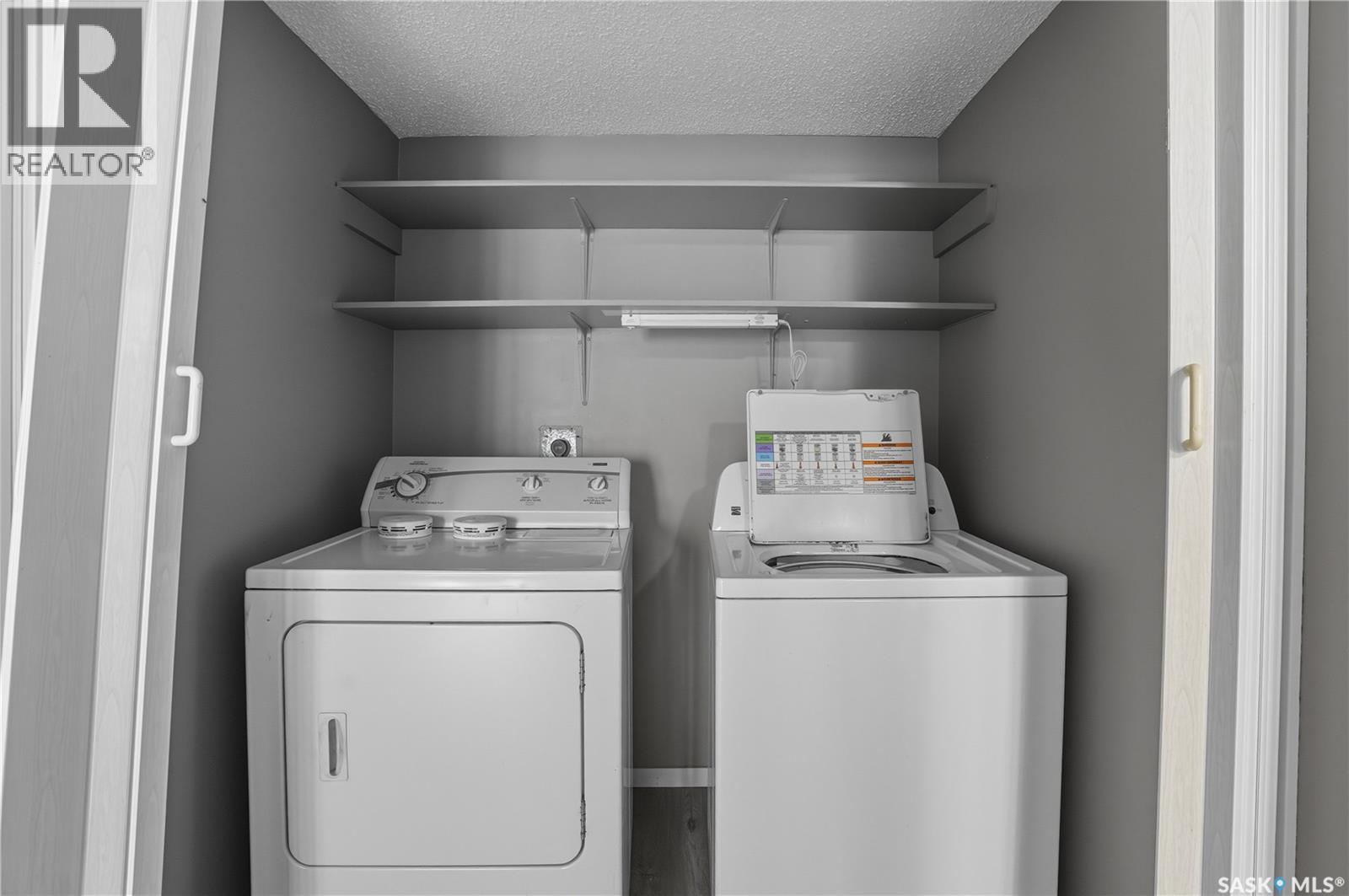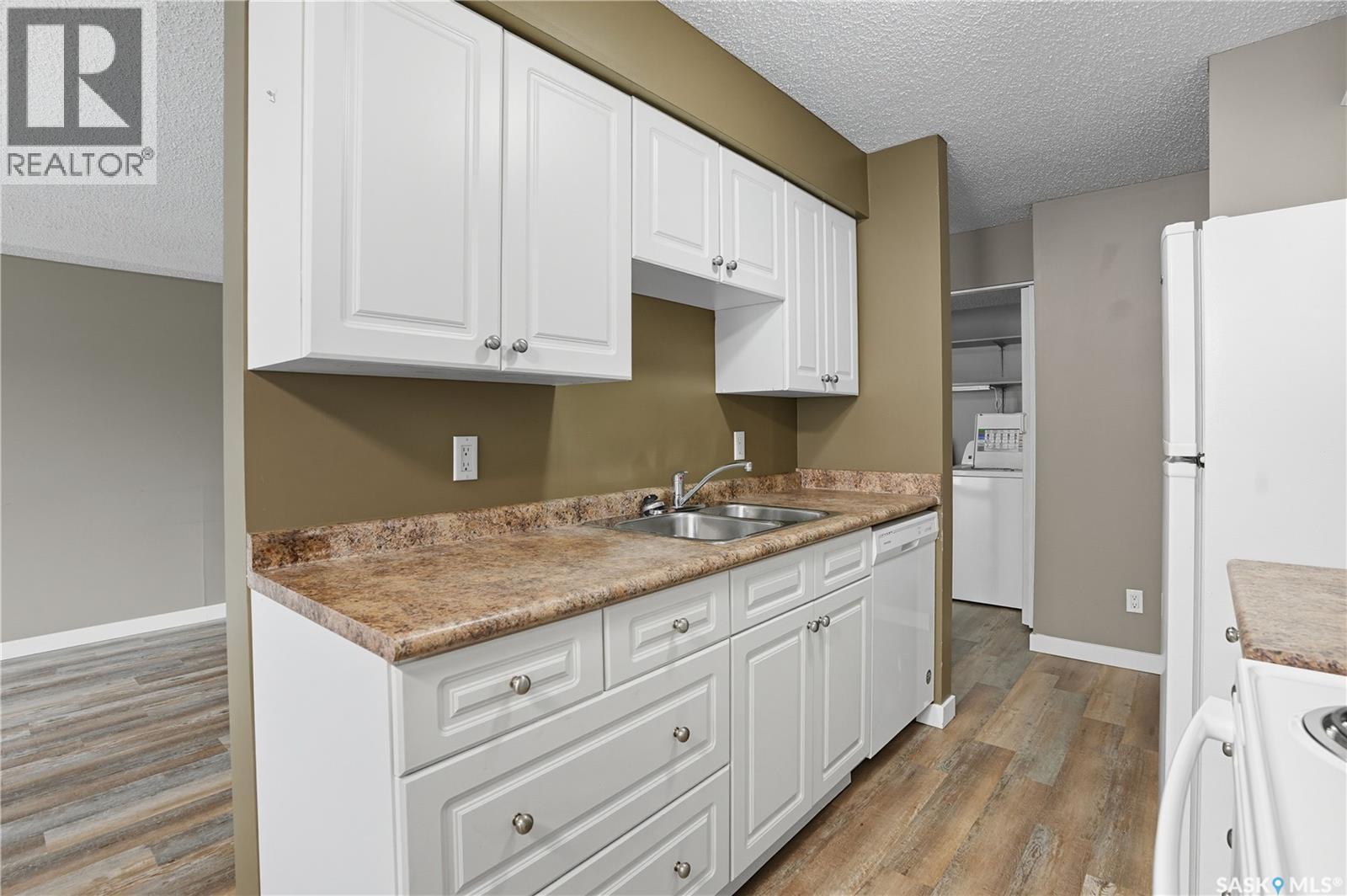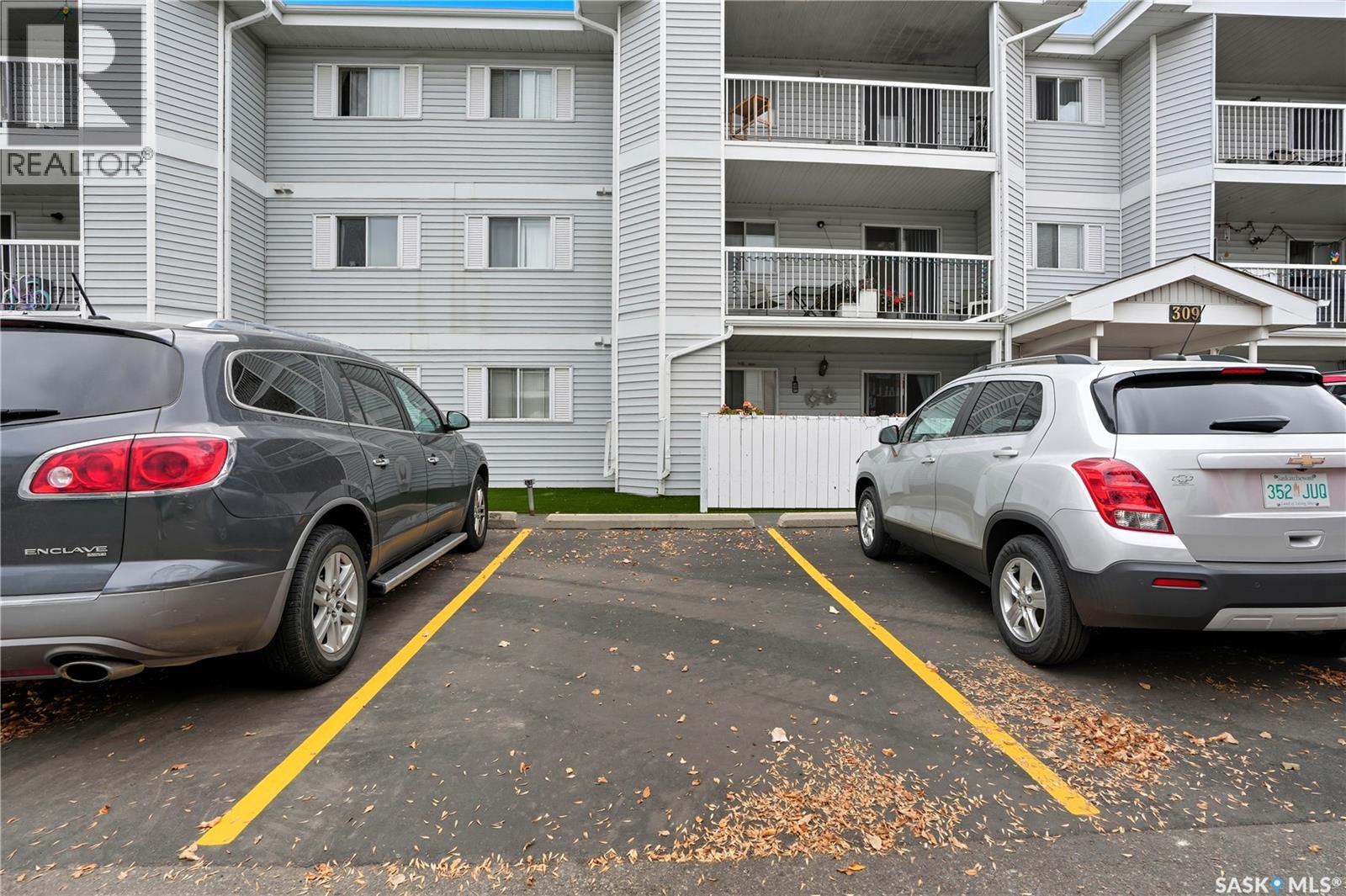 $379 MonthlyGreat Condition 2-Bedroom Corner Unit on the Main Floor at 309B Cree Crescent! Enjoy the convenience of main-floor living in this excellent two-bedroom condo in Saskatoon's North End. With no stairs to climb, you get easy access—perfect for groceries, moving, and everyday life. The unit is in great condition and features updated flooring throughout. Its practical design seamlessly connects the kitchen and dining area to a comfortable living room. Step outside from the living room onto your patio space, which includes dedicated outside storage. The suite also boasts 2 good-sized bedrooms, a full bathroom, in-suite laundry (washer and dryer included), and comes with a convenient electrified parking stall. The location is ideal! You're within walking distance to Lawson Heights Mall, medical clinics, and restaurants, with all major transportation and shopping options nearby. This property offers fantastic value and is a must-see! Call today for your private showing. (id:34297)