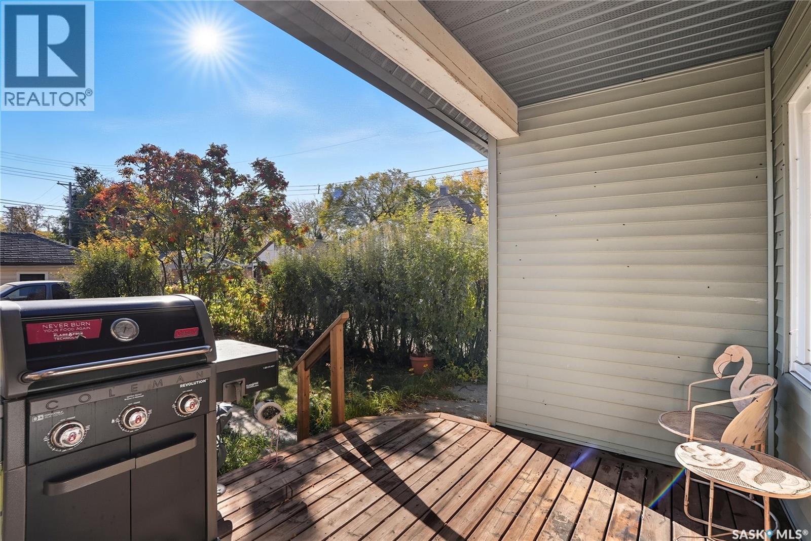 Great Buena Vista Location on this 1 1/2 storey Home, corner Lot Adjacent to Alley. All expensive upgrades are done, zero maintenance metal roof, siding with 2" of insulation, all Newer windows & Front door. Covered rear deck plus Front deck on the front, to enjoy both sun & shade. Single detached garage plus one Asphalt Parking space. Huge master bedrooms on the 2nd level. It could be converted back to two bedrooms. Great Alternative to Condo Living on this east side home, all for only $234,900. (id:34297)