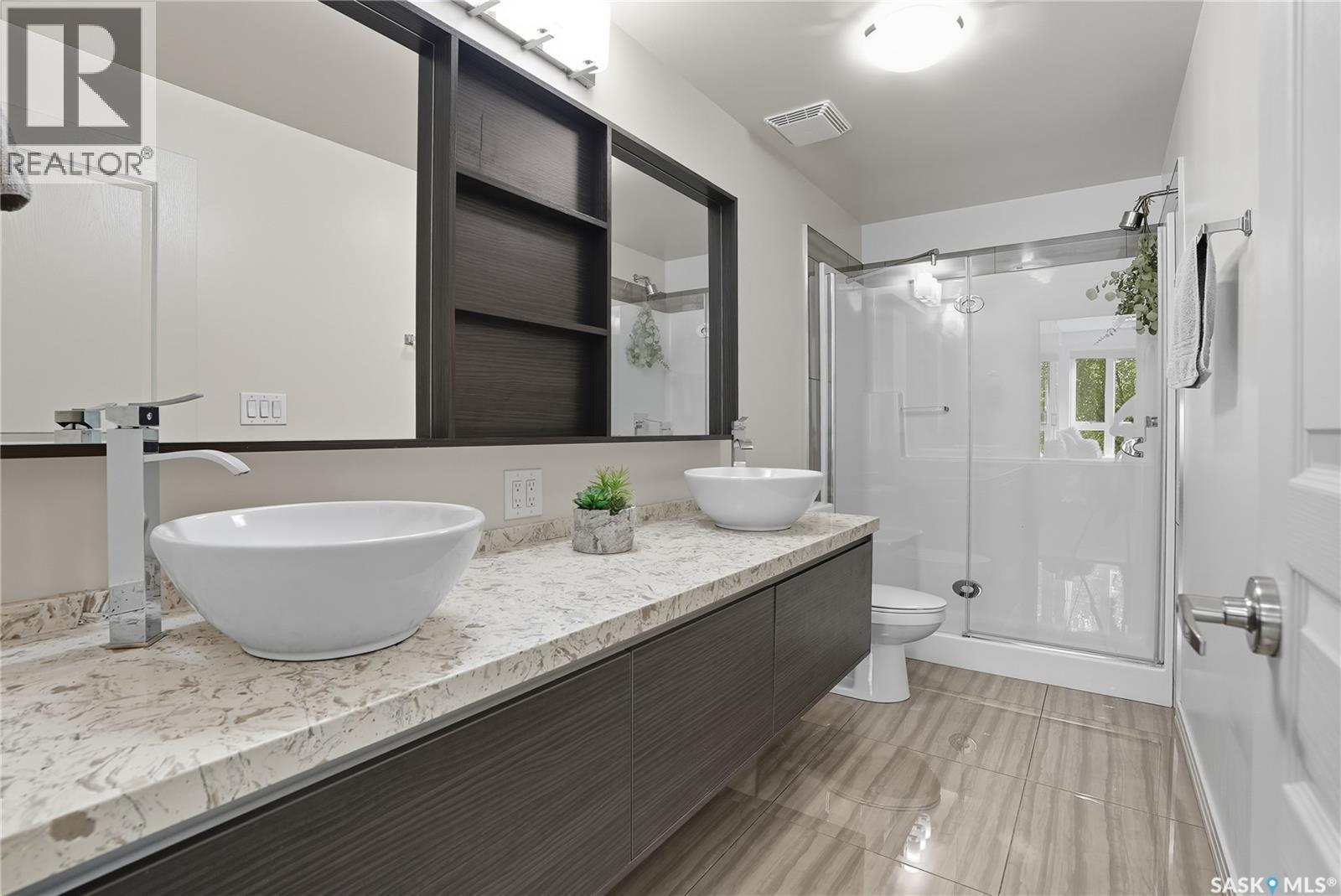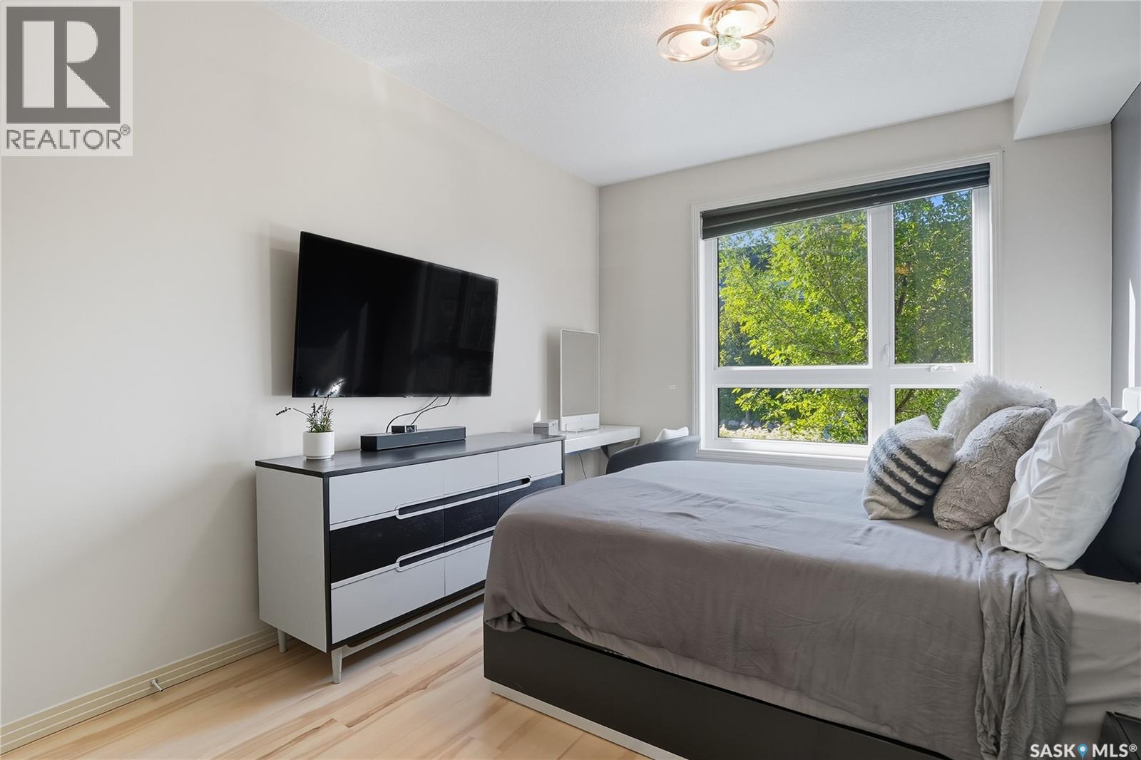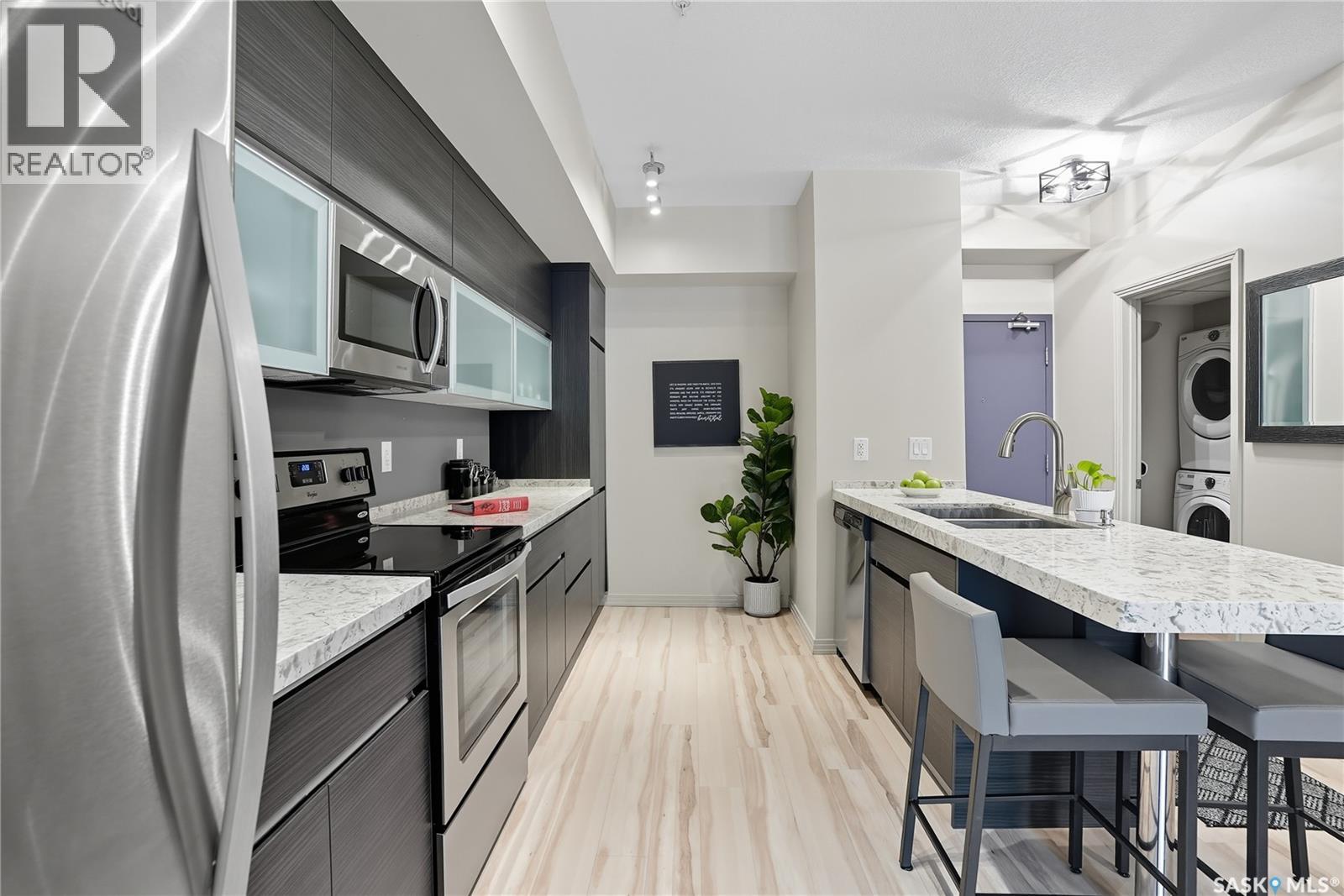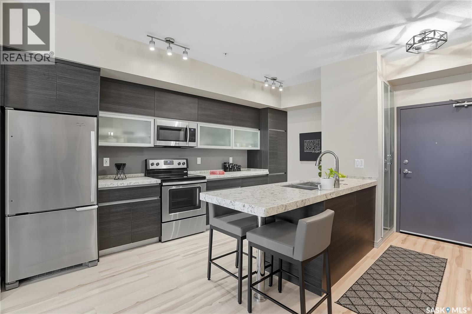 $425 MonthlyWelcome to 223 Evergreen Square #120 – a beautifully maintained 900 sq. ft. ground-level condo located in the heart of Evergreen, Saskatoon. This immaculate 2-bedroom, 2-bathroom unit stands out with its rare private entrance from the street, offering added convenience, privacy, and a townhouse-like feel that most units in the building don’t have. Inside, you'll find a bright and modern living space featuring in-floor heating, central air conditioning, and elegant quartz countertops throughout. The primary bedroom includes a tiled ensuite with a dual vanity, adding a touch of luxury to your daily routine. Enjoy the outdoors from your oversized terrace, complete with glass railings and durable, foot-friendly vinyl decking—perfect for entertaining or relaxing with views of Amphitheatre Park right across the street. This home also comes with an underground parking stall and a private storage unit located just beside it for added convenience. Residents of the building enjoy access to a yoga room, games room, and a pet-friendly “Doggy Spa” wash station, making it ideal for both active lifestyles and pet owners. Located close to public transit, walking paths, and local amenities, this unit offers a perfect balance of comfort, style, and accessibility. (id:34297)
