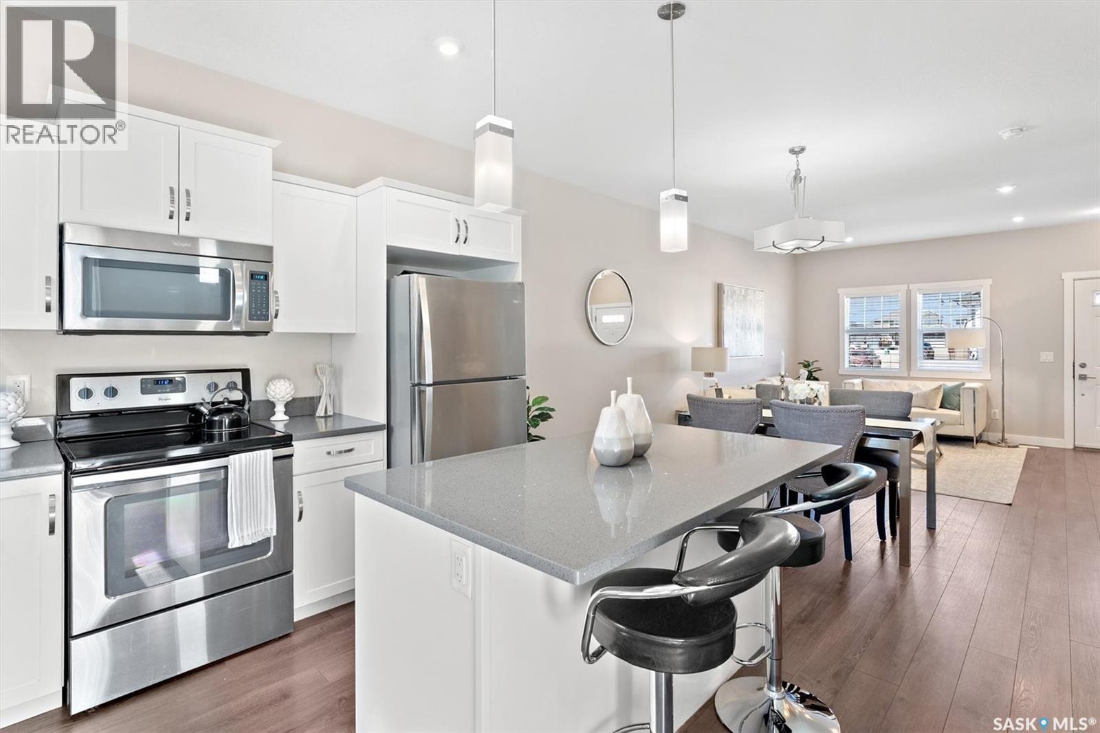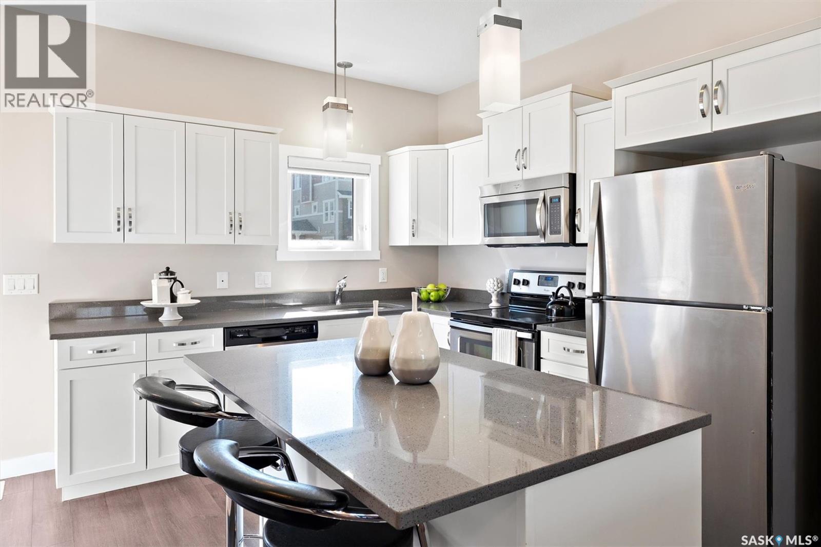 $258.26 MonthlyLow condo fees = $258/month. Welcome to 1214 Pringle Way, a charming townhouse in the sought-after Living Stone community of Stonebridge. This two-story home offers 2 bedrooms, 2.5 bathrooms, an east-facing deck, and two electrified parking spots, plus convenient on-street parking. The main floor includes a cozy living room, a dining area, a 2-piece bathroom, and a well-equipped kitchen. Upstairs, you’ll find two bedrooms, a large laundry room, and 2 bathrooms one with a 4 piece ensuite and another 4 piece common bathroom. The unfinished basement is ready for future development—potentially an extra bedroom or bathroom. This unit features air conditioning, window coverings, durable laminate floors, and stylish quartz countertops. The community is ideally located near parks, schools, and numerous amenities, with easy freeway access. Pet owners will appreciate that the pet policy allows up to two pets, pending approval. Stonebridge is a welcoming, family-friendly neighborhood with biking and walking paths, convenient access to the University of Saskatchewan, and nearby shopping options including Sobeys, Walmart, Home Depot, and more. Local dining options include Brown's and The Canadian Brewhouse, as well as a range of salons, banks, a Co-op gas station, and Motion Fitness. This development offers everything you need, with easy access to all major amenities and transportation. Don’t miss out—call now to schedule a private viewing! (id:34297)
