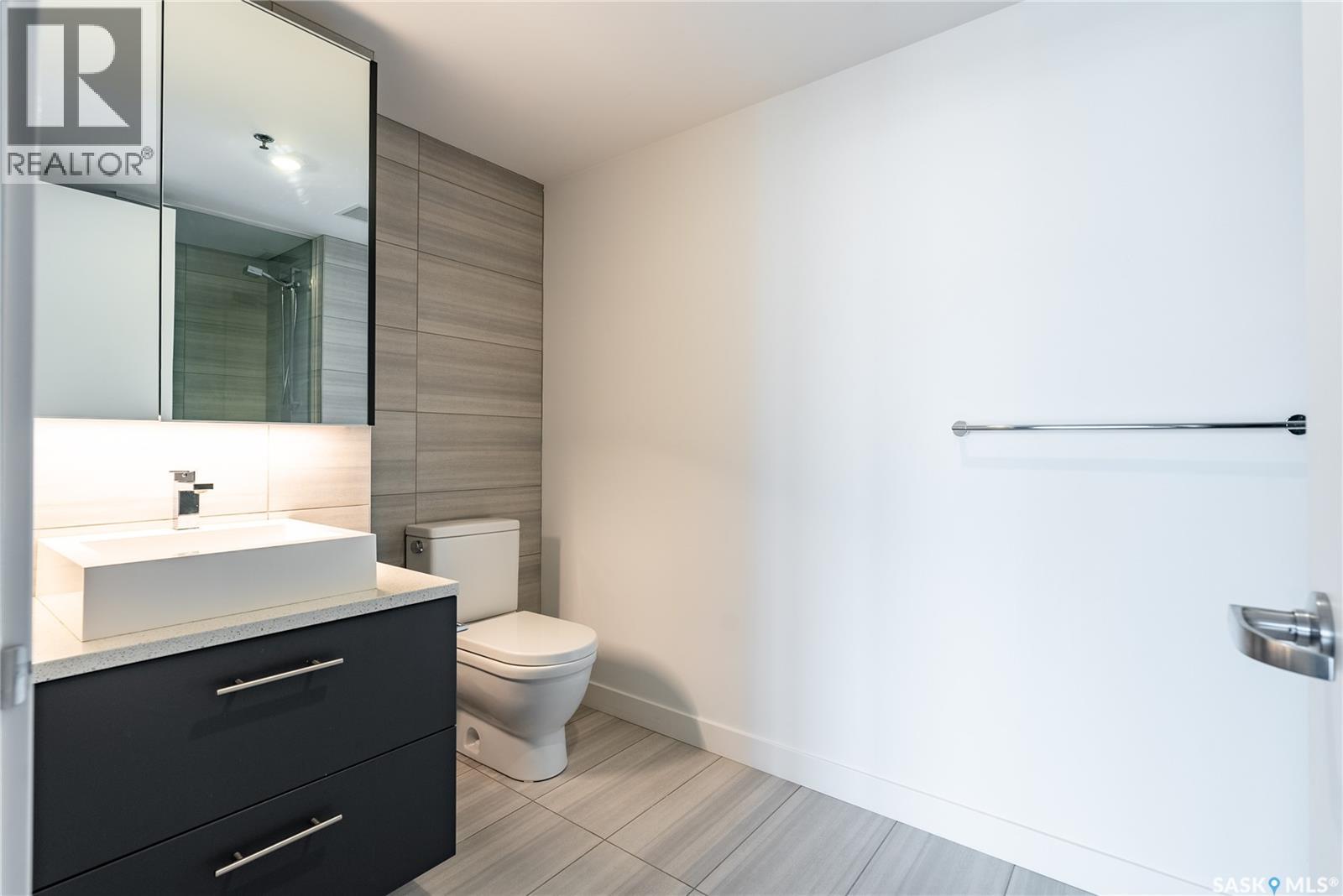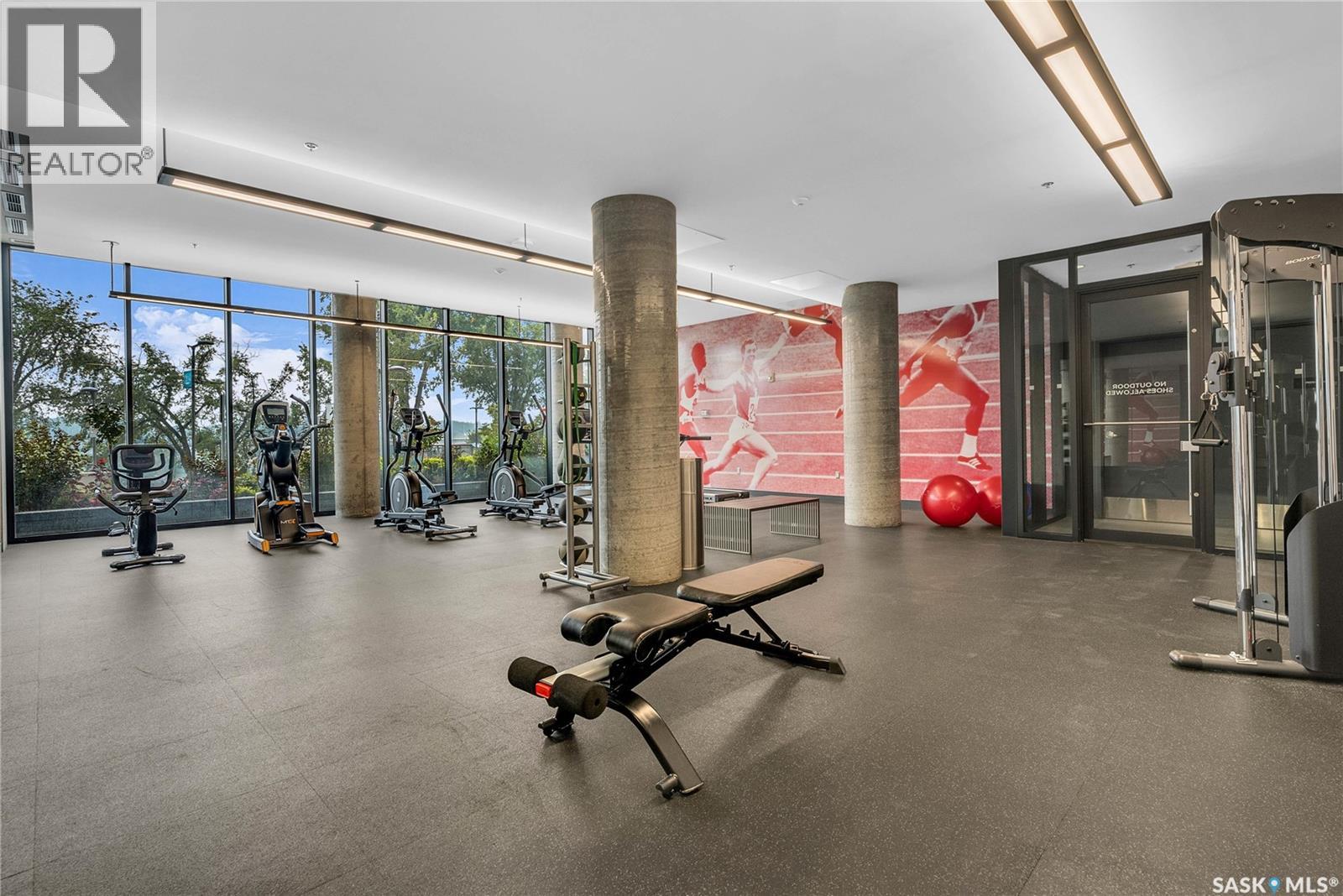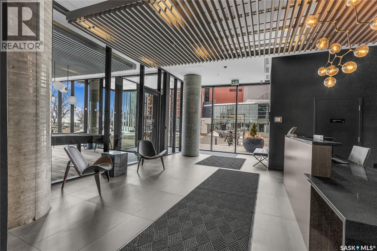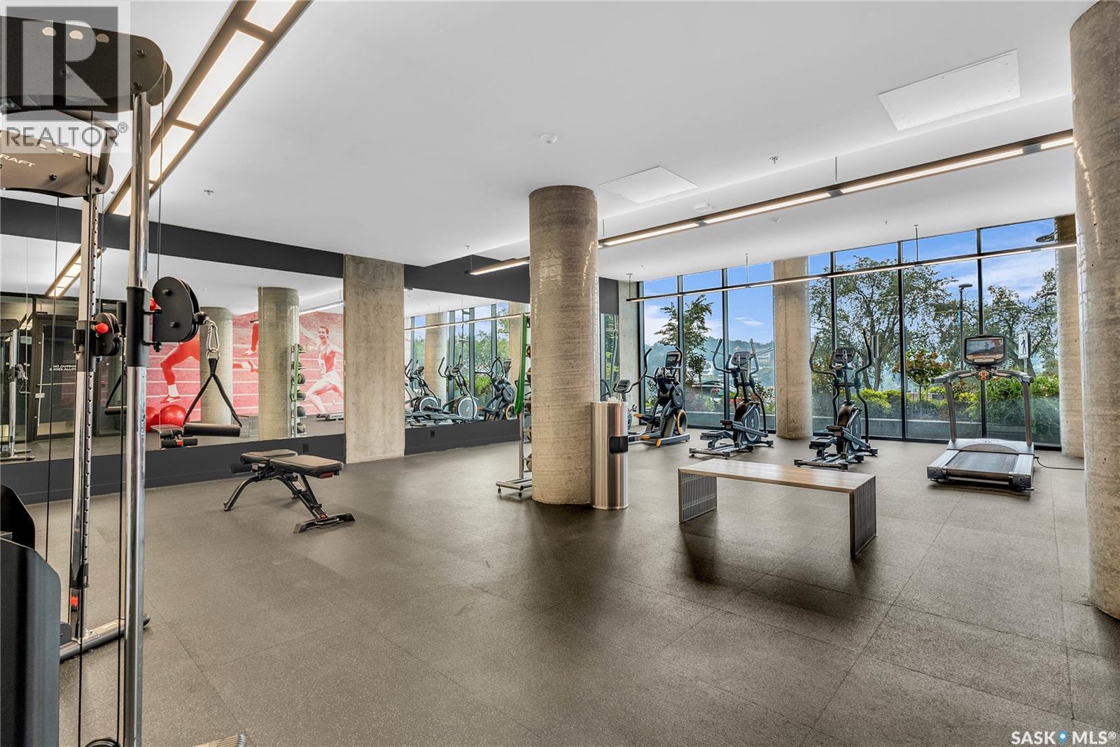 Stunning 13th floor unit at No. 1 River Landing, featuring an expansive view of Saskatoon's downtown, River Landing Park and the South Saskatchewan River. Great layout with 9 ft concrete ceilings, kitchen with quartz counters and stainless steel appliances, 2 bedrooms + den and two bathrooms. Primary bedroom has direct access to the balcony and features a walk-thru closet open to your ensuite with a tiled shower. Second bedroom has a large closet and sliding door entry. Laundry (new washer & dryer!) and additional bathroom are tucked away from the main living space. The floor to ceiling windows run along the whole west side of the unit in the primary Bedroom and spacious living room. This home has central air conditioning, underground parking, storage space, gym and amenities room with pool table and kitchenette. Located just steps away from the river, Remai Modern, many local restaurants, the movie theatre and Midtown Mall. Easily access all downtown amenities and Circle Drive ensuring you're well-connected. (id:34297)