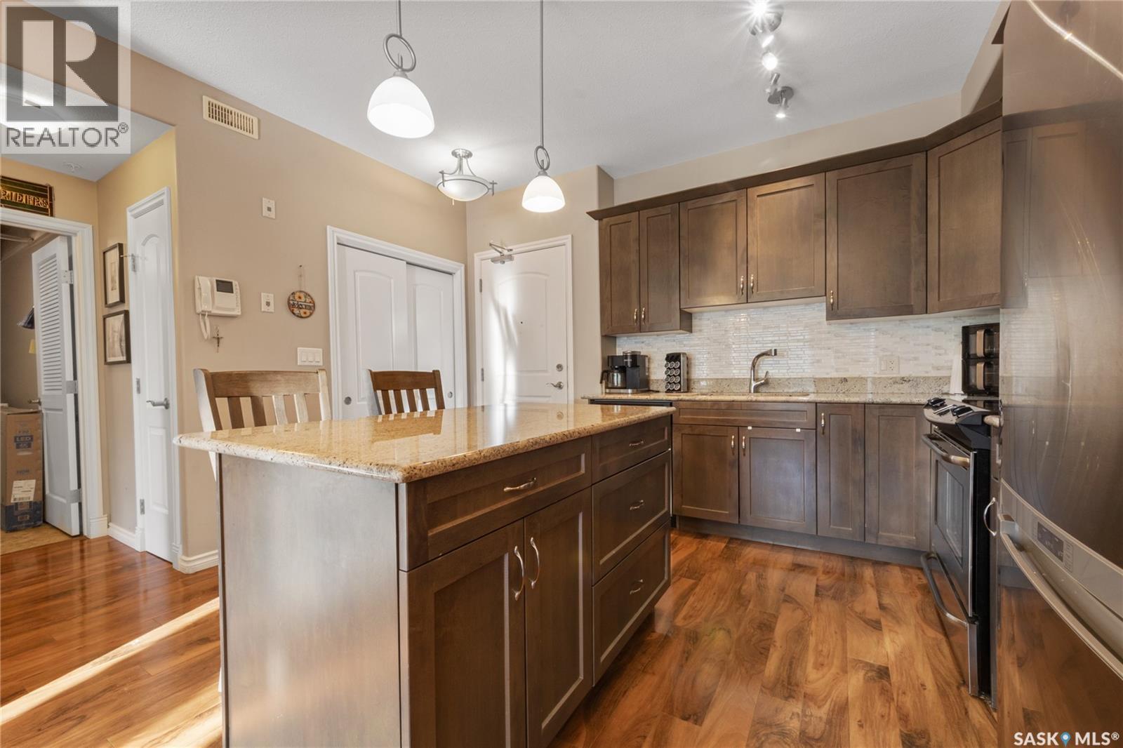 $469.31 MonthlyWelcome to 2710 Main Street, Unit 136, a bright and beautifully designed 753 sq. ft. condo in the heart of Greystone Heights—where location, comfort, and a little personality come together. This home features one massive bedroom (yes, massive—your king bed, dressers, and ego will all fit) and a 4-piece Jack-and-Jill bathroom that works perfectly as both a main bath and a private ensuite. The west-facing attached deck delivers tons of natural light and evening sunsets—ideal for winding down after work or pretending you’re a morning person with a coffee in hand. Inside, the luxurious kitchen shines with maple cabinetry, granite countertops, and a spacious island, making it equally suited for entertaining guests or reheating leftovers in style. You’ll also enjoy in-suite laundry (because hauling laundry down the hall is overrated), one underground parking stall, and a separate storage unit for all the stuff you swear you’ll organize one day. Located across the street from Greystone Park and School, this building offers an unbeatable east-side location with green space, walking paths, and everyday amenities just steps away. Whether you’re a first-time buyer, downsizer, or savvy investor, this condo proves that great things really do come in well-laid-out packages. (id:34297)