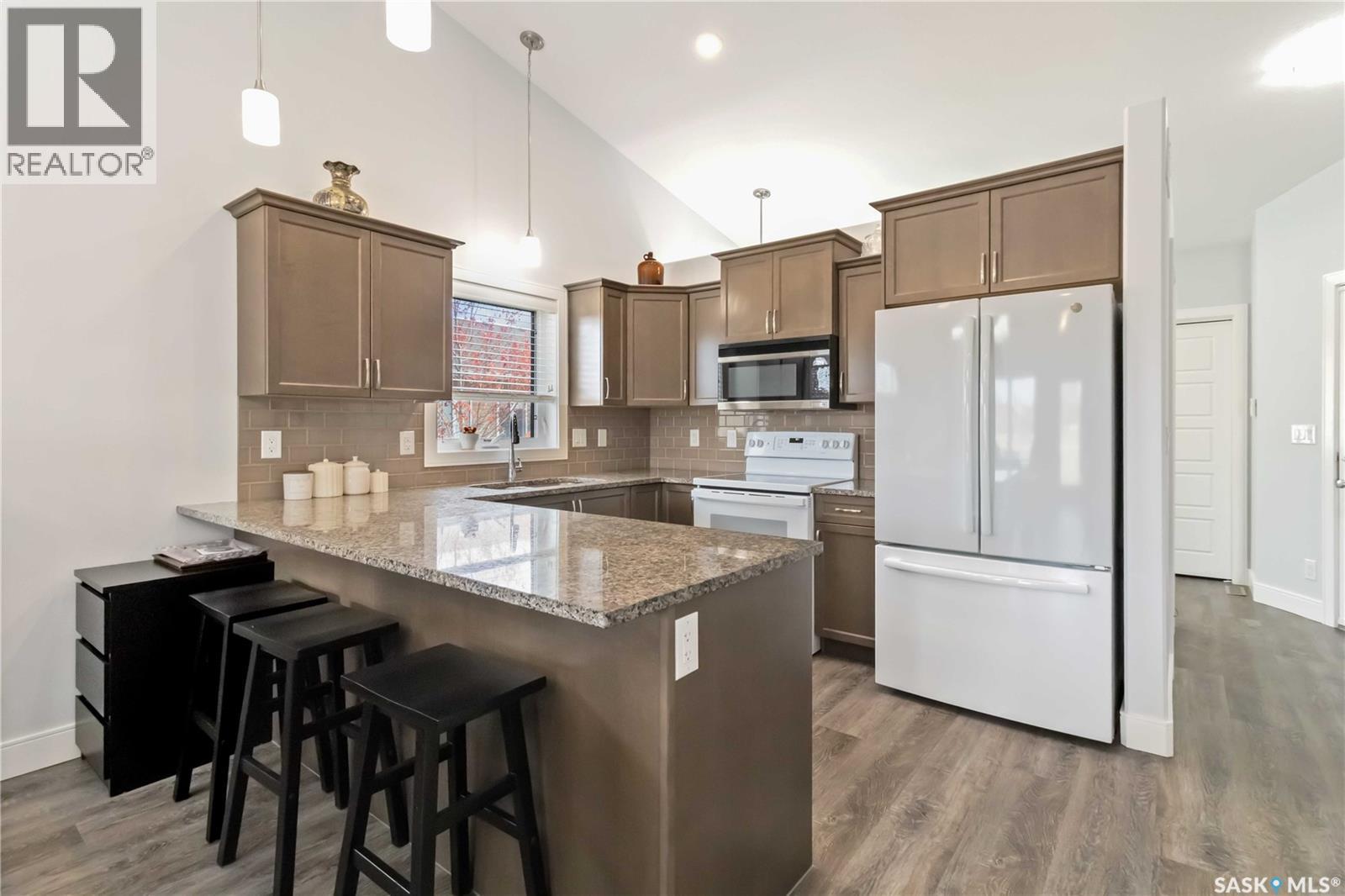$450 MonthlyWelcome to #14 – 3214 11th Street West, nestled in the serene Highlander Ridge complex. This beautifully maintained 1,033 sq ft bungalow end-unit townhome is located in the highly sought-after Montgomery Place neighbourhood, known for its mature trees, quiet streets, and peaceful atmosphere. With easy access to shopping, restaurants, transit, and Circle Drive, this location offers the perfect balance of convenience and tranquility. This well-designed home features 3 bedrooms and 3 bathrooms, ideal for families, downsizers, or those looking for extra space for guests. The main floor offers two bedrooms and two bathrooms, while the fully developed basement provides an additional bedroom and bathroom. The heart of the home is the open-concept kitchen, dining, and living area—perfect for both everyday living and entertaining. The kitchen features dark cabinetry, quartz countertops, a pantry, and four appliances, including a newer stove and fridge. The main floor has been freshly painted (April 2025) and showcases updated flooring (May 2025), giving the space a fresh, modern feel. Additional conveniences include main floor laundry and central vacuum. The lower level is thoughtfully developed with pot lighting and dimmers, creating a warm and inviting atmosphere. A secondary kitchen area with fridge, dishwasher, and sink, along with a dining space, offers excellent flexibility. A pocket door separates a private living area—ideal for guests, extended family, or a quiet retreat. The basement also includes a spacious bedroom with a large closet and a bathroom featuring heated tile flooring, along with ample storage throughout. Enjoy outdoor living on your 14’ x 12’ deck, complete with a natural gas BBQ hook-up—perfect for relaxing or entertaining. The single attached insulated garage with direct entry adds everyday convenience. Don’t miss your opportunity to own this exceptional home in a desirable community—schedule your private showing today! (id:34297)