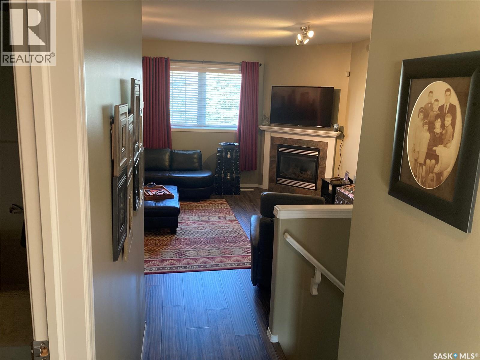 $325 MonthlyWelcome to #15-110 Dulmage Cr. This spacious 2 bedroom 4 bathroom townhouse shows pride of ownership coupled with a convenient location. As an end unit it has a bonus window that contributes to a bright main floor with an open concept kitchen, dining and living room. All this flows seamlessly to the quiet private deck overlooking the complex green space. Upstairs the great room is perfect for entertaining guests or relaxing by the gas fireplace. It features 10' ceilings with a great view of the park. Large master bedroom with ensuite easily accommodates a king size bed. As a bonus both upstairs bedrooms feature walk in closets. Basement is finished with a half bath and currently used as another bedroom. Recent upgrades include: newer sink and counter tops, dishwasher, fridge, microwave, water heater and shingles in 2024. This townhouse comes with an attached hard to find heated double garage. It is located with in easy walking distance to all Stonebridge shopping amenities, medical as well as elementary schools. Well maintained complex with only 18 units is a short 10 minute drive to university with convenient bus access (id:34297)