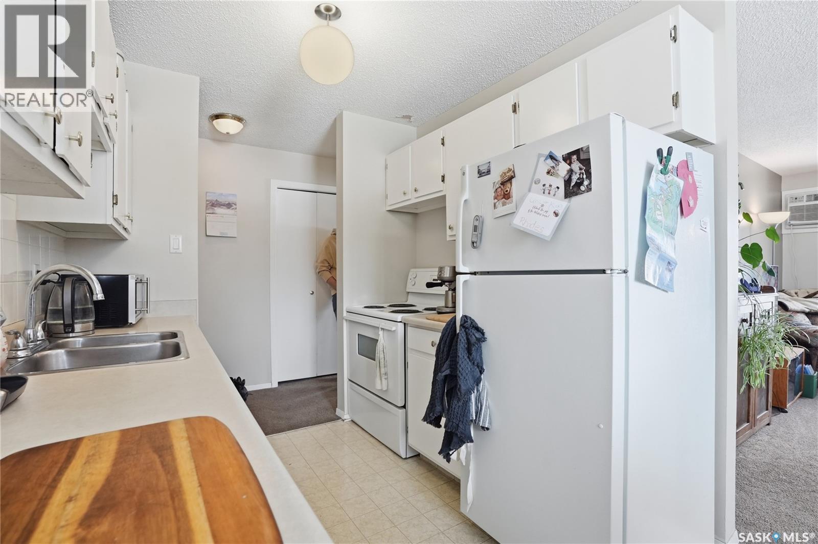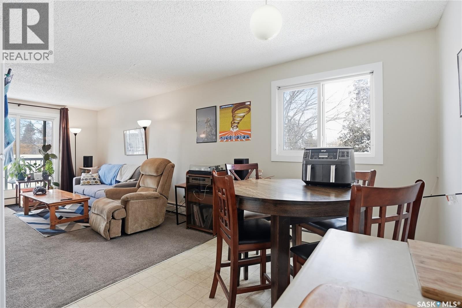 $306 MonthlyCorner unit in Nutana — walk to Broadway and the river! Welcome to 18-719 10th Street East. This well-maintained two-bedroom condo offers the perfect blend of location, comfort, and charm in one of Saskatoon’s most desirable neighbourhoods. Inside, the functional kitchen provides plenty of counter space and opens to a spacious dining area, which flows naturally into a bright, welcoming living room. Patio doors lead to your private balcony — an ideal spot to enjoy fresh air and evening sun. Both bedrooms are generously sized and feature comfortable carpet, with linoleum in the kitchen and other high-traffic areas for added practicality. The 4-piece bathroom is conveniently located near both bedrooms. You’ll also appreciate the large in-suite storage room, air conditioning, an exclusive parking stall, and very reasonable condo fees. Laundry facilities are available within the building for added convenience. As a corner unit, you’ll enjoy extra natural light and added privacy. The exterior of this charming building has also been fully updated, offering even more value and peace of mind. Don’t miss your chance to own in one of Saskatoon’s most walkable and vibrant neighbourhoods — call your REALTOR® today to book a private showing! (id:34297)