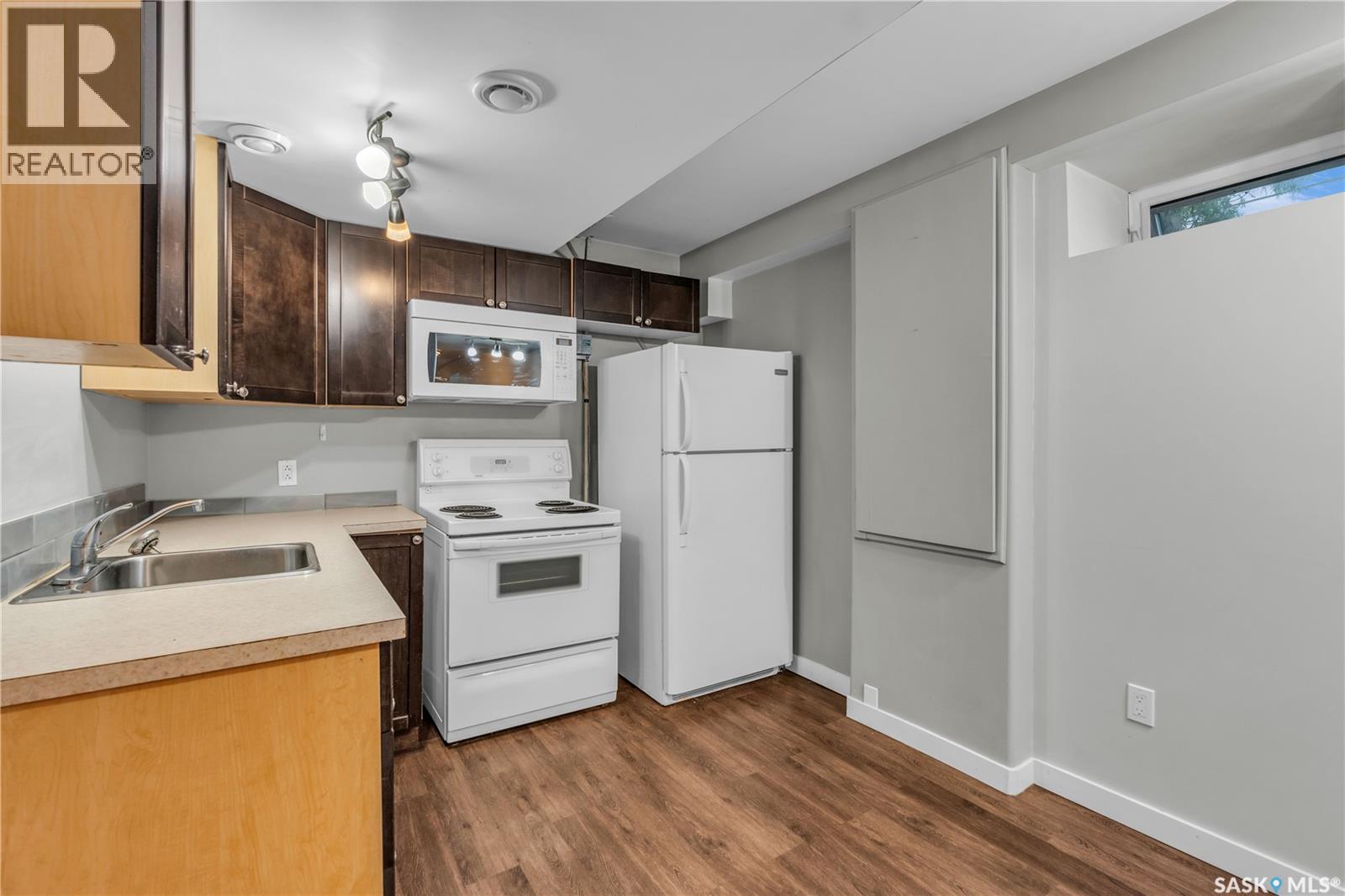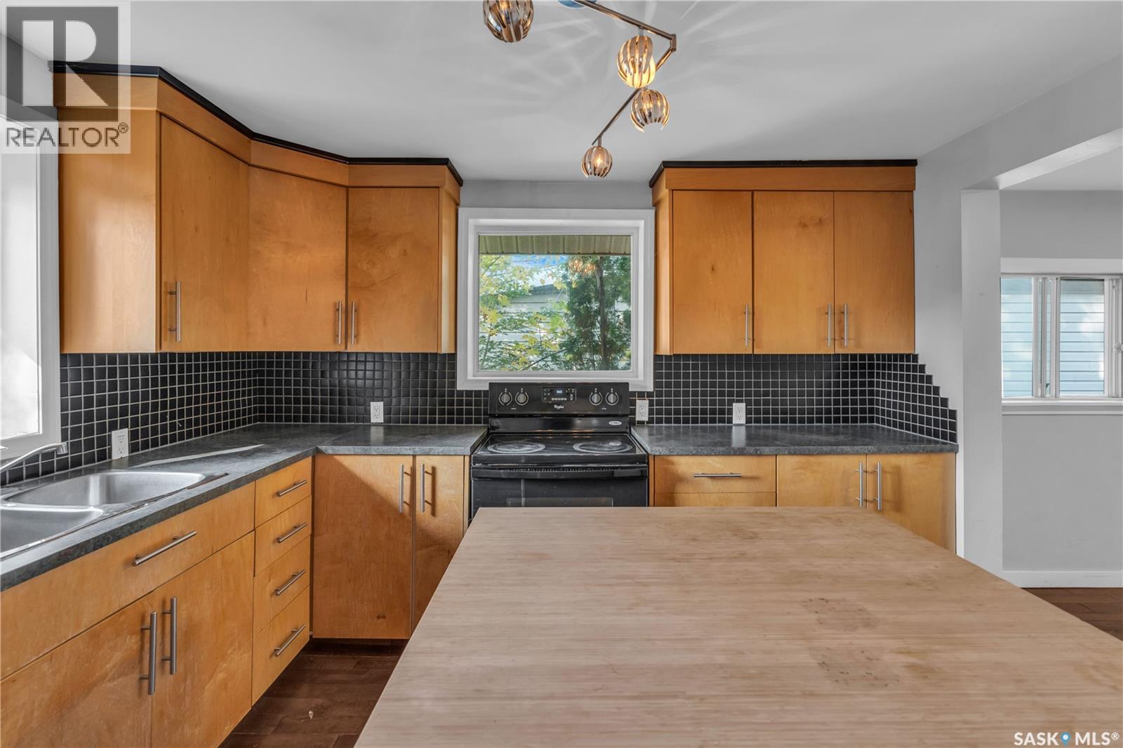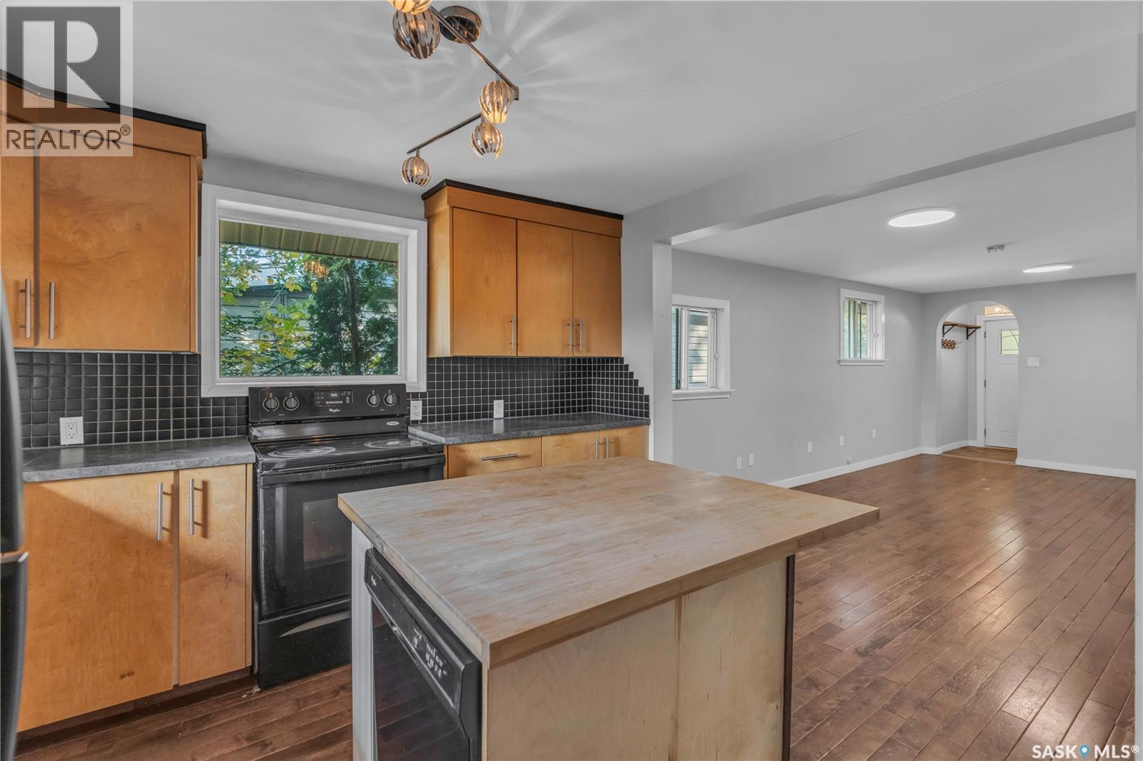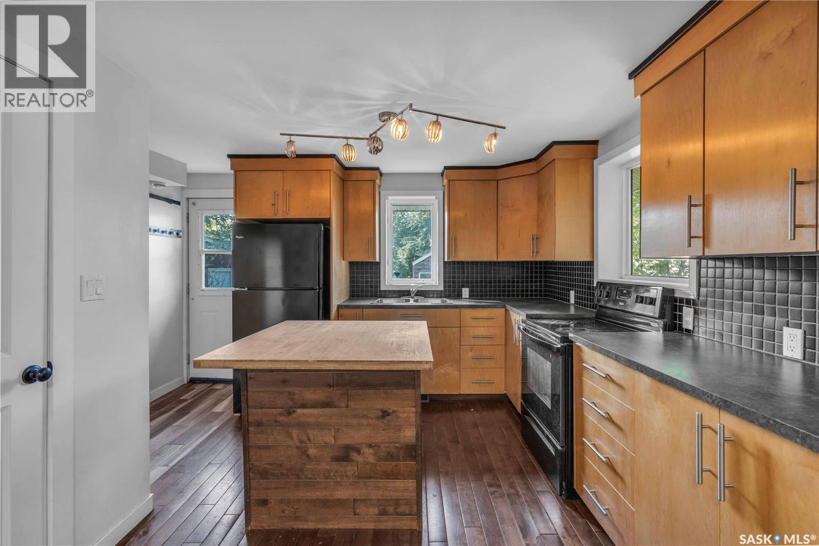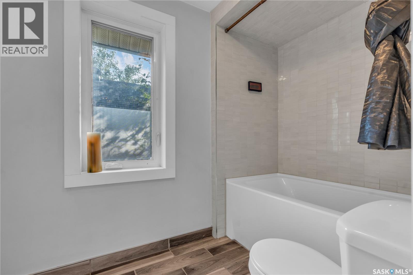 This Buena Vista bungalow would make a great first home or investment property (secondary suite with separate entrance; no basement access from main floor). The open concept main floor features 2 bedrooms, a large 4 piece washroom, an updated kitchen, and separate laundry from the basement. The front bedroom has a bonus loft space that would make a great reading nook, a play space for kids, or could be utilized for additional storage. The kitchen has great counter and cupboard space and overlooks the large deck and enclosed back yard. Off the alley is a designated parking space that could possibly accommodate two vehicles with some brush removal. The basement's secondary suite has a separate entrance and features one bedroom, a 3 piece washroom and has mechanical and laundry separate from the upstairs (no separate meters - utilities all on one account). Off the kitchen is a large laundry space which could also be utilized as a den/office, walk-in pantry, or again... more storage! Shingles are approximately 10 years old. This home is in such a great location; close to Buena Vista School & Park, Downtown Saskatoon, and all the amenities that Broadway and 8th Street have to offer. Ready for you to view today! (id:34297)