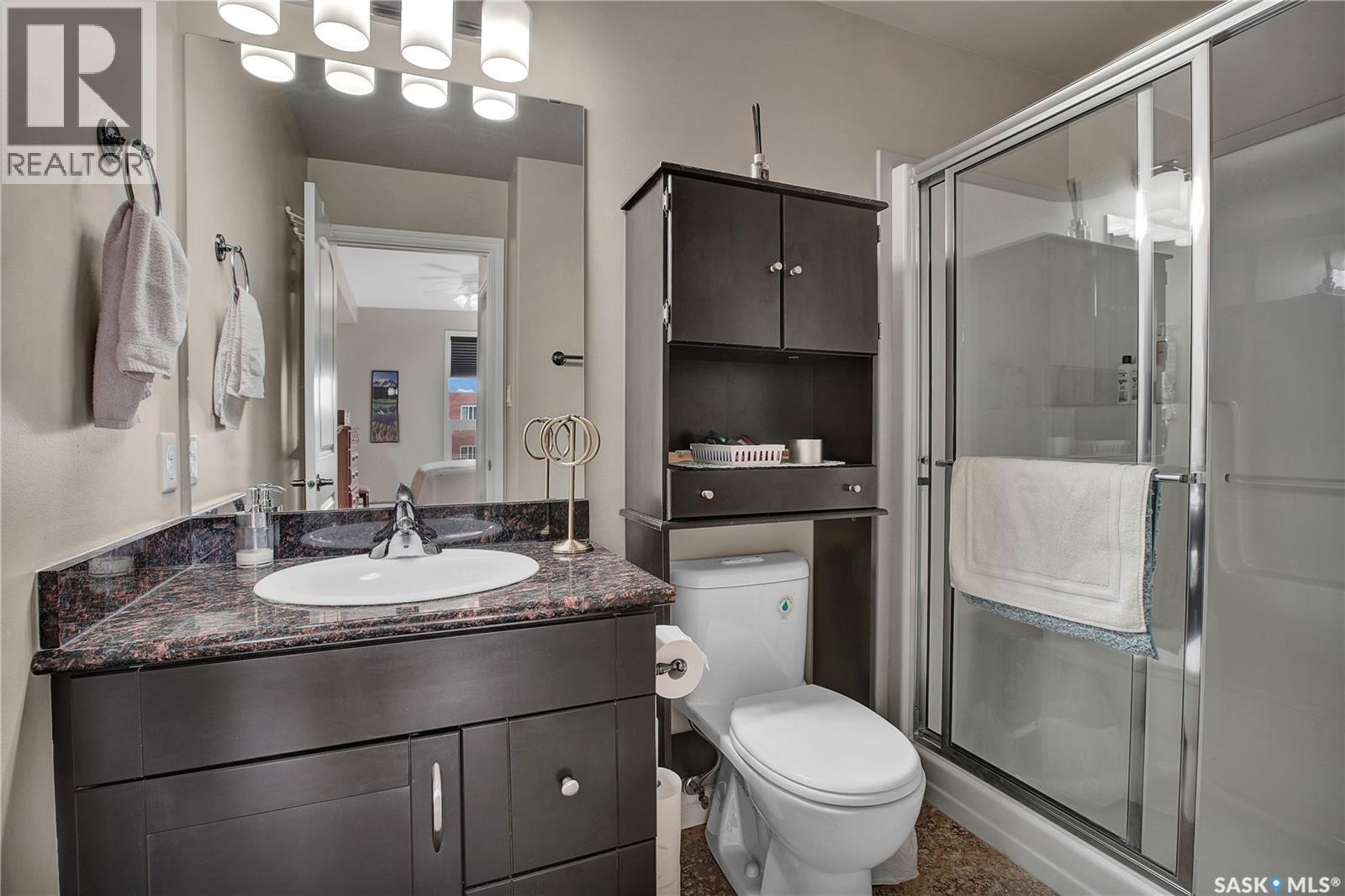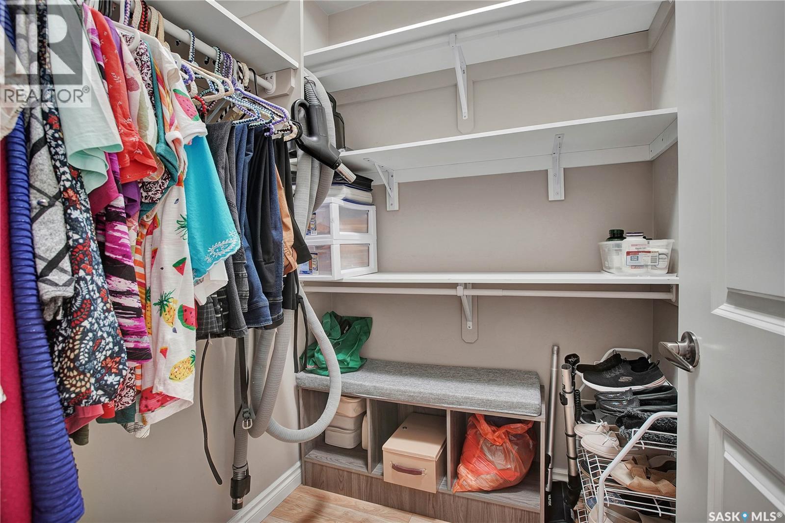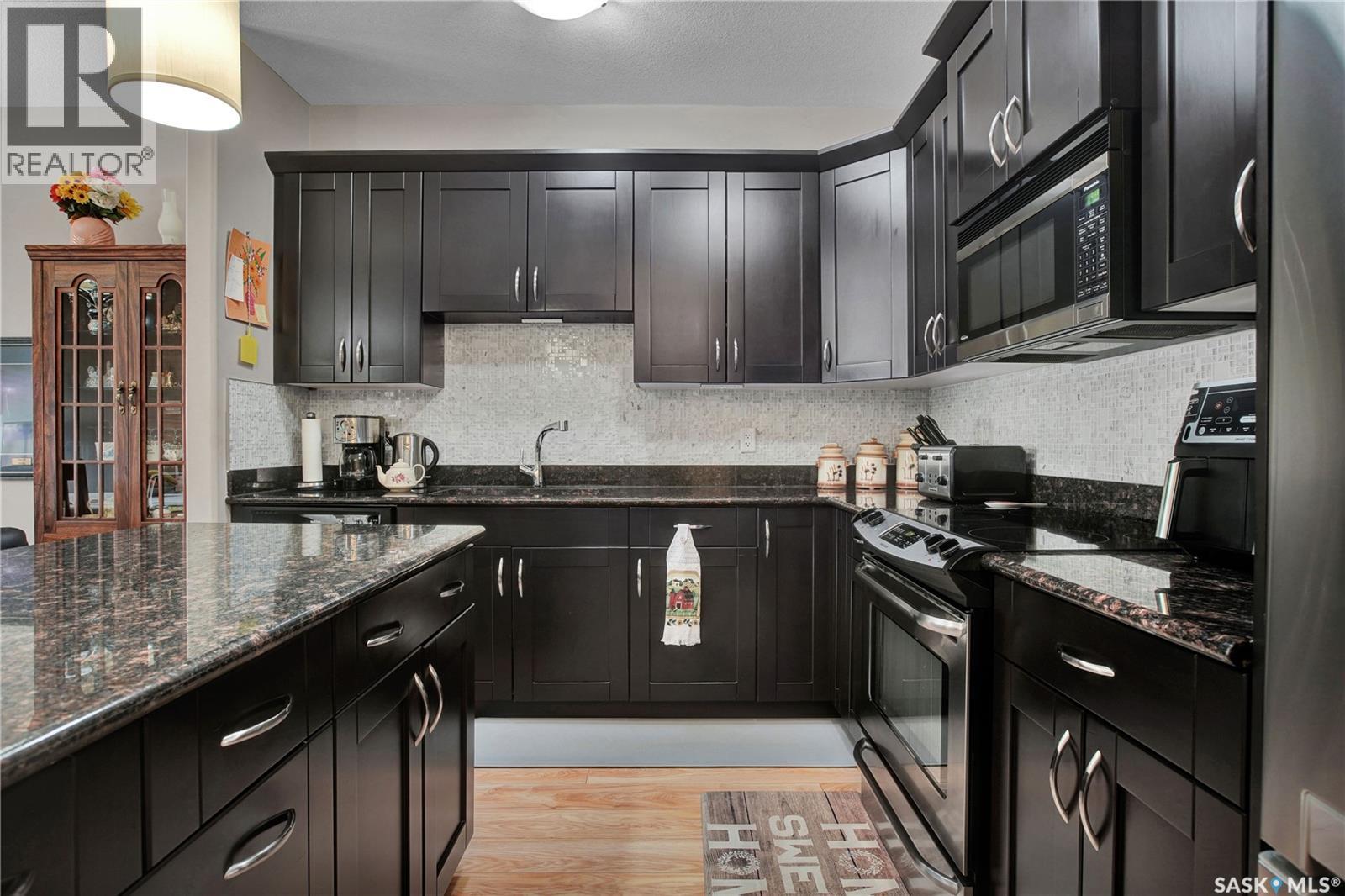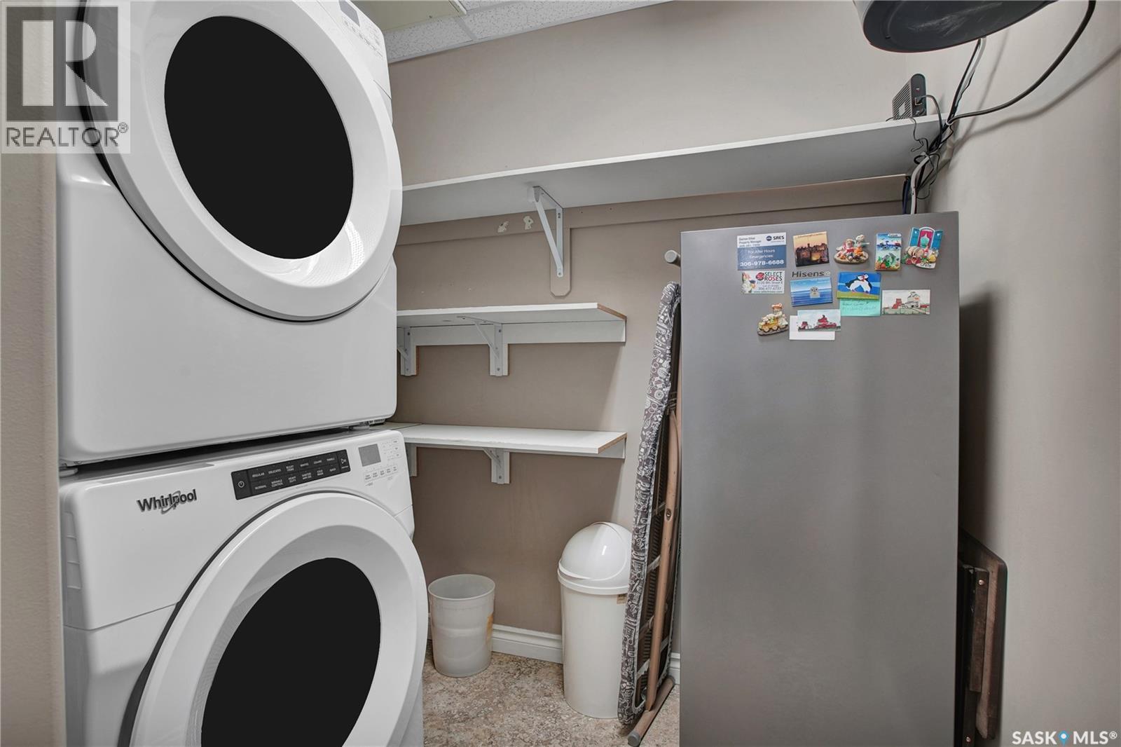 $485 MonthlyPristine condo at Silverleaf Suites on Main Street in the popular Greystone Heights. The unit boasts 9-foot ceilings, an open layout, a full laundry room, with a master ensuite bathroom and walk-in closet. Luxurious features include granite countertops, in-suite laundry, in-suite central vacuum, in-suite central air, stainless steel appliances, blackout shades, and a remote-controlled deck roller shade. In recent upgrades over the years include new flooring throughout, kitchen backsplash, and a Centennial non-clogging toilet. The reasonable condo fees are $486 which covers common area maintenance, external building maintenance, heat, reserve fund, snow removal, water, and access to the amenities room. The condo also comes with one parking spot and one storage unit. Unbeatable location with steps to an elementary school, Superstore, the University of Saskatchewan, and every amenity needed in the commercial district on 8th Street. (id:34297)
