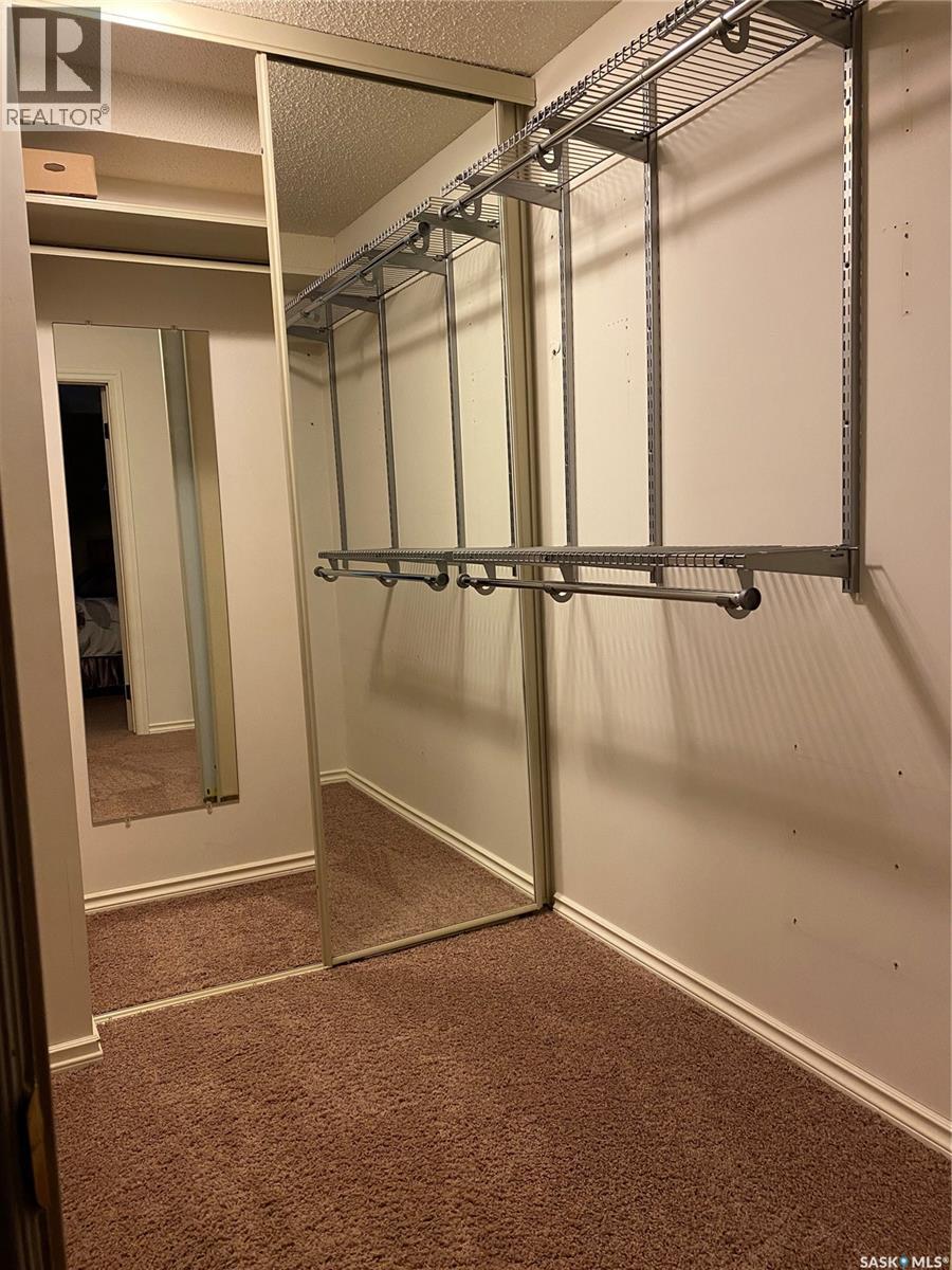 $655 MonthlyIdeal condo on 5th Avenue — perfectly situated close to City Hospital, the river, and downtown amenities. This quiet building offers beautiful second-floor corner unit for both comfort and convenience, with 2 parking stalls. Inside, you’ll find a bright white kitchen with tile backsplash, quartz countertops, pot drawers, a pantry with pull-out shelves, task lighting, a window over the sink, & appliances included. The dining area features a wide window, and open to a spacious living room with patio doors leading to a 20’ x 7’ deck with plexiglass inserts and DuraDeck. The primary bedroom includes a large walk-in closet and a 3-piece ensuite. Additional features include a den with shelving and in-suite laundry. The bonus here of one underground parking stall (#14) and one surface parking stall (#31) plus storage is available in Storage Room #1-209. Call today for your personal veiwing. (id:34297)