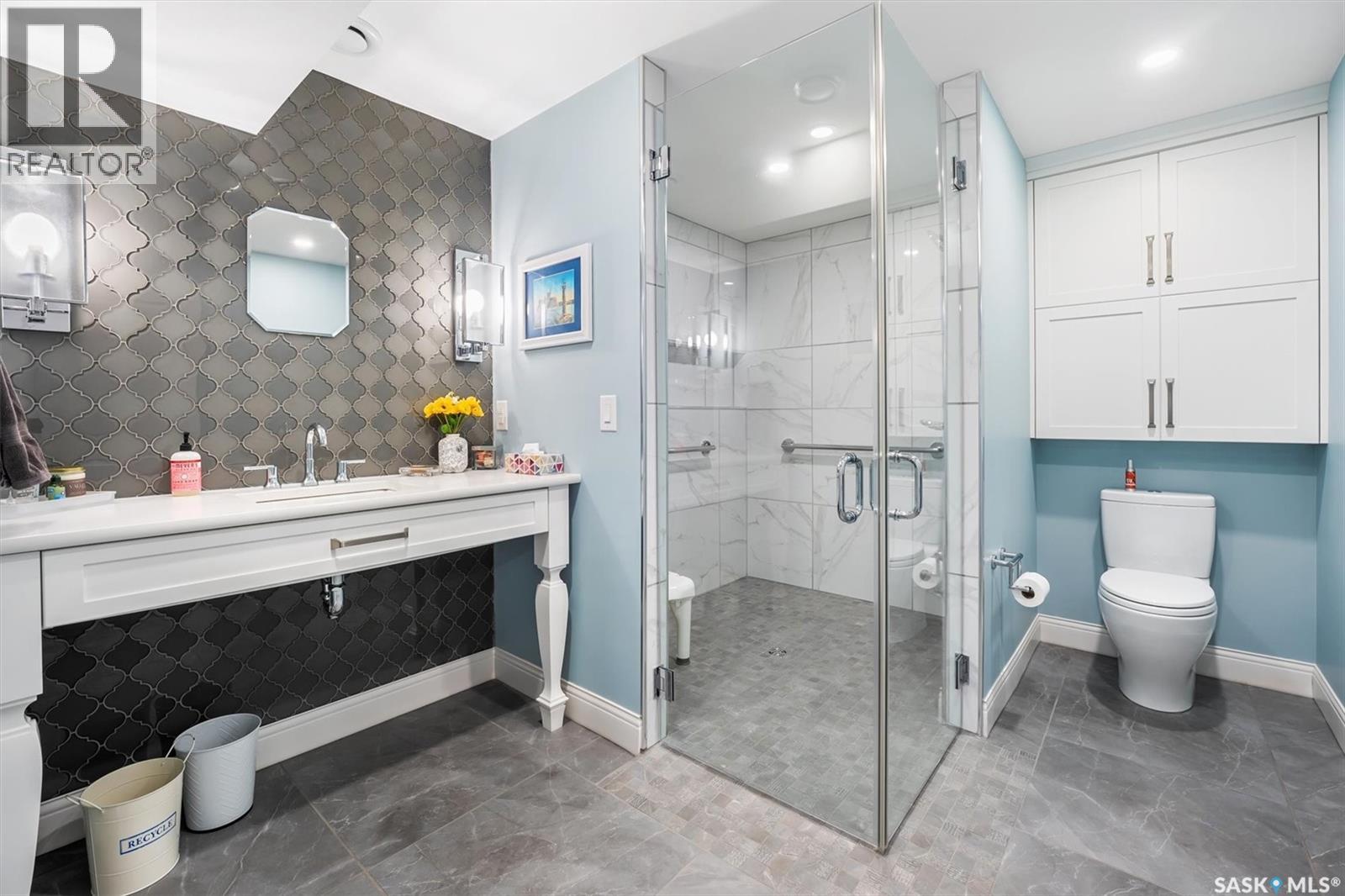 WHEELCHAIR ACCESSIBLE! Gorgeous Warman home in mint condition!Custom built,fully wheelchair accessible and is absolutely loaded!Extra wide galley kitchen comes with high-end appliances - gas stove with hood fan, large double door fridge/freezer, built-in microwave and dishwasher,loads of cabinet and granite counter space.The first of two Primary bedrooms located on the main floor.Comes with a walk-in closet and access to the main floor 3-piece bathroom.Second floor is complete with the second Primary bedroom, a bedroom/office and 4-piece bath that is accessible from each bedroom.The basement is an entertainer's dream.Large family/media room with fireplace,10 speaker Dolby Atmos surround sound system and custom shelving.The wet bar is absolutely stocked!Large granite island with bar seating, dual drawer dishwasher,sink with drying rack,custom cabinetry and a glass wine cellar with storage for 300 bottles.Bedroom has a built-in queen size Murphy bed and sits next to the 3 piece bath. Laundry, storage and utility rooms are here as well.Double garage is fully insulated,heated.Includes EV charger, Golf simulator with projector and fully retractable screen and enclosure.Low Maintenance yards.The 4 hole putting green and artificial chipping area is surrounded by a massive patio area with wide walkways to three separate areas for BBQing,sitting and eating.Large composite deck off the kitchen,Vinyl fencing, large garden boxes,underground sprinklers for garden boxes and planters,and 4 storage sheds are among other features of the extraordinary yard. Noteables:Personal elevator with 3-stop direct access to main,garage,basement.2 fully accessible roll-in showers with multi head positions and grab bars.Full turn width bathrooms, roll under sinks and grab bars beside toilets.Extra wide hallways and kitchen galley.Lever style handles.Main floor bedroom is large enough to accommodate a lift.Moveable rubber ramp.Extra wide fence gates Hot water tank (2019)Upstairs bath reno 2022. (id:34297)