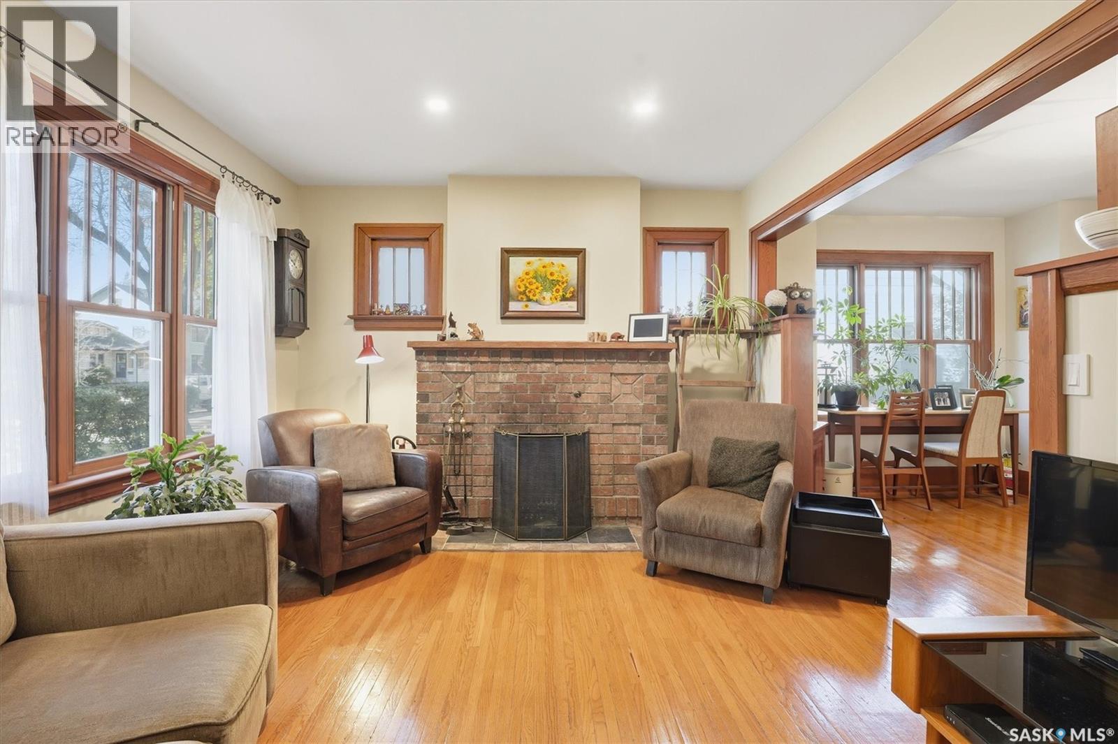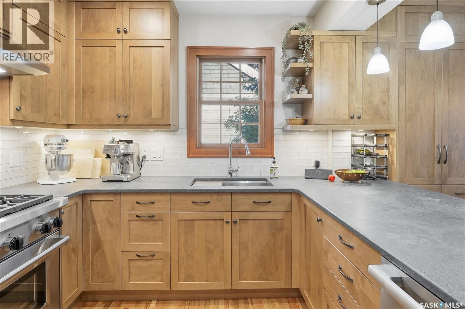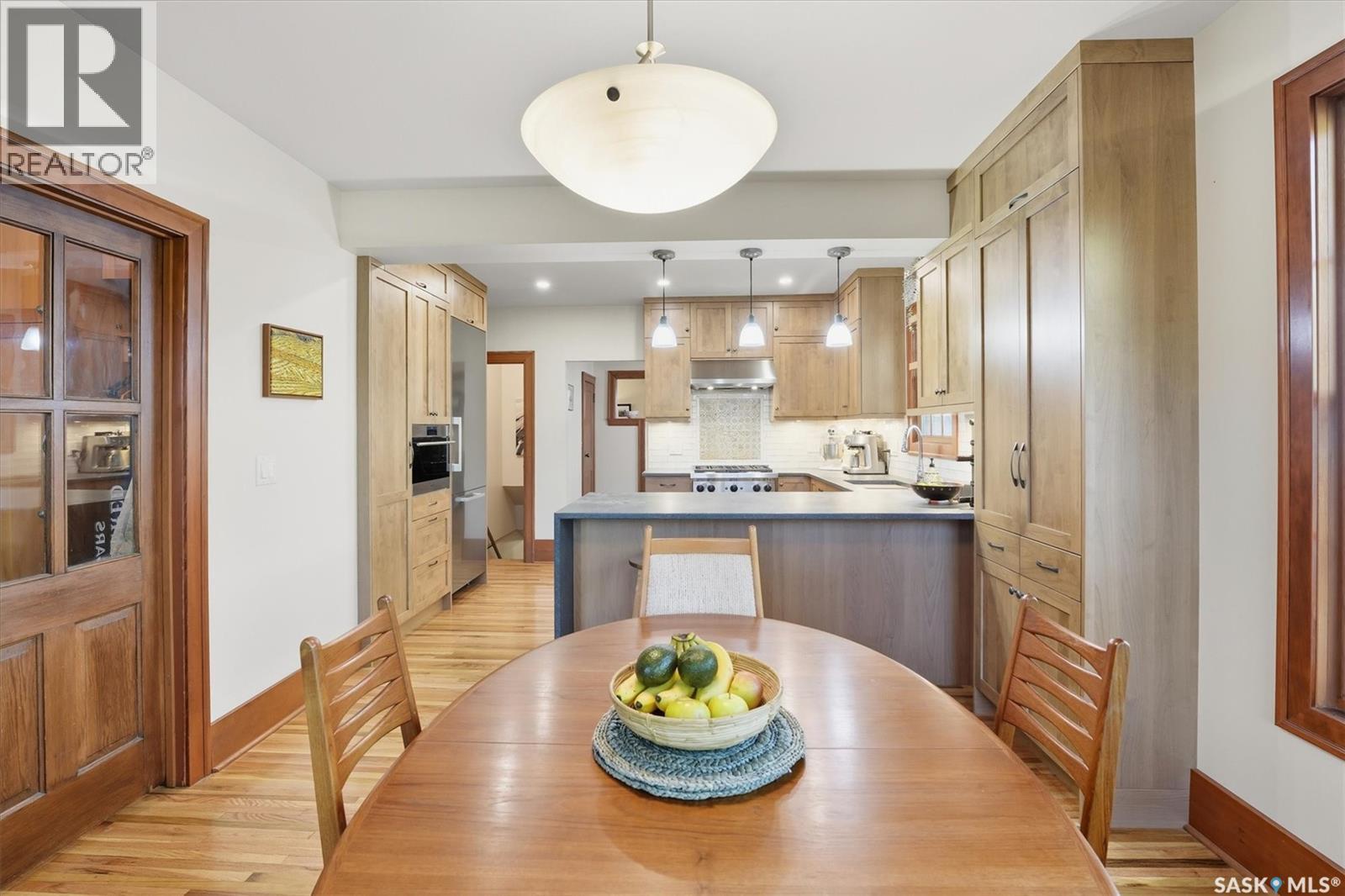Welcome to 217 7th St East where timeless character meets modern comfort in this beautifully renewed home, ideally located just half a block from historic Buena Vista Park! Set on a stunning 50x125ft lot, the property offers an incredible backyard that’s perfect for entertaining or relaxing outdoors — a rare find in such a central location. Just imagine a thanksgiving football game back there! The home includes just under 3000sqft of living space with 5 bedrooms (2nd level is deemed a bedroom but is a great flex space) and 3 bathrooms. The home was lifted in 2001 with a new full height foundation added, providing lasting peace of mind vs. a home with an older foundation. Inside, you’ll find in-floor heating throughout the house and gorgeous hardwood flooring that flows through the main living spaces. The inviting living room centers around a classic wood-burning fireplace, creating a warm and welcoming atmosphere. The kitchen is a true highlight, thoughtfully designed with Miele & Wolf appliances — including a built-in fridge, freezer, and dishwasher — as well as a gas stove, steam oven, and direct-vented hood fan. Quartz countertops, custom Alder wood cabinetry, and Reidl millwork combine to create a kitchen that’s both stylish and highly functional. The kitchen has an abundance of windows overlooking the beautiful and mature back yard. Spacious and bright, this home offers a balance of open-concept living and private retreats. The loft area provides additional flexibility for an office, studio, bedroom or reading space. With its blend of high-end finishes, thoughtful updates, and unbeatable location near Saskatoon’s best walking trails, amenities and Broadway district, 217 7th Street E is a truly special place to call home. (id:34297)