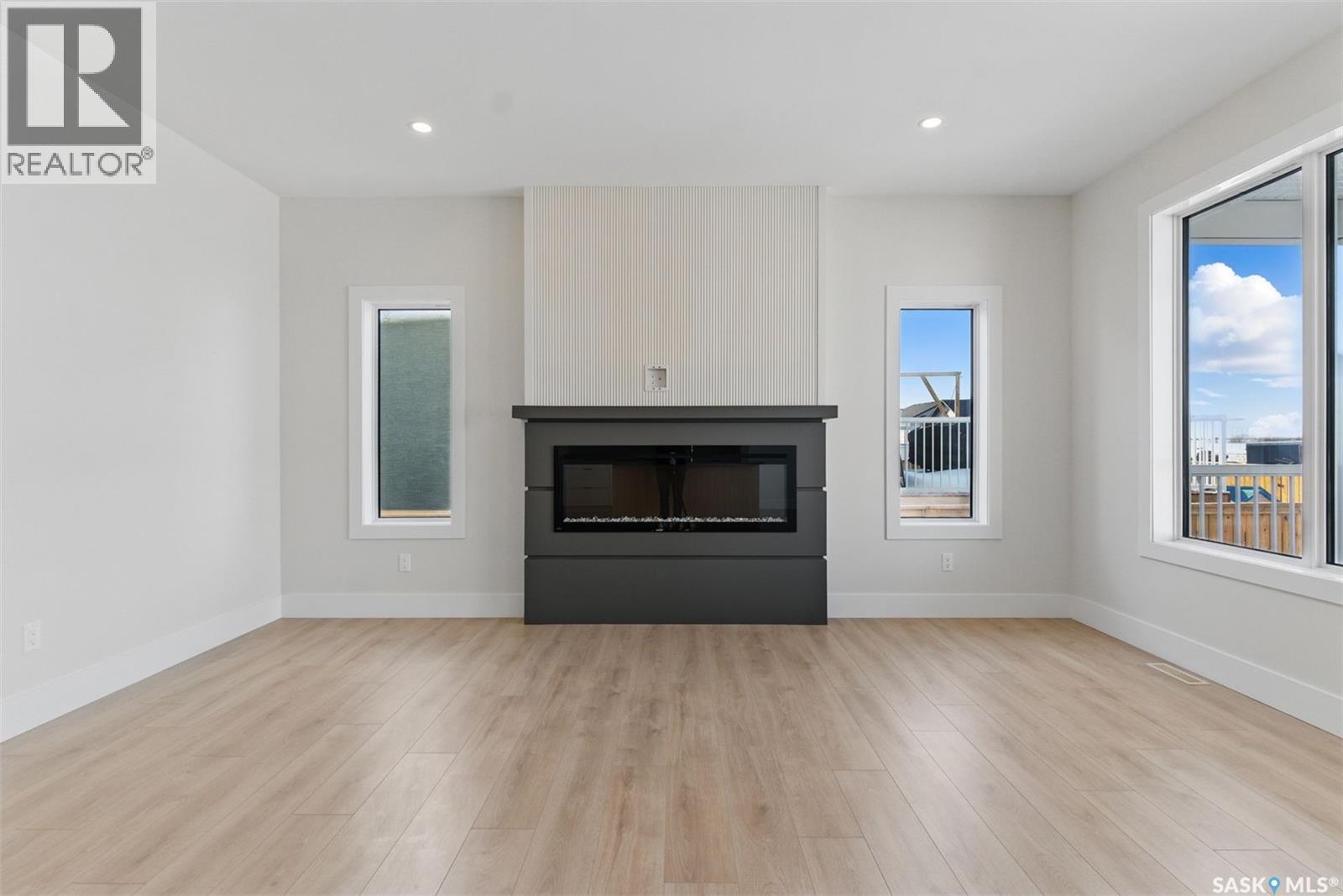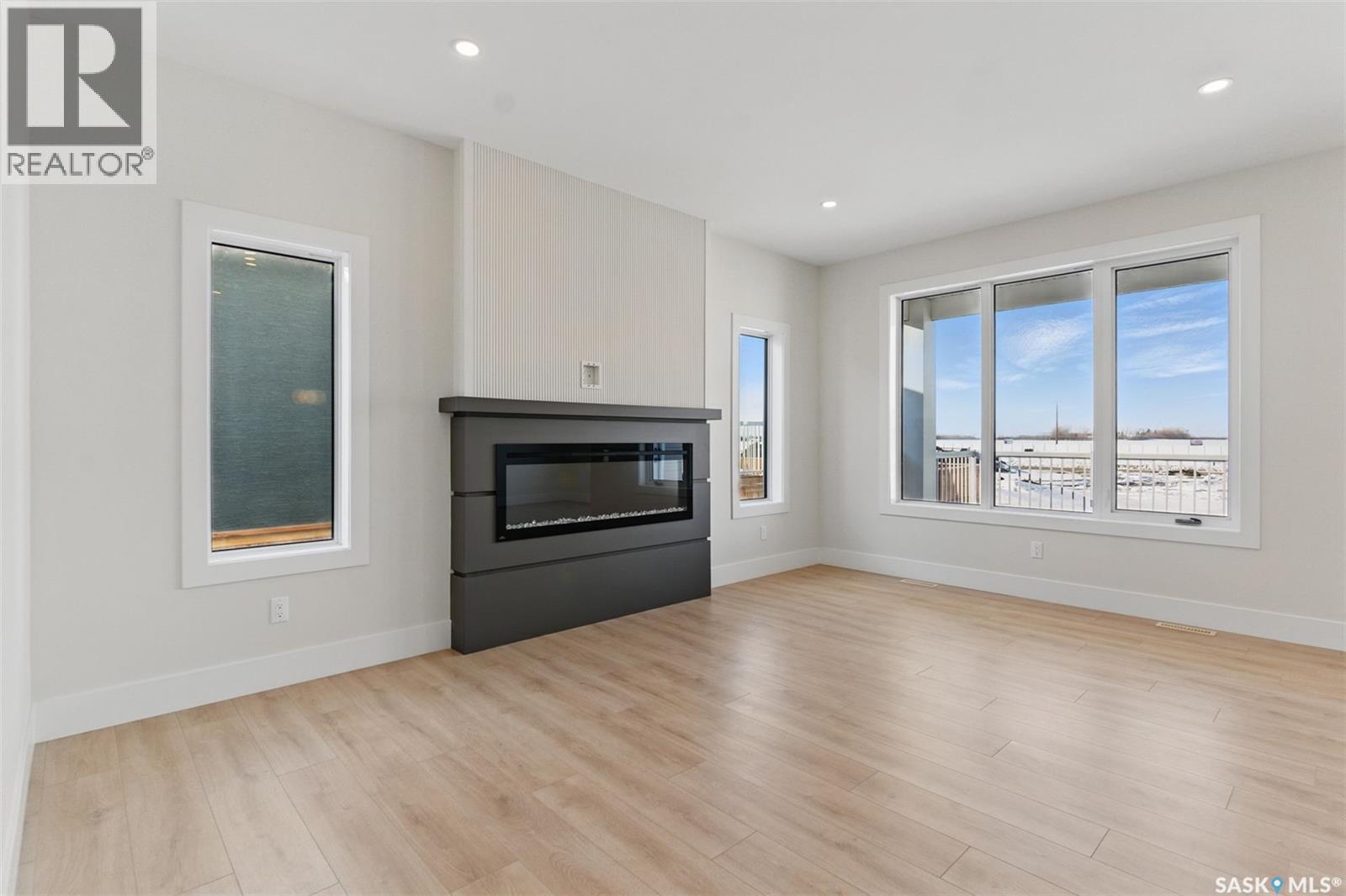 Welcome to 218 Veterans Drive! This beautiful new home is located in Warman, close to all amenities. Walking in you are greeted with plenty of natural light. In the great room you can cozy up by the fireplace on cold days. With the Open Concept this home is great for hosting! The Kitchen has plenty of counter space, under cabinet lighting to have both ambiance and ample task lighting, and a walk thru pantry that leads to the mudroom to make unloading groceries easy. Going up the staircase you can look down into the foyer over the banisters. In the primary room you have a feature wall, plenty of natural light, a 5-pc ensuite, and a walk-in closet! There is also a laundry closet located conveniently by all 3 bedrooms. Upstairs there is a 4-Pc Bathroom and a family room. Contact your Realtor today to not miss viewing this beautifully crafted home where luxury meets comfort! Under construction. Finishes may vary from listing pictures. (id:34297)