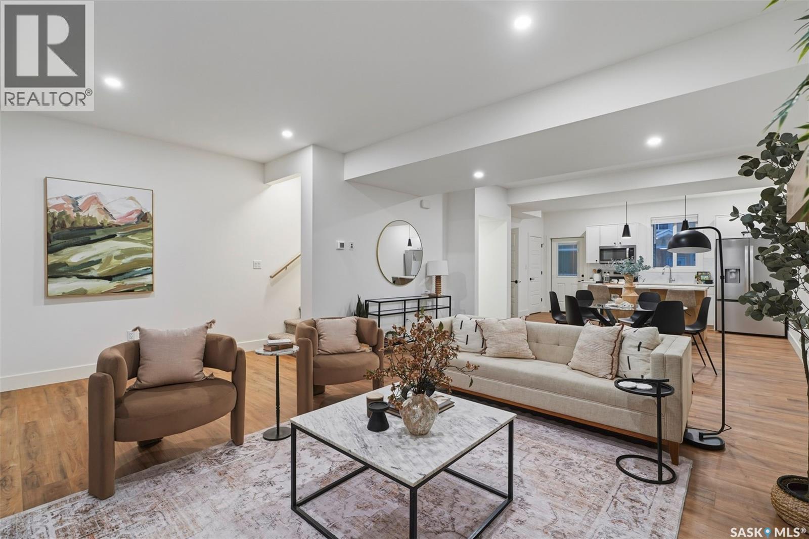 $245 MonthlyWelcome to 220–3220 11th Street West. A brand new, contemporary 3-storey townhouse offering the perfect blend of style, comfort, and functionality. Designed with modern living in mind, this home features an attached 2-car tandem style garage with a single drive and over 1,400 sq. ft. of thoughtfully designed space. Step inside to a bright and open second floor featuring 9 ft. ceilings, a spacious living and dining area, and a beautifully finished kitchen with quartz countertops, soft-close cabinetry, tiled backsplash, and a patio door to your balcony. A convenient 2-piece bath completes this level. Upstairs, the third floor offers a well-planned layout with 3 bedrooms and 2 full bathrooms, including a primary suite with a walk-in closet and beautiful ensuite. The additional 4-piece bath and laundry area are ideally located on the same floor for everyday convenience. Enjoy the practicality of a slab foundation providing durability and low maintenance, along with the peace of mind that comes with new construction. Located in the desirable Montgomery Place area, this development offers quiet residential living with quick access to Circle Drive, shopping, and amenities. Whether you’re a first-time buyer, young professional, or investor, this home checks all the boxes for modern, low-maintenance living. (id:34297)