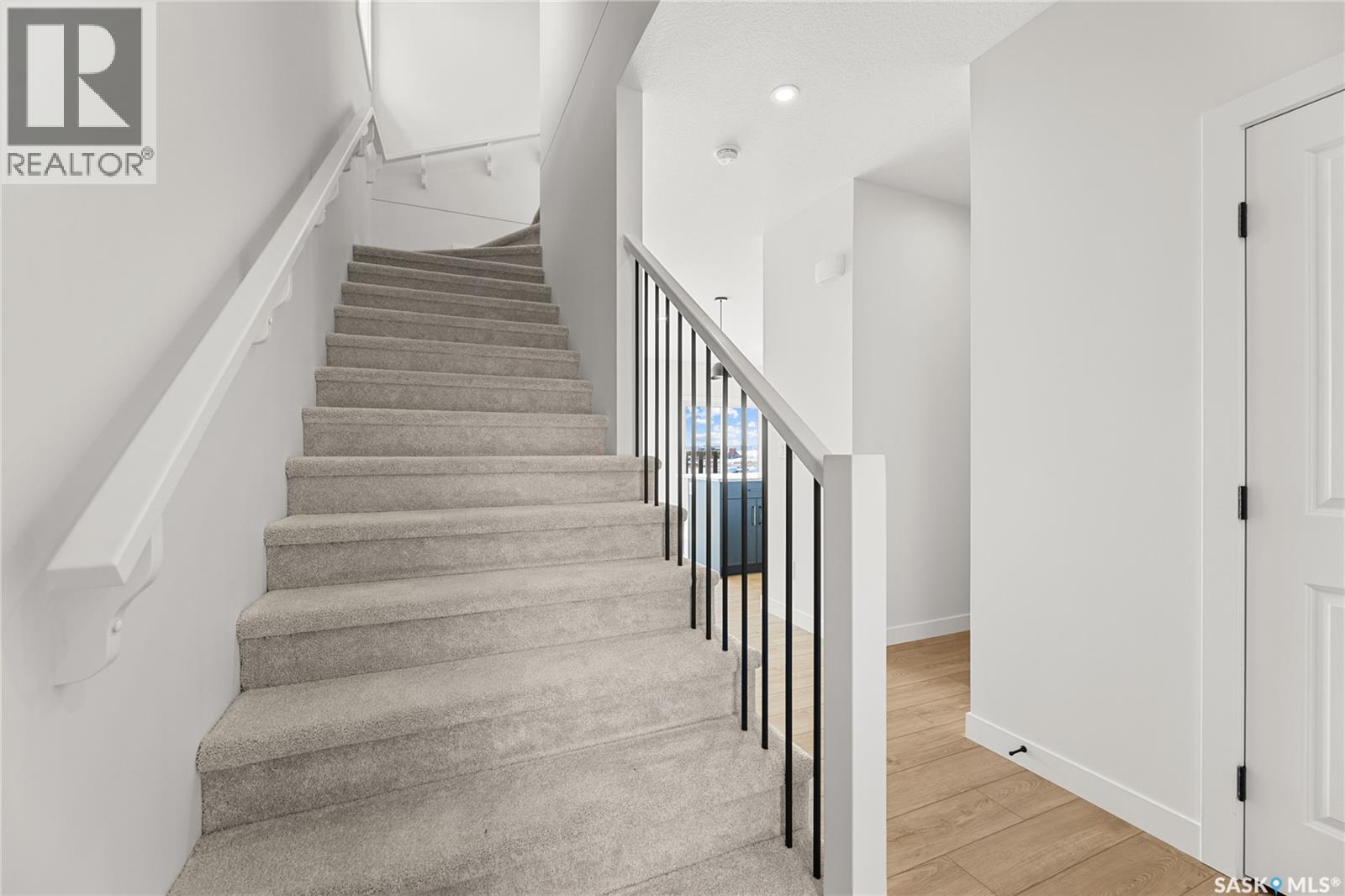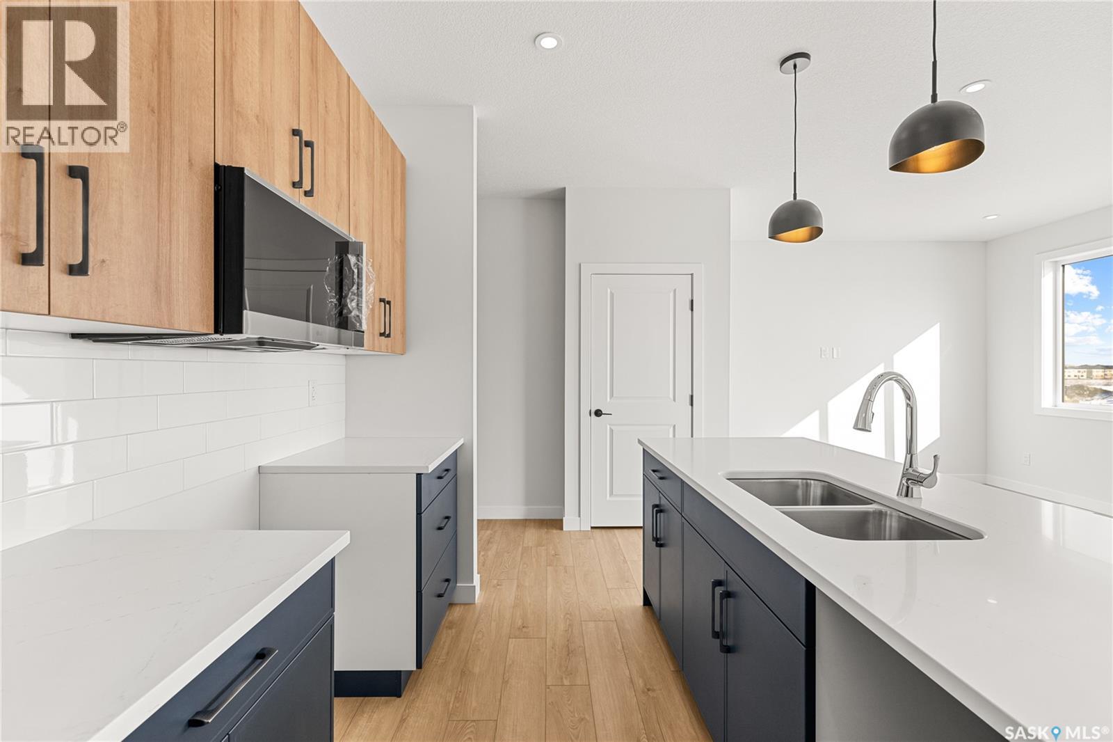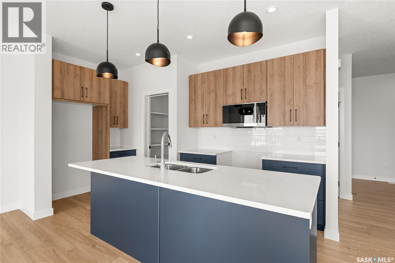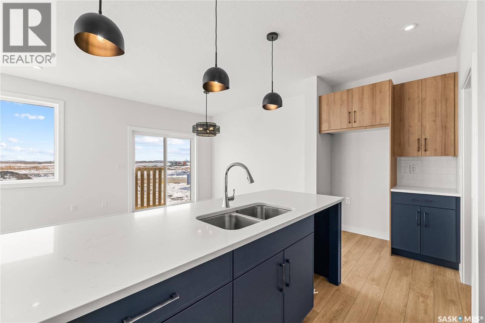 The "Oliver" by North Ridge Development Corporation is a 1501 square foot 2-Storey home located in the growing community of Brighton. A bright main floor layout featuring a large kitchen with walkthru pantry and island, dining area, living room, and 2-pce bath. Durable vinyl plank flooring in kitchen, living and dining rooms is attractive in appearance, high quality shelving in all closets and an upgraded trim package giving a fresh and modern feel along with beautiful cabinetry and quartz counter tops. The 2nd level features 3 bedrooms, a 4-piece main bathroom, and laundry. The master bedroom showcases beautifully with a 3-piece ensuite and walk-in closet. This home also includes a heat recovery ventilation system and high efficient furnace. GST and PST included in purchase price with applicable rebates to builder. Saskatchewan Home Warranty Premium Coverage. This home is move-in ready! (id:34297)