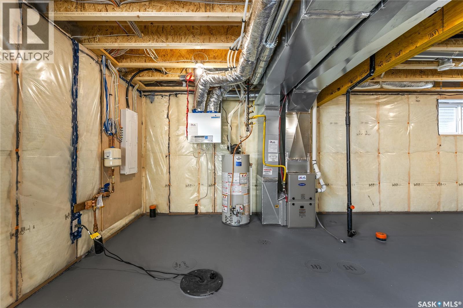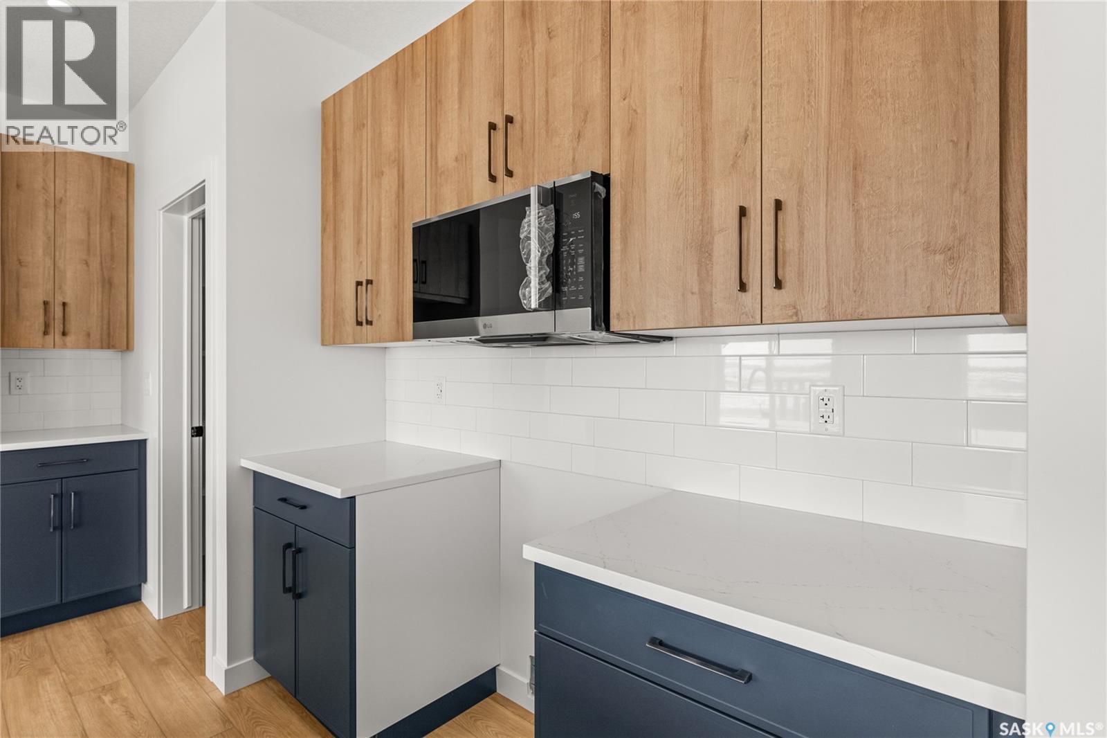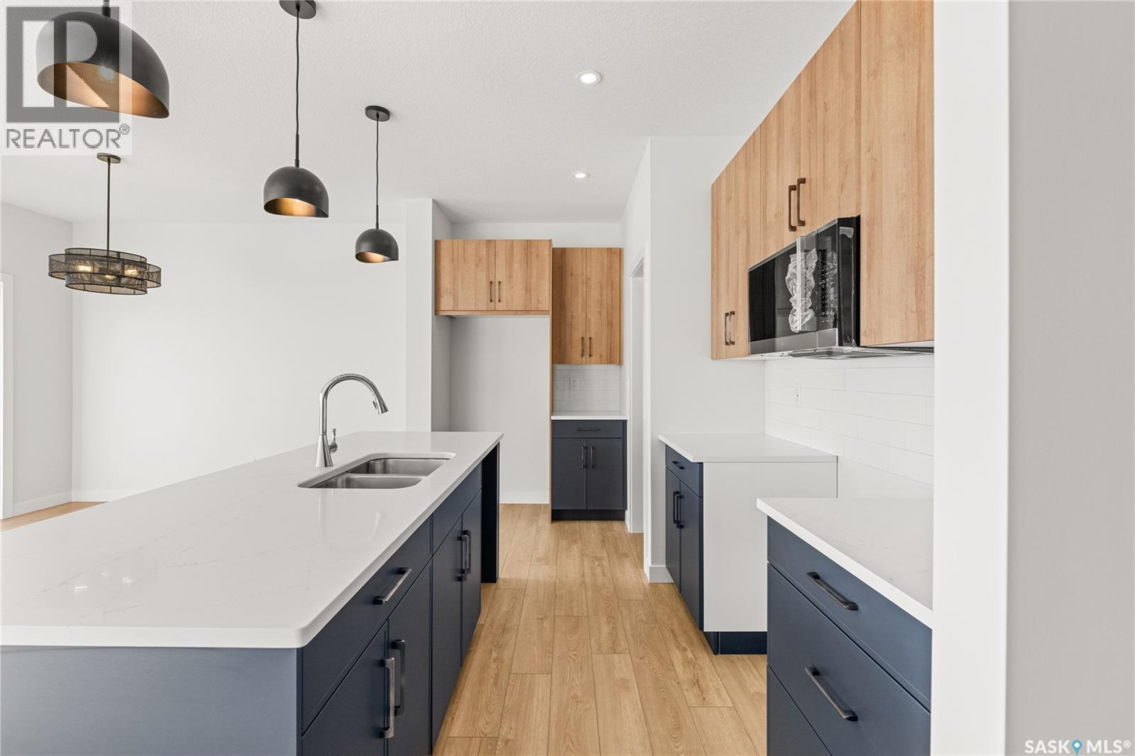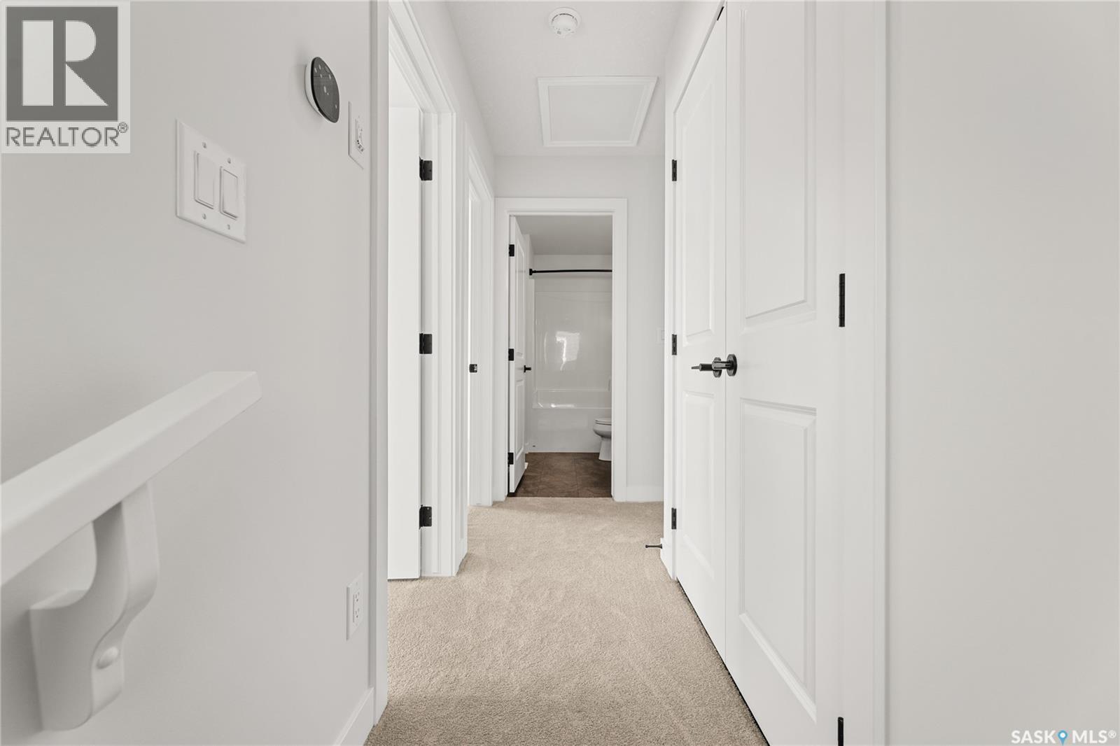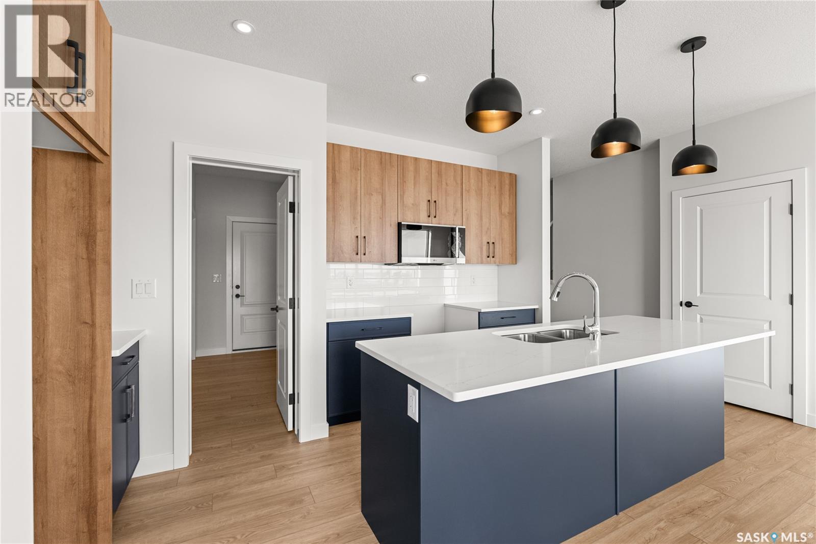 The "Oliver" by North Ridge Development Corporation is a 1501 square foot 2-Storey home located in the growing community of Brighton. A bright main floor layout featuring a large kitchen with walkthru pantry and island, dining area, living room, and 2-pce bath. Durable vinyl plank flooring in kitchen, living and dining rooms is attractive in appearance, high quality shelving in all closets and an upgraded trim package giving a fresh and modern feel along with beautiful cabinetry and quartz counter tops. The 2nd level features 3 bedrooms, a 4-piece main bathroom, and laundry. The master bedroom showcases beautifully with a 3-piece ensuite and walk-in closet. This home also includes a heat recovery ventilation system and high efficient furnace. GST and PST included in purchase price with applicable rebates to builder. Saskatchewan Home Warranty Premium Coverage. This home is move-in ready! (id:34297)