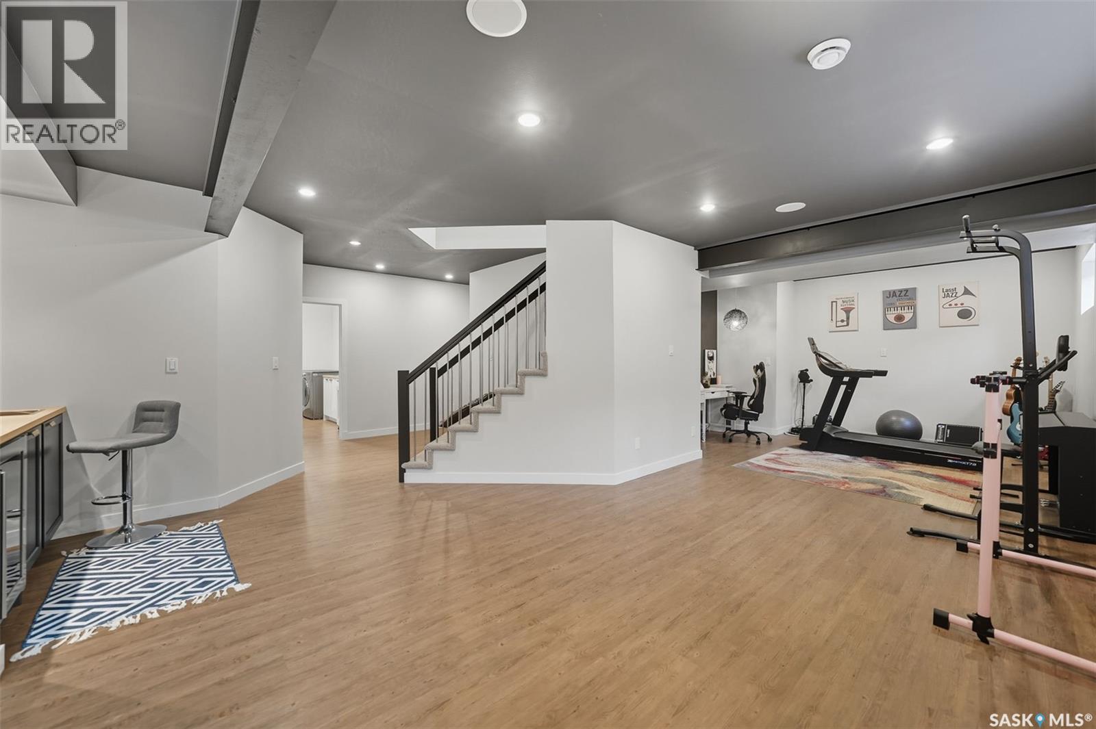 Impressive custom-built two-storey in Willowgrove blending modern elegance, smart design & luxurious finishing. The exterior features stone, European stucco, design accents, professional landscaping with underground sprinkler, and oversized driveway for up to 4 vehicles. The park-like yard offers a spacious deck with 2 gas outlets, patio, and large concrete sport court ideal for basketball / hockey.Inside, grand foyer with 17 ft ceiling, striking staircase, coffered ceiling, and modern lighting introduces the home. Formal dining & living area include built-in cabinet, gas fireplace, wrap-around living room, oak hardwood, and family room with feature wall overlooking the yard. The gourmet kitchen boasts quartz countertop with waterfall-edge island, tiled backsplash, soft-close cabinetry, high-end appliances including gas range, work centre, custom storage, and breakfast nook with built-in seating and cabinets plus a mini dining area. An office with vaulted ceiling & French doors, a designer 2 pc bath, boot room with custom storage, and access to in-floor heated garage complete the main floor.Upstairs offers 4 bedrooms, highlighted by a spectacular primary retreat with dressing room, built-in makeup station, and a spa-inspired ensuite with programmable walk-in steam shower, spa tub, and tile inlay floor. A laundry chute and another full bath add convenience.The finished basement with 9’ ceilings, exposed steel beam, and in-floor heating is perfect for entertaining, with wet bar, expansive family room, bathroom, fifth bedroom with walk-in closet, and large laundry room with sink.Additional highlights: HRV, 120-gallon indirect water heater, and built-in audio throughout. Recent upgrades: water softener & RO drinking system (2022; ~$5,000), boiler (2024; ~$10,000), range hood & fridge & dishwasher & garburator (2024). Set on a quiet crescent close to schools, park and shopping. This fully finished home delivers luxury, comfort & exceptional family living at its finest. (id:34297)