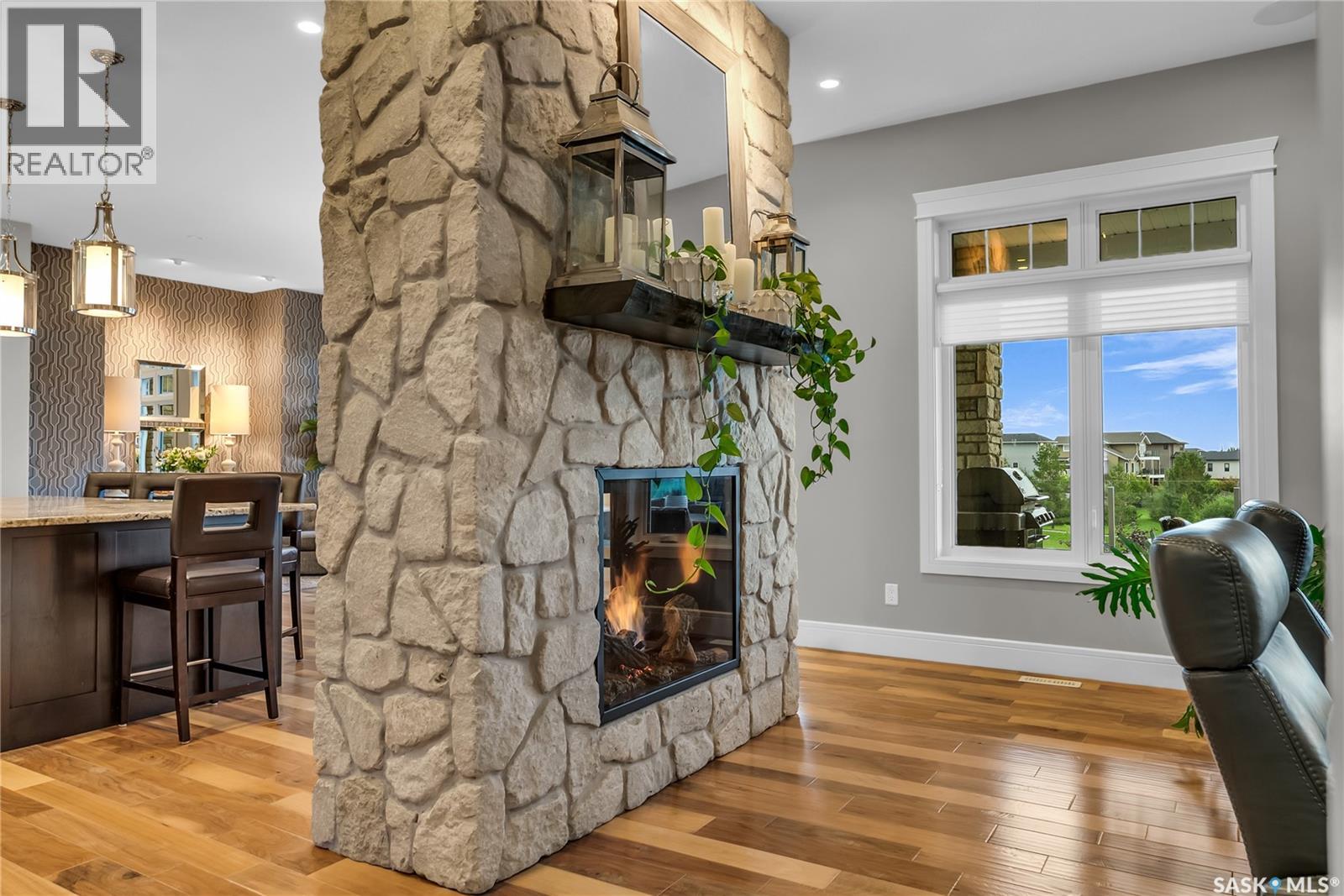Luxury Meets Family Living. Exceptional curb appeal with high-quality brick/stonework across its exterior, meticulously showcasing a timeless blend of rich, textured stone and classic brick. A blend of comfort, style, and outdoor beauty in this rare, stunning 5-bedroom, 5-bathroom family retreat backing directly onto the park. With 3,044 sq ft of exquisitely designed living space, this home has been thoughtfully crafted to offer every amenity your family desires. Highlights: Bright+Spacious: Four bedrooms upstairs plus a versatile fifth bedroom downstairs. Expansive windows throughout the South/West side bathe the home in natural light and offer breathtaking sunrises and sunsets. Gourmet Kitchen: Designed for entertaining, with a walk-in pantry, high-end appliances, and open-concept flow to dining and living rooms. Luxurious Comforts: In-floor heating throughout the basement, main bath, master bath, and garage keeps every corner cozy year-round. Smart Home Features: Control4 surround sound system seamlessly integrated across all three levels and both patios, perfect for movie nights, family gatherings, or relaxing outside. Outdoor Oasis: Step out to your comfortable covered lower patio with TV, natural gas fire table hookup, and instant access to a beautifully landscaped yard with fire pit, stone-raised garden beds, and zoned underground sprinklers. Backyard is wired for a hot tub and offers endless possibilities for family fun. Practical Perks: Triple driveway, water softener, and a spacious garage with in-floor heat. Unbeatable Location: Enjoy direct access to Marshall Hawthorne Park, just a five-minute walk through green space to the neighborhood’s elementary schools—a dream for young families. This exceptional property seamlessly blends indoor comfort with outdoor living, creating the perfect home to grow, entertain, and unwind. Discover privacy, high-end finishes, and unparalleled natural light in one of Stonebridge’s most sought-after locations. (id:34297)