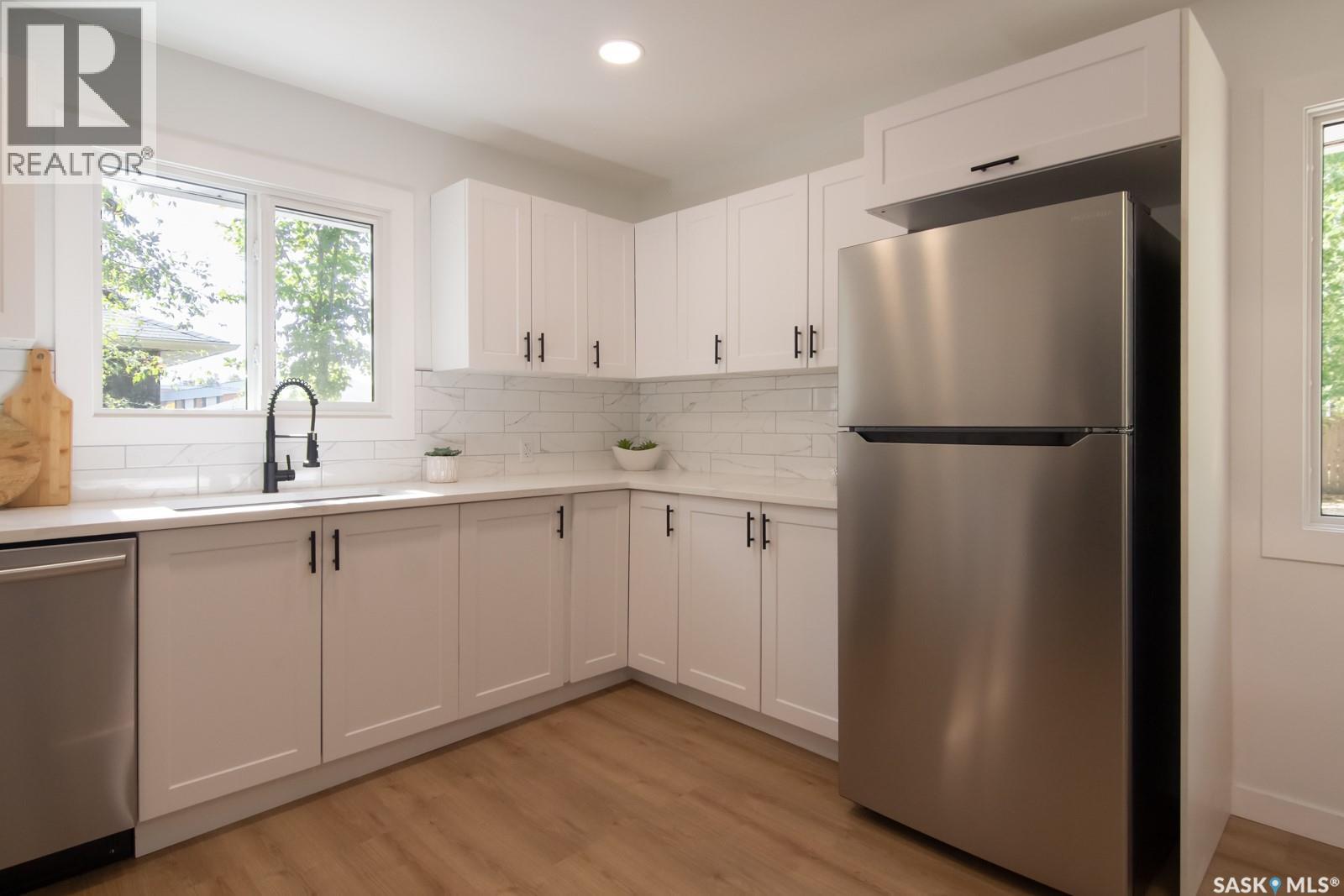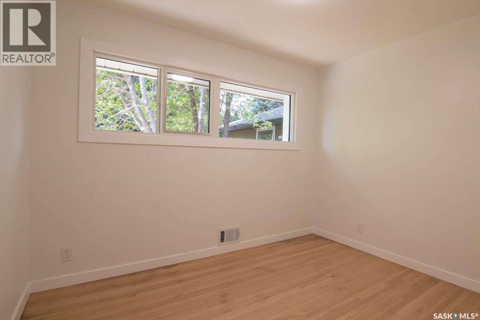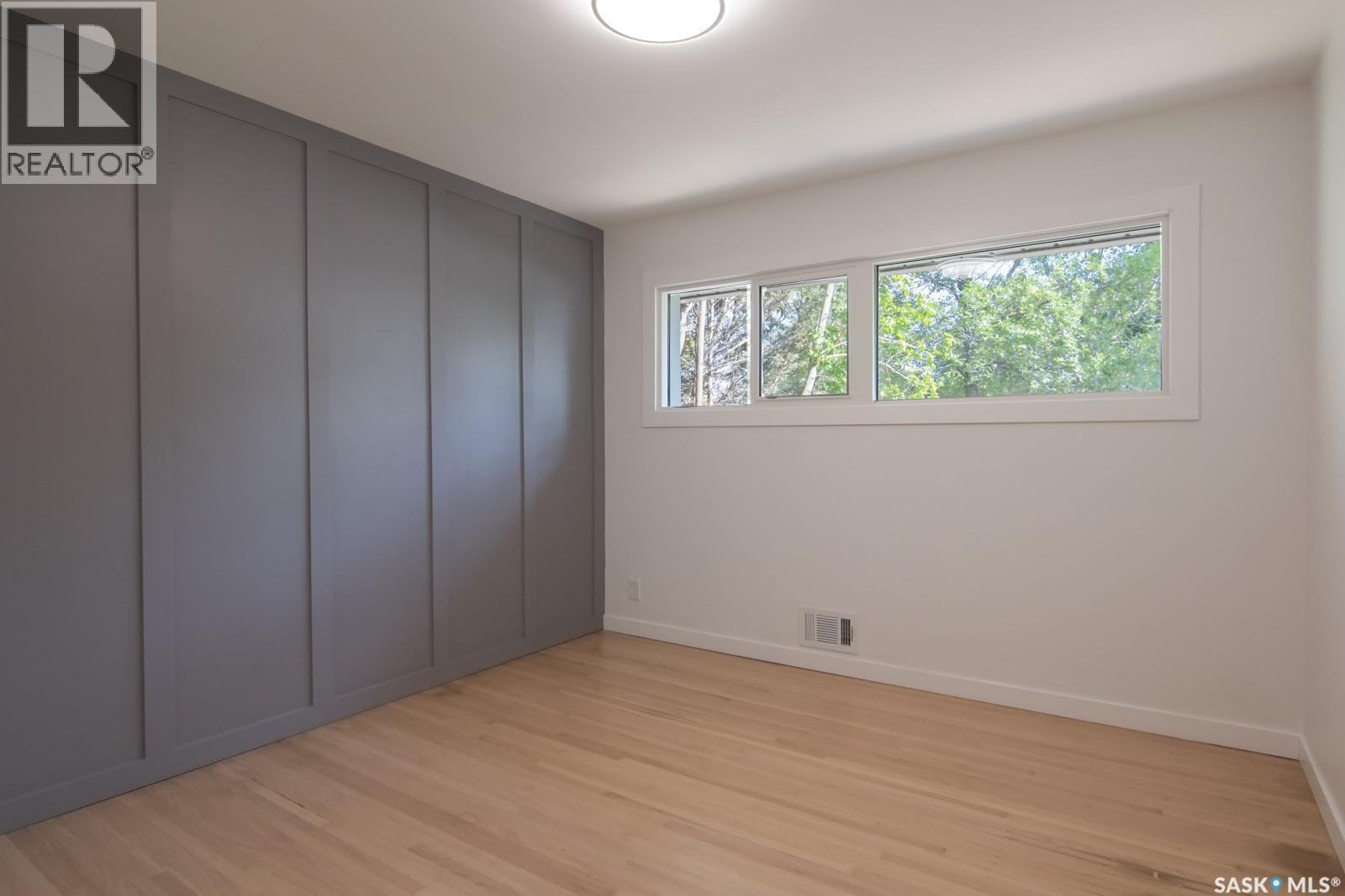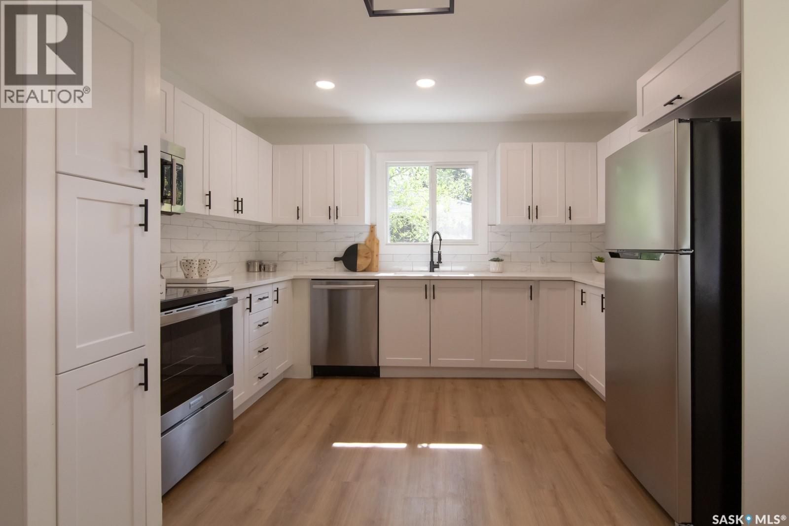 Beautifully renovated 1,040 sqft bungalow with 5 bedrooms & 2 bathrooms in the heart of Avalon! Built in 1954, this home is set on a large 60' wide lot surrounded by mature trees. A great combination of classic charm with modern updates, this property has been completely renovated in 2025. Updates include new PVC windows and exterior doors, refinished Hardwood in living room & main floor bedrooms, new laminate flooring on main floor and basement with vinyl plank flooring in bathrooms, new plumbing fixtures throughout, lighting fixtures & pot lights throughout, kitchen cabinets with quartz countertops and subway tile backsplash, interior doors & hardware, fresh paint throughout, electric fireplace, HE furnace, new HWT, and new baseboards/ casings, The oversized single garage is 14 x 23 and there is back alley access with RV parking available. An ideal location, steps from John Lake School & Park, Avalon local shopping Centre, Broadway shopping & restaurant district, 8th Street, with quick access to the Downtown, University, and South Saskatchewan River. Nothing to do but move in & enjoy! Call & book your viewing today! (id:34297)