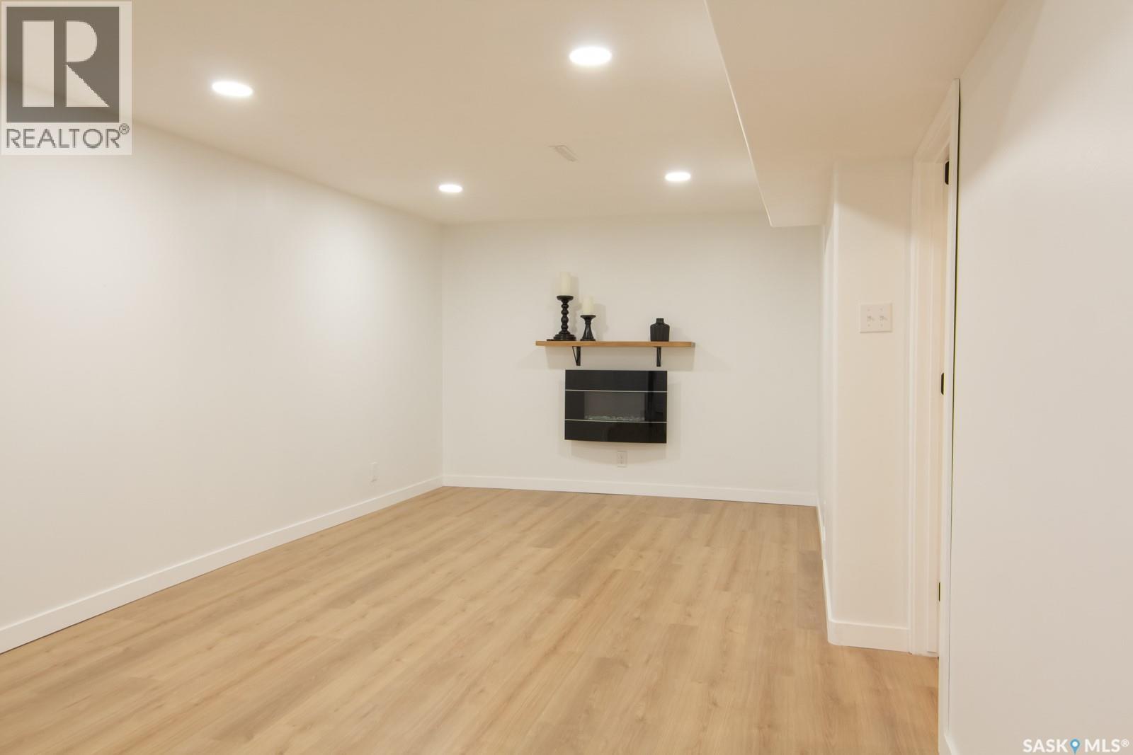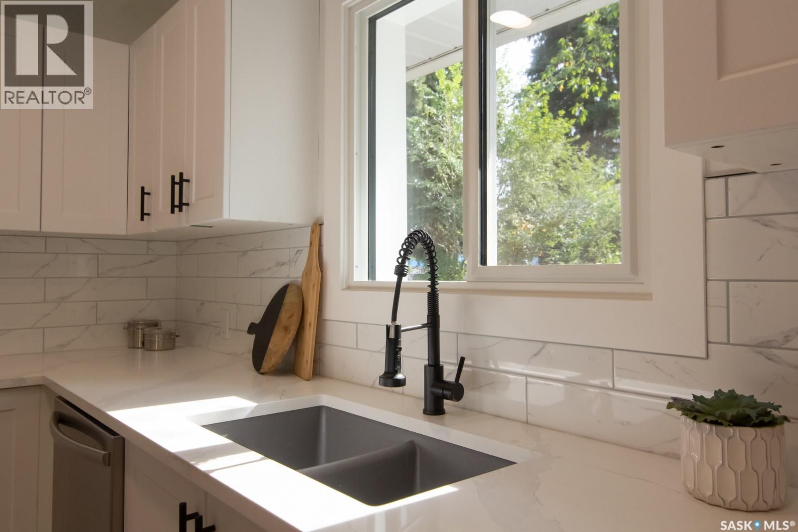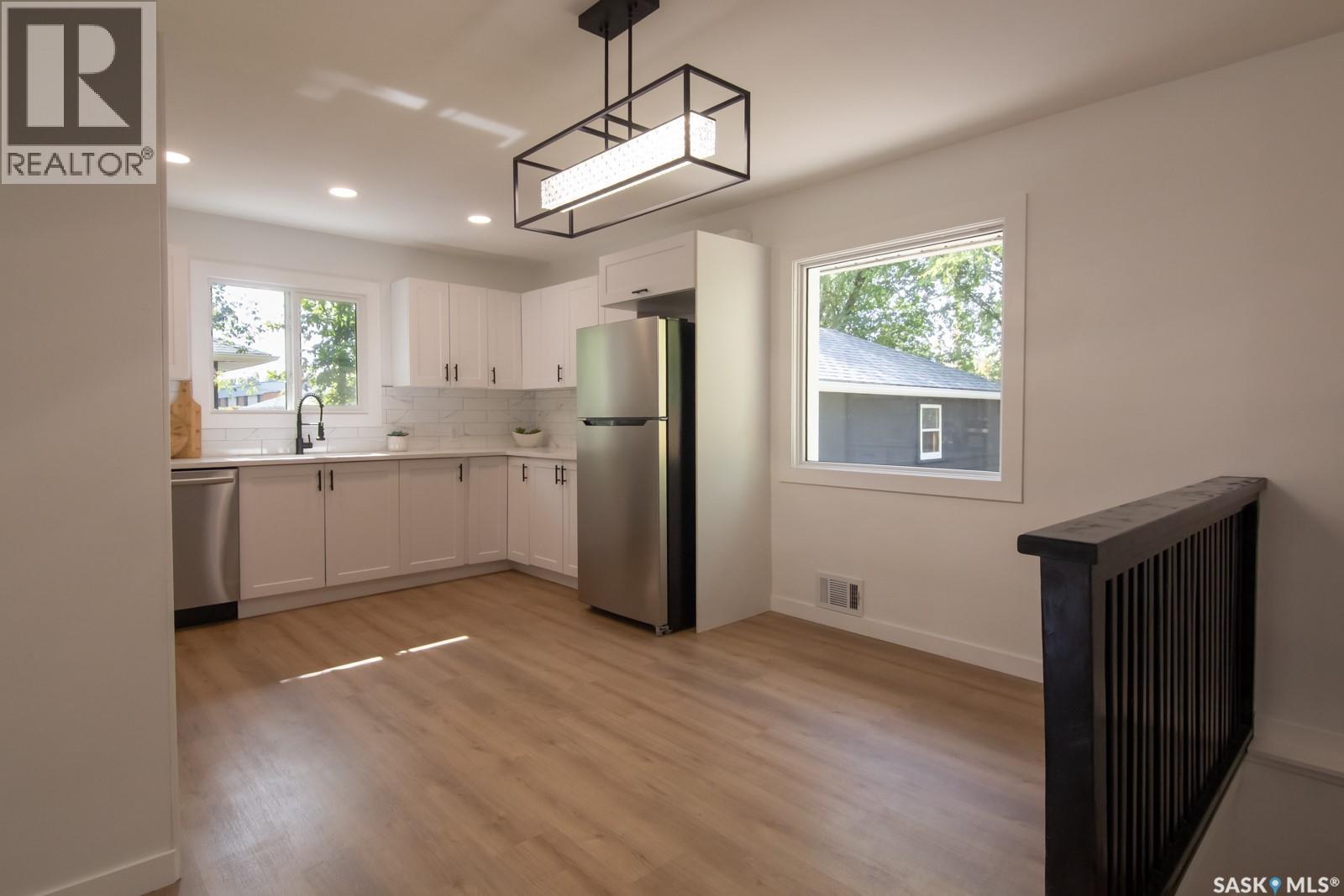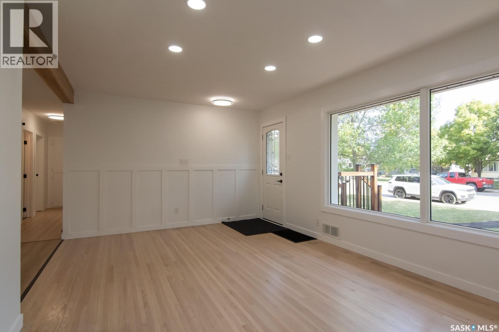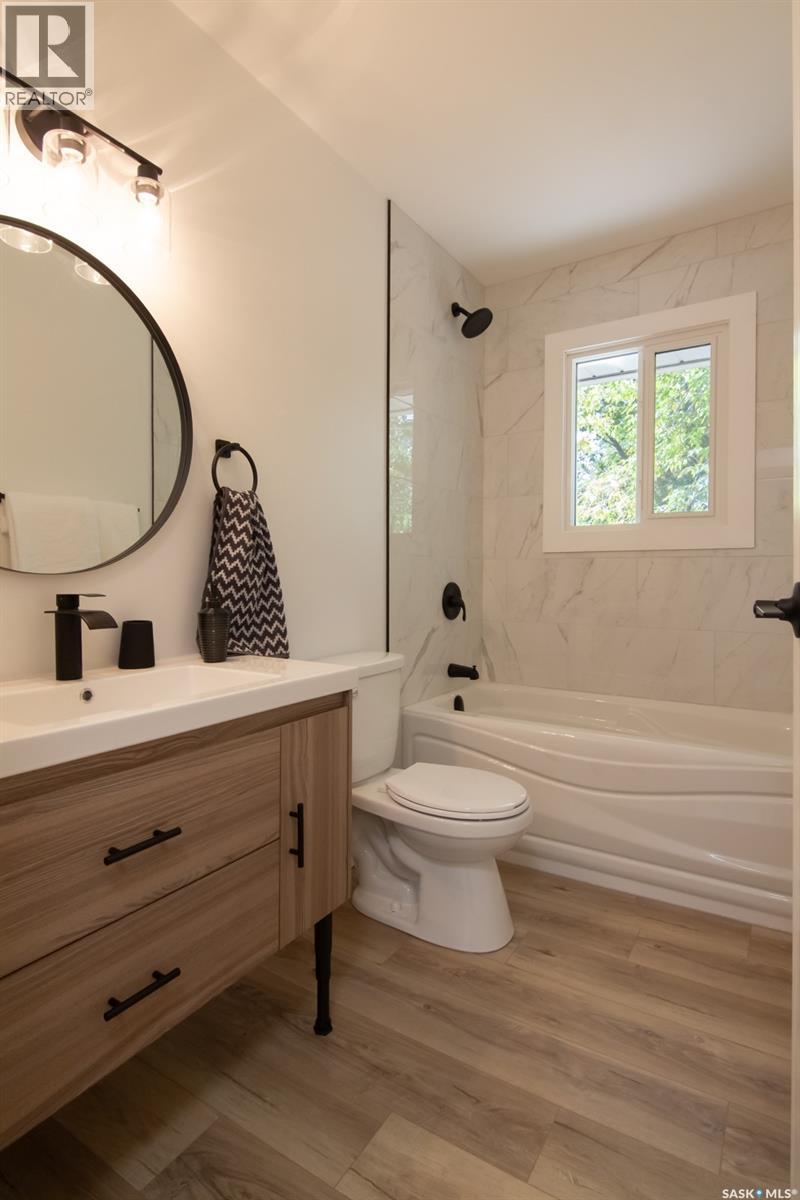 Beautifully renovated 1,040 sqft bungalow with 5 bedrooms & 2 bathrooms in the heart of Avalon! Built in 1954, this home is set on a large 60' wide lot surrounded by mature trees. A great combination of classic charm with modern updates, this property has been completely renovated in 2025. Updates include new PVC windows and exterior doors, refinished Hardwood in living room & main floor bedrooms, new laminate flooring on main floor and basement with vinyl plank flooring in bathrooms, new plumbing fixtures throughout, lighting fixtures & pot lights throughout, kitchen cabinets with quartz countertops and subway tile backsplash, interior doors & hardware, fresh paint throughout, electric fireplace, HE furnace, new HWT, and new baseboards/ casings, The oversized single garage is 14 x 23 and there is back alley access with RV parking available. An ideal location, steps from John Lake School & Park, Avalon local shopping Centre, Broadway shopping & restaurant district, 8th Street, with quick access to the Downtown, University, and South Saskatchewan River. Nothing to do but move in & enjoy! Call & book your viewing today! (id:34297)