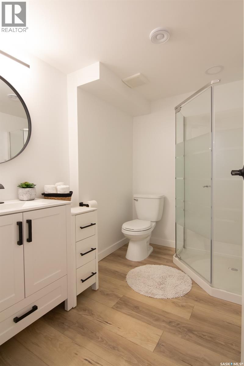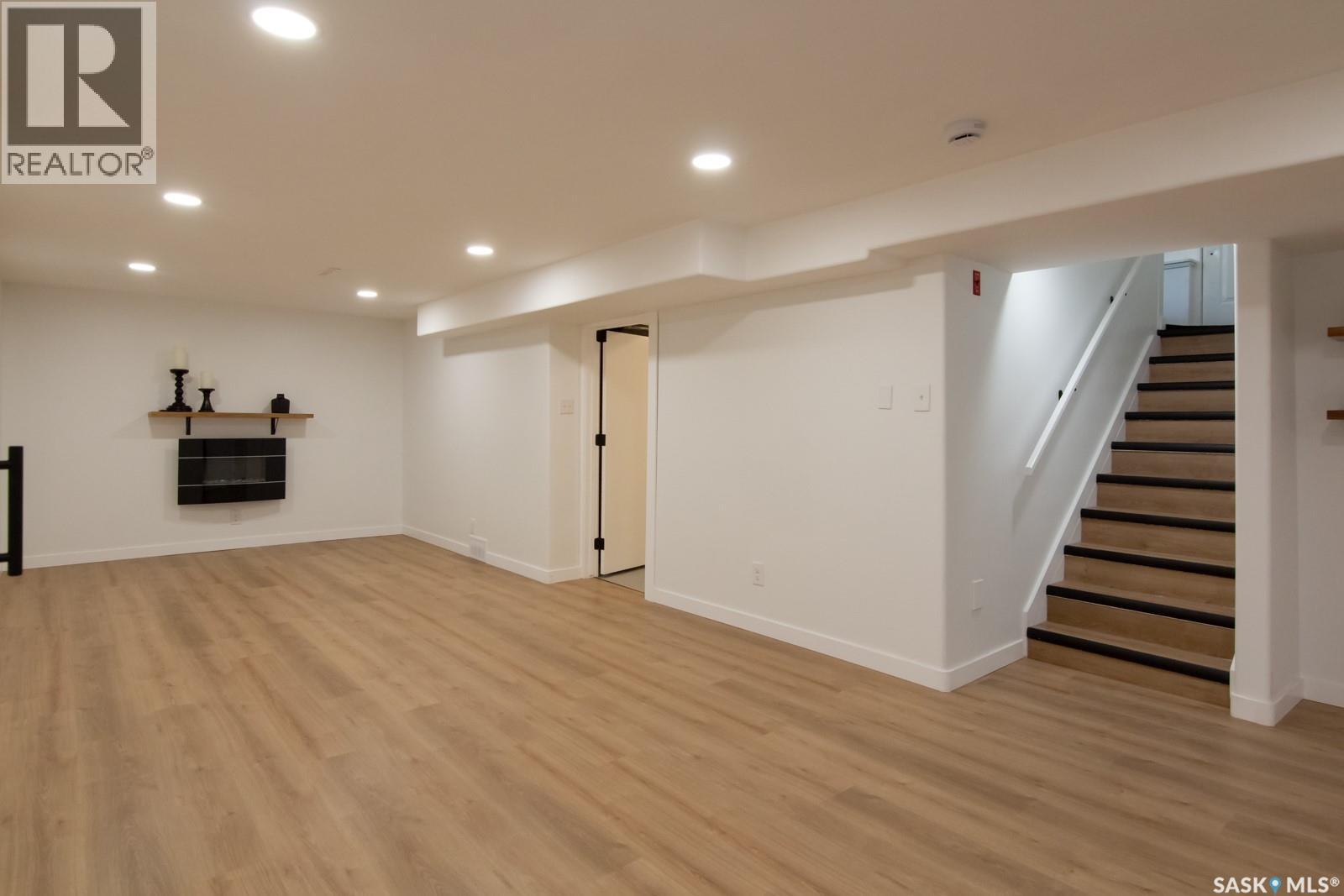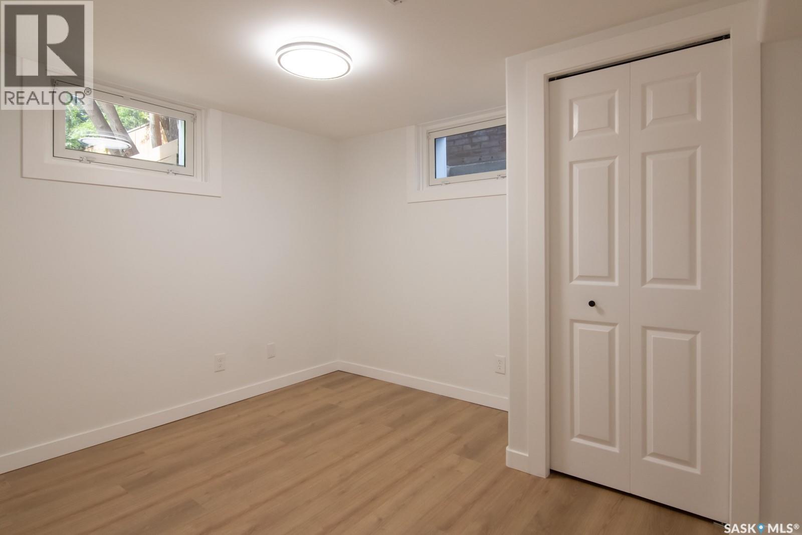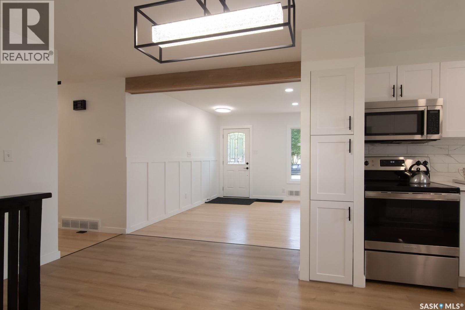Beautifully renovated 1,040 sqft bungalow with 5 bedrooms & 2 bathrooms in the heart of Avalon! Built in 1954, this home is set on a large 60' wide lot surrounded by mature trees. A great combination of classic charm with modern updates, this property has been completely renovated in 2025. Updates include new PVC windows and exterior doors, refinished Hardwood in living room & main floor bedrooms, new laminate flooring on main floor and basement with vinyl plank flooring in bathrooms, new plumbing fixtures throughout, lighting fixtures & pot lights throughout, kitchen cabinets with quartz countertops and subway tile backsplash, interior doors & hardware, fresh paint throughout, electric fireplace, HE furnace, new HWT, and new baseboards/ casings, The oversized single garage is 14 x 23 and there is back alley access with RV parking available. An ideal location, steps from John Lake School & Park, Avalon local shopping Centre, Broadway shopping & restaurant district, 8th Street, with quick access to the Downtown, University, and South Saskatchewan River. Nothing to do but move in & enjoy! Call & book your viewing today! (id:34297)