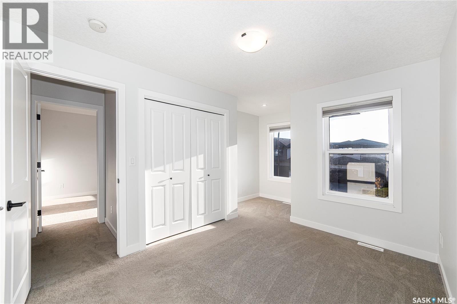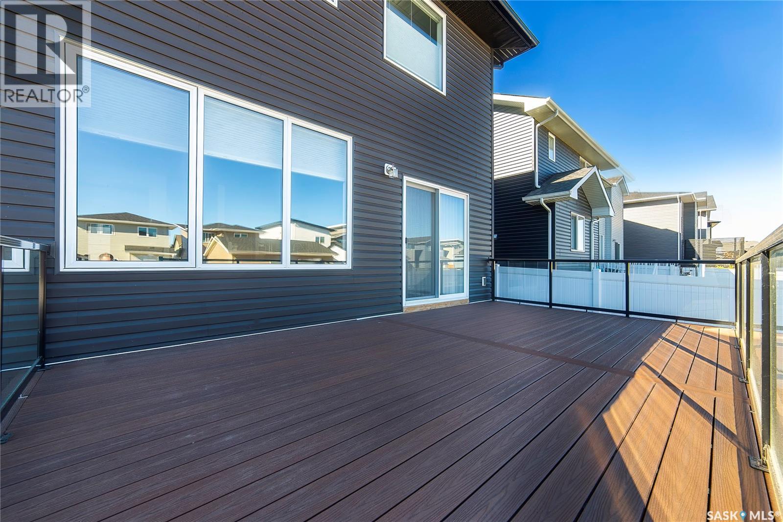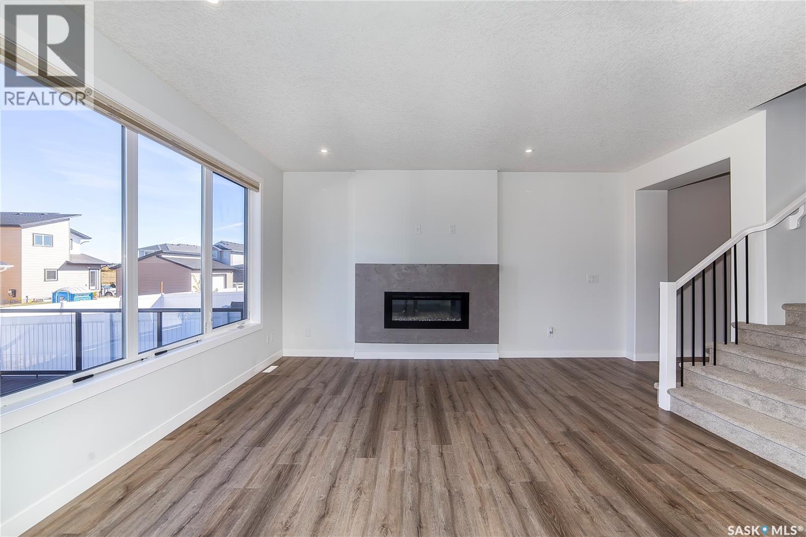 Welcome to 259 Prasad Manor, a beautiful two-storey North Ridge home in Saskatoon’s vibrant Brighton community. Offering 1,968 sq ft of modern living space, features a bright open-concept main floor with 9-ft ceilings, pot lights, and a living room accented by an electric fireplace. The stunning two-toned kitchen showcases quartz countertops, tiled backsplash, upgraded stainless steel appliances, a garburator, reverse osmosis system, and a walk-thru pantry leading to a functional mudroom and 2-piece bath. The upper level includes a spacious primary suite with a 5-piece ensuite and walk-in closet, two additional bedrooms each with a cozy reading nook (5'-4" x 5'-11"), a bonus room with vaulted ceiling, additional 4-piece bath, and second-floor laundry. The fully finished basement offers a large family room, bedroom, and another 4-piece bath—perfect for guests or extended family. Designed for modern living, this home includes water softener, high-quality shelving in all closets, a heat recovery ventilation system, high-efficiency furnace, central air, and upgraded light fixtures. Outside, enjoy a 6' x 10' veranda, a 21’ x 12’ composite deck with glass railing, backyard storage shed, landscaped yard, and a heated double attached garage with a Tesla EV charger—the perfect blend of luxury, comfort, and style. (id:34297)