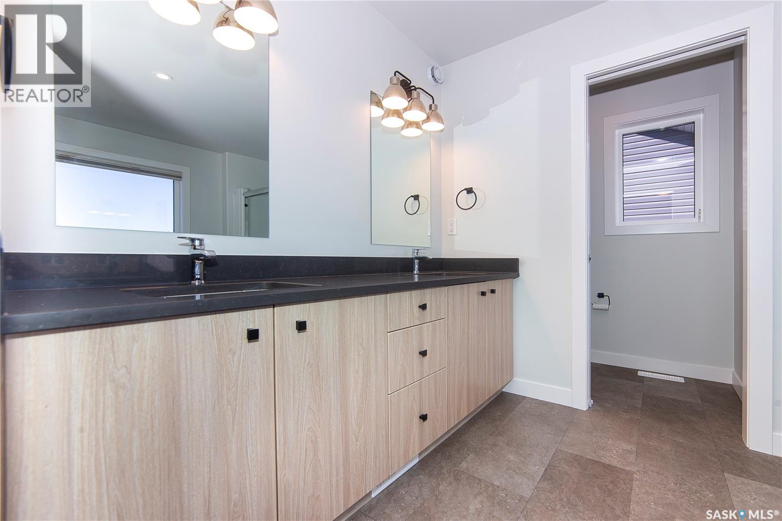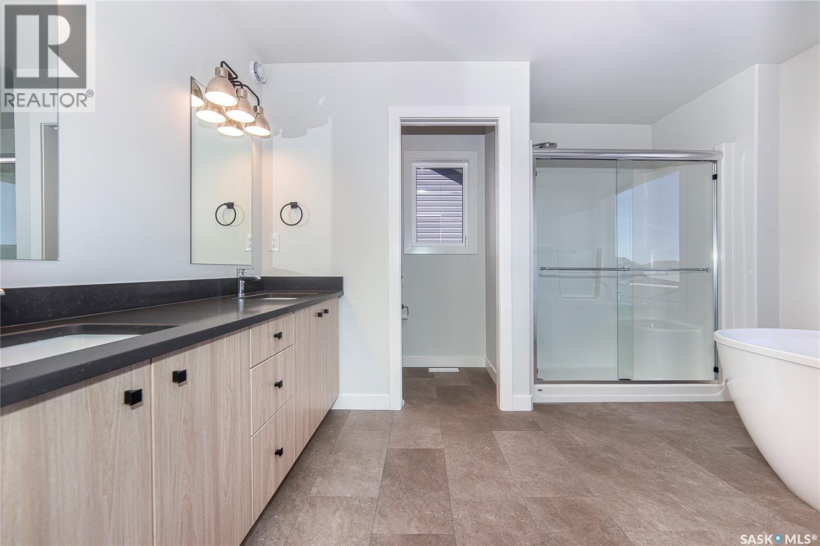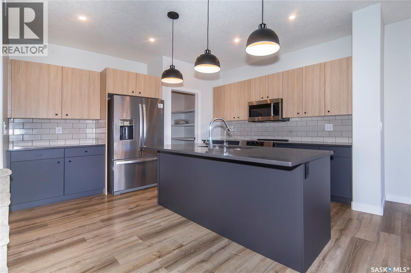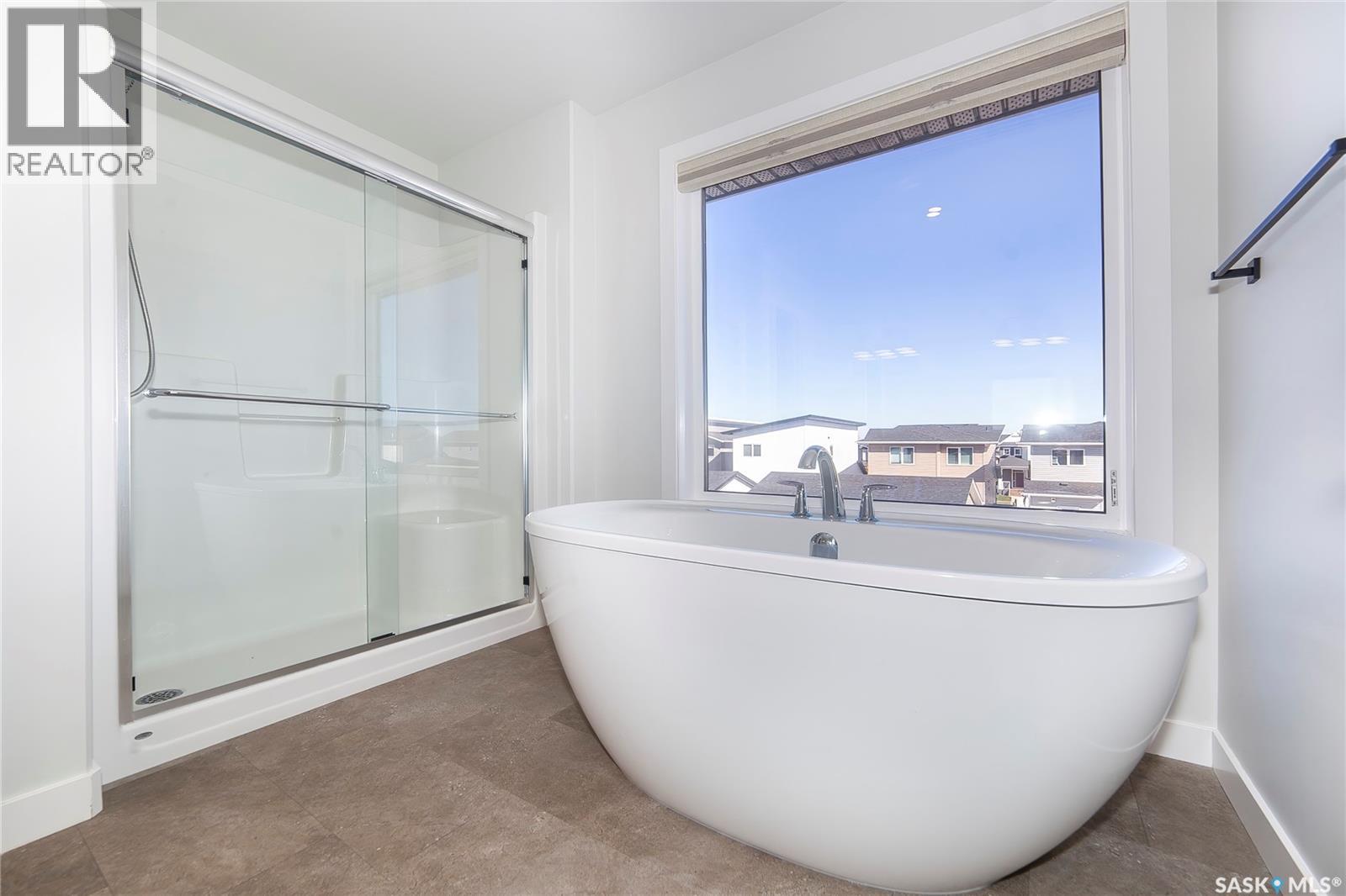 Welcome to 259 Prasad Manor, a beautiful two-storey North Ridge home in Saskatoon’s vibrant Brighton community. Offering 1,968 sq ft of modern living space, features a bright open-concept main floor with 9-ft ceilings, pot lights, and a living room accented by an electric fireplace. The stunning two-toned kitchen showcases quartz countertops, tiled backsplash, upgraded stainless steel appliances, a garburator, reverse osmosis system, and a walk-thru pantry leading to a functional mudroom and 2-piece bath. The upper level includes a spacious primary suite with a 5-piece ensuite and walk-in closet, two additional bedrooms each with a cozy reading nook (5'-4" x 5'-11"), a bonus room with vaulted ceiling, additional 4-piece bath, and second-floor laundry. The fully finished basement offers a large family room, bedroom, and another 4-piece bath—perfect for guests or extended family. Designed for modern living, this home includes water softener, high-quality shelving in all closets, a heat recovery ventilation system, high-efficiency furnace, central air, and upgraded light fixtures. Outside, enjoy a 6' x 10' veranda, a 21’ x 12’ composite deck with glass railing, backyard storage shed, landscaped yard, and a heated double attached garage with a Tesla EV charger—the perfect blend of luxury, comfort, and style. (id:34297)