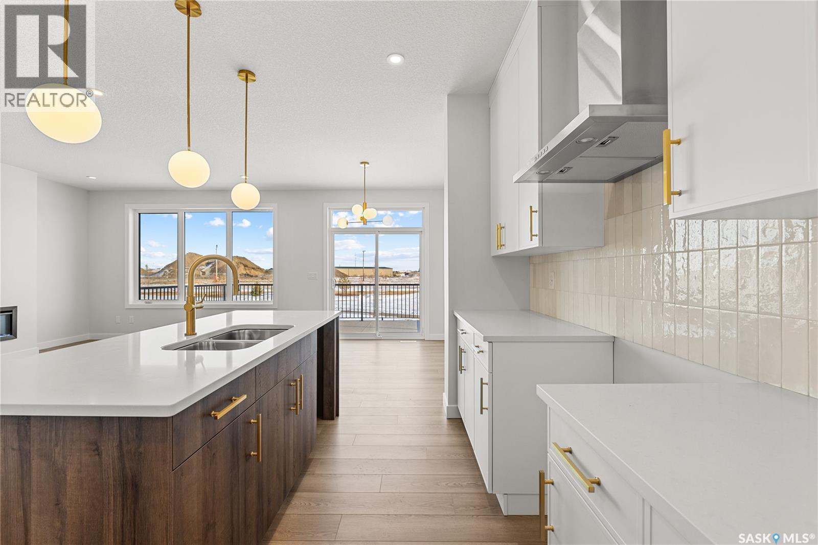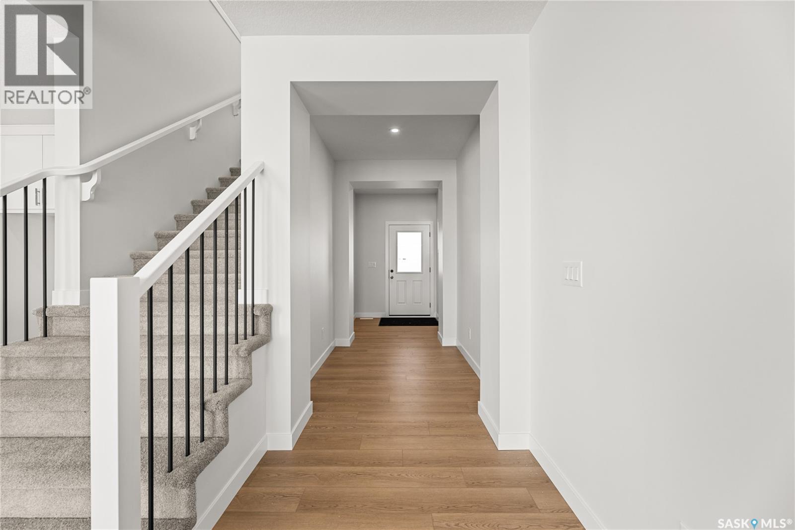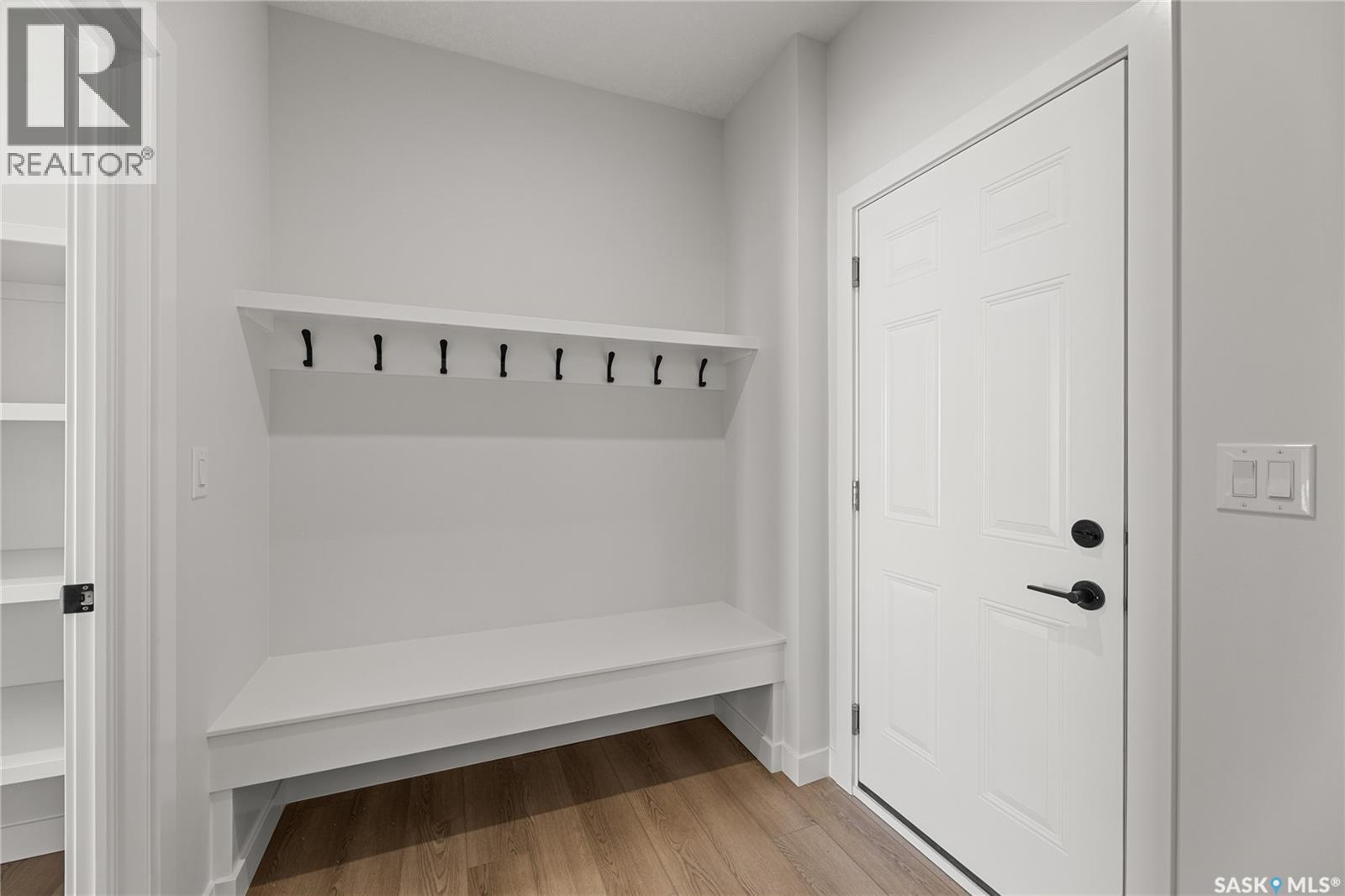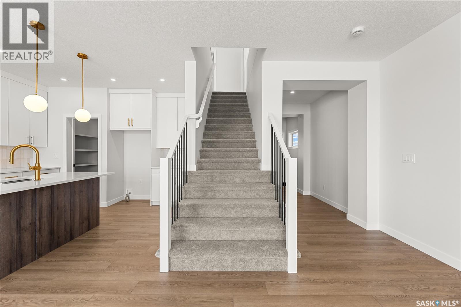 Welcome to the "Heatley" model by North Ridge Development Corporation. This 1968 square foot walk out 2-Storey home with a main floor consisting of a large kitchen with walk thru pantry and island, a good sized dining and living area, mudroom and 2-pce bath. This floorplan also has a second floor with 3 bedrooms, a bonus room, a 4-piece main bathroom, 5-piece ensuite and laundry. Some unique features, providing a fresh and modern look, include high quality shelving in all closets, quartz countertops, vinyl plank flooring, and an upgraded trim package. This home includes a heat recovery ventilation system, high efficient furnace. As well, an oversized double attached garage, front driveway, front landscaping, and rear deck with aluminum railing. Saskatchewan New Home Warranty. GST/PST included in purchase price with any rebates to builder. Saskatchewan Home Warranty Premium Coverage. *Home is now complete and ready for possession* Call to View! (id:34297)