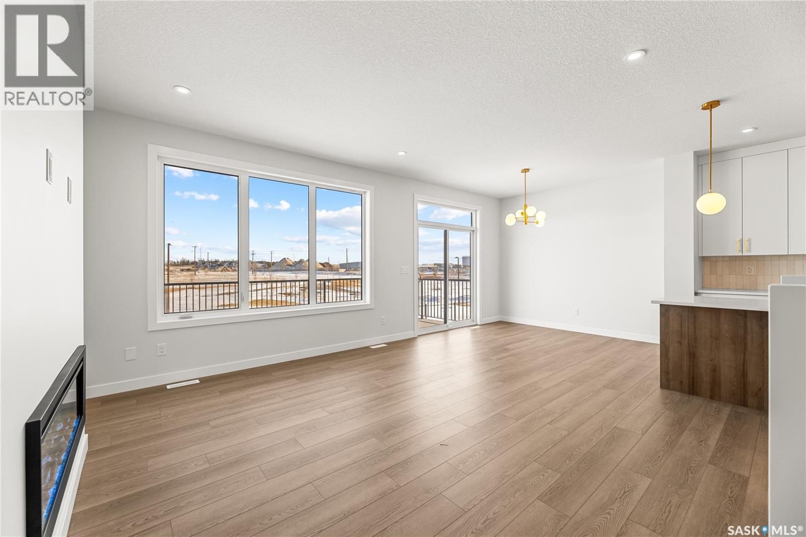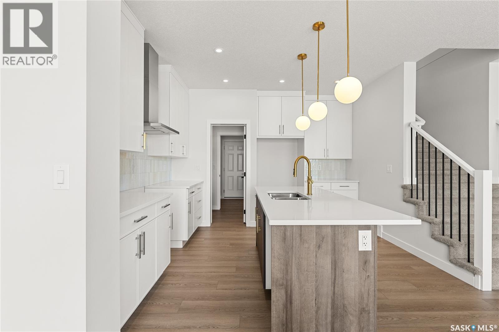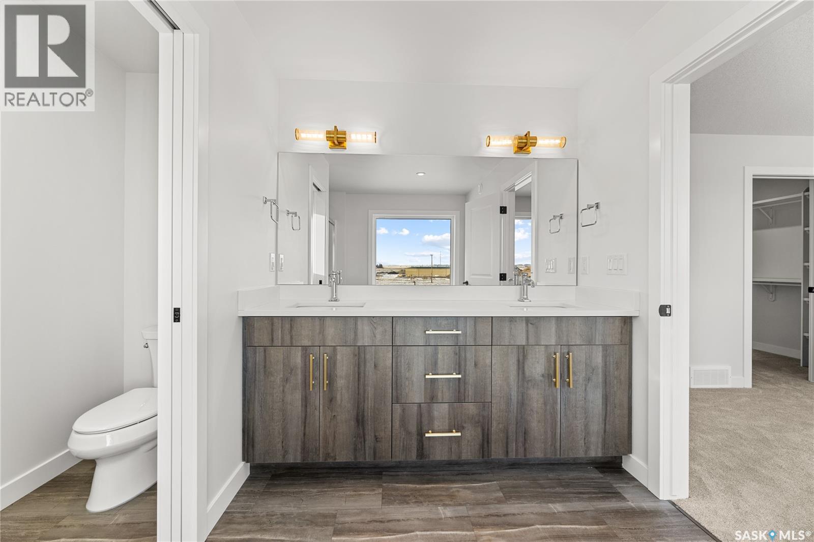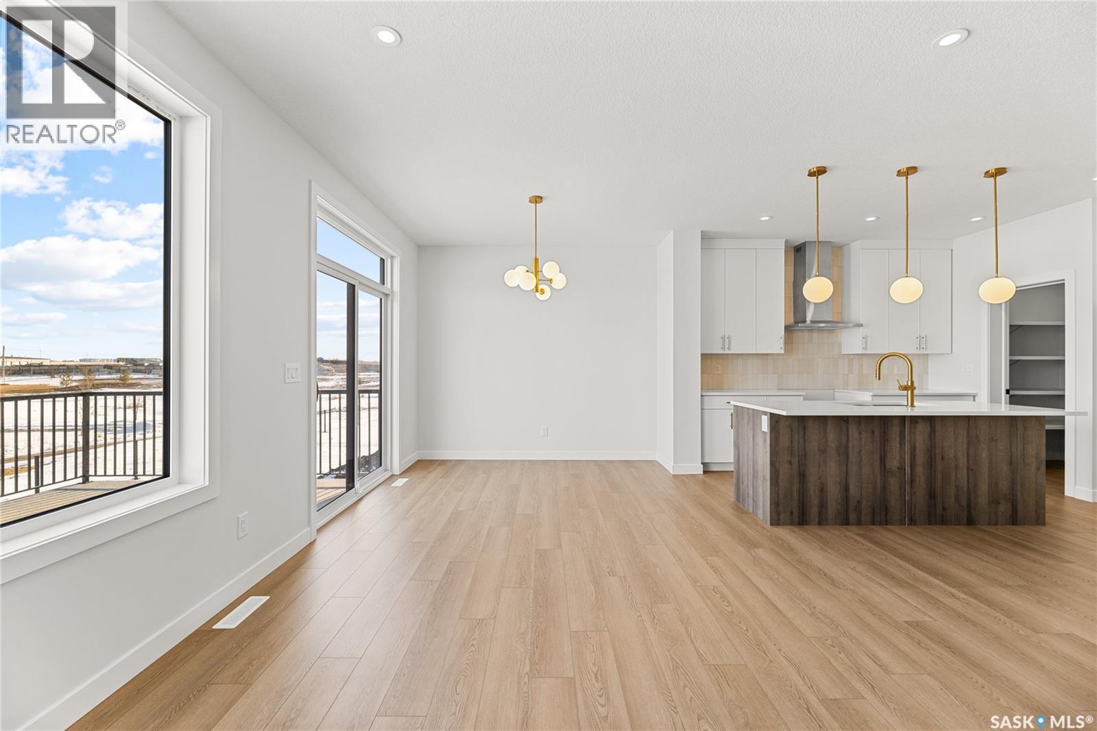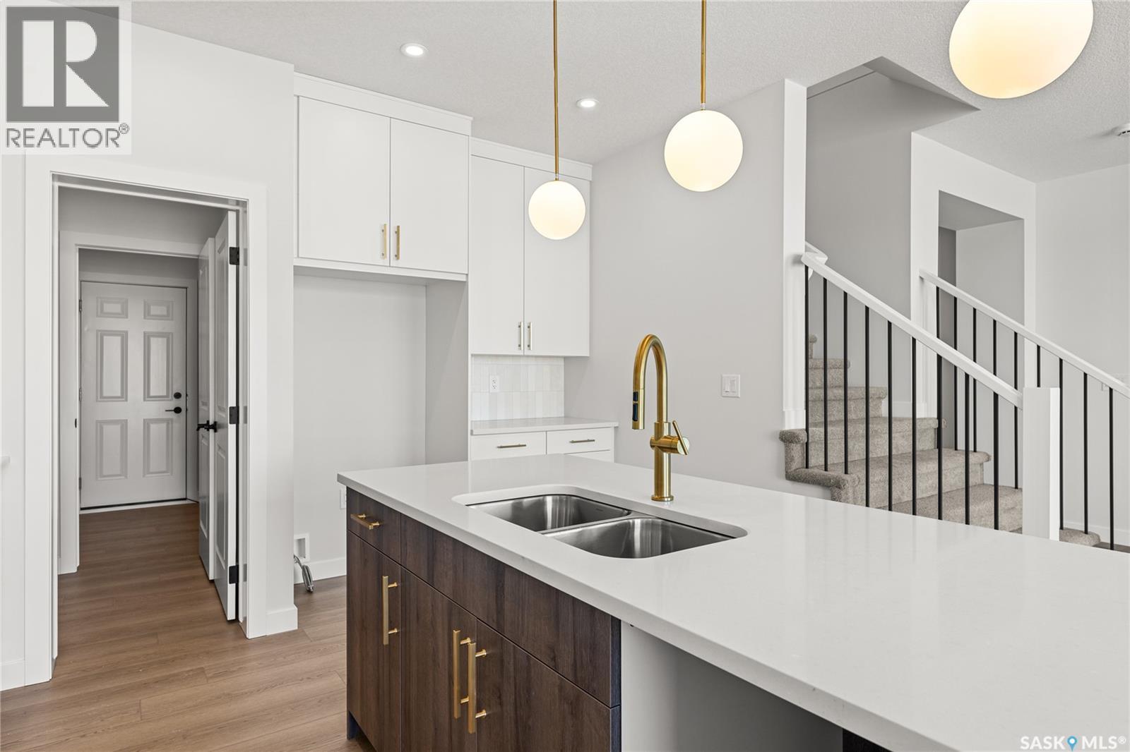 Welcome to the "Heatley" model by North Ridge Development Corporation. This 1968 square foot walk out 2-Storey home with a main floor consisting of a large kitchen with walk thru pantry and island, a good sized dining and living area, mudroom and 2-pce bath. This floorplan also has a second floor with 3 bedrooms, a bonus room, a 4-piece main bathroom, 5-piece ensuite and laundry. Some unique features, providing a fresh and modern look, include high quality shelving in all closets, quartz countertops, vinyl plank flooring, and an upgraded trim package. This home includes a heat recovery ventilation system, high efficient furnace. As well, an oversized double attached garage, front driveway, front landscaping, and rear deck with aluminum railing. Saskatchewan New Home Warranty. GST/PST included in purchase price with any rebates to builder. Saskatchewan Home Warranty Premium Coverage. *Home is now complete and ready for possession* Call to View! (id:34297)