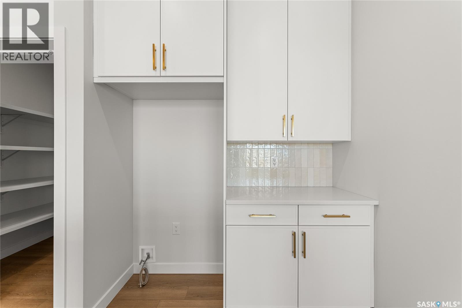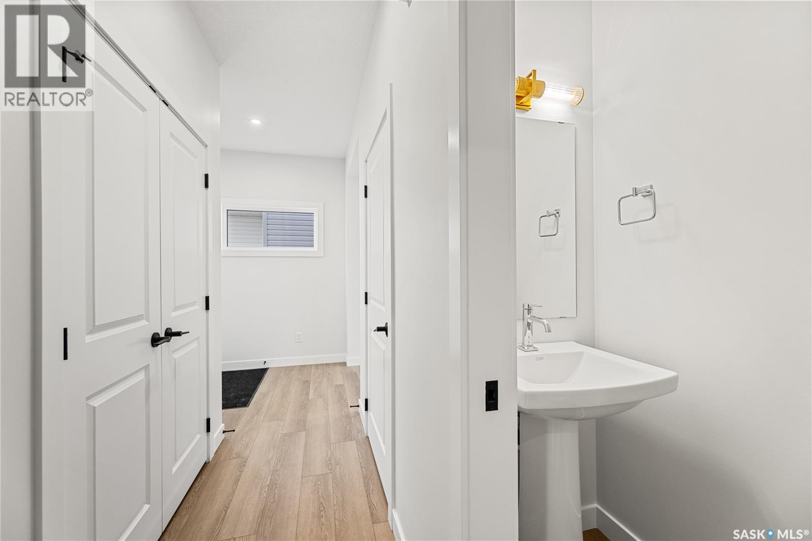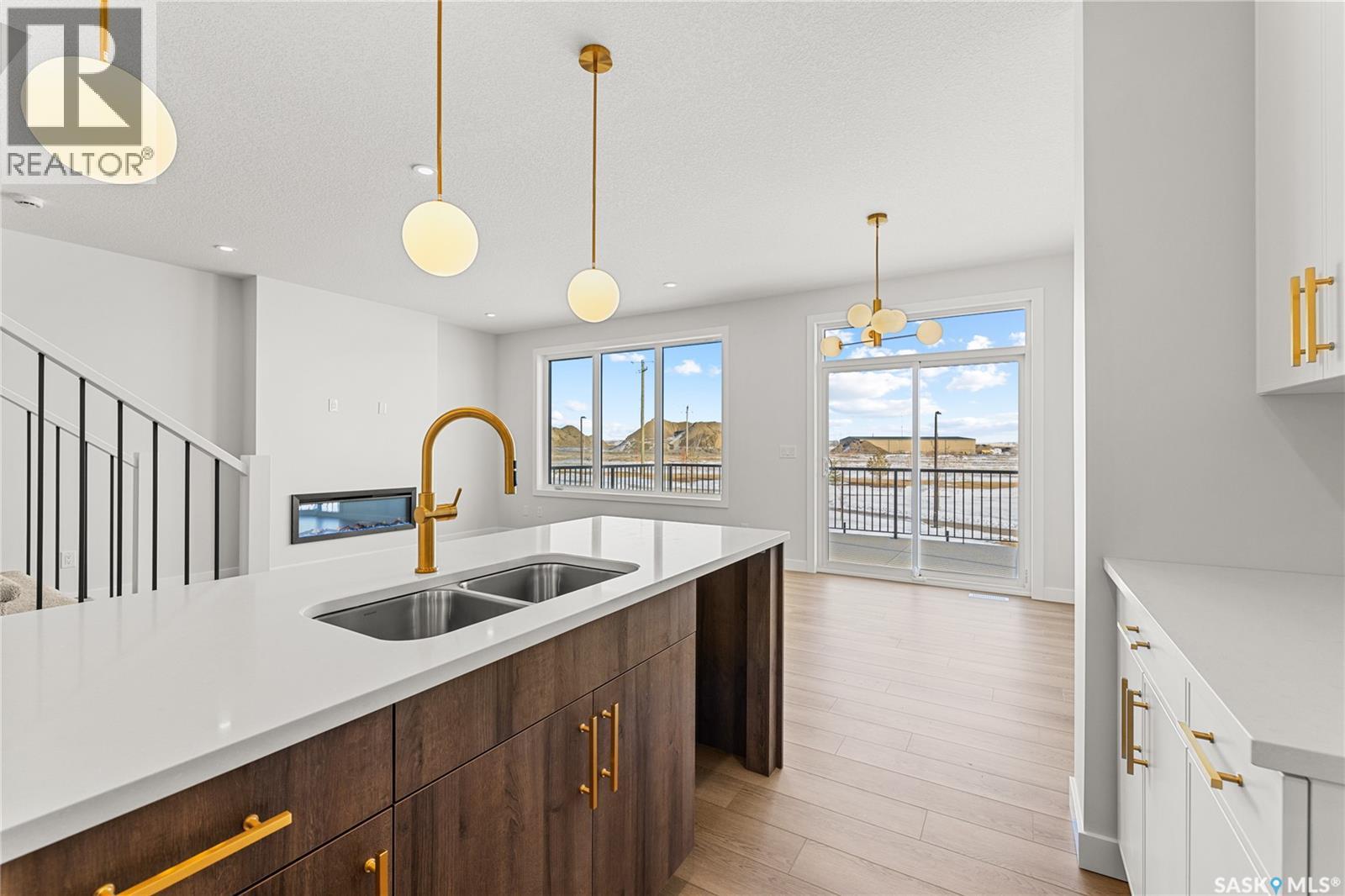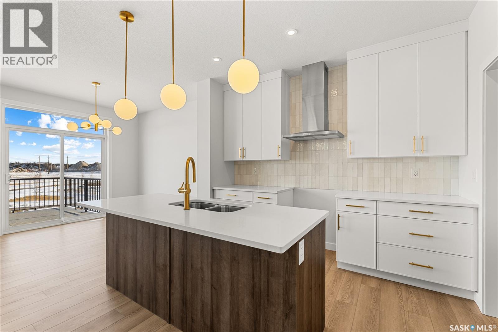 Welcome to the "Heatley" model by North Ridge Development Corporation. This 1968 square foot walk out 2-Storey home with a main floor consisting of a large kitchen with walk thru pantry and island, a good sized dining and living area, mudroom and 2-pce bath. This floorplan also has a second floor with 3 bedrooms, a bonus room, a 4-piece main bathroom, 5-piece ensuite and laundry. Some unique features, providing a fresh and modern look, include high quality shelving in all closets, quartz countertops, vinyl plank flooring, and an upgraded trim package. This home includes a heat recovery ventilation system, high efficient furnace. As well, an oversized double attached garage, front driveway, front landscaping, and rear deck with aluminum railing. Saskatchewan New Home Warranty. GST/PST included in purchase price with any rebates to builder. Saskatchewan Home Warranty Premium Coverage. *Home is now complete and ready for possession* Call to View! (id:34297)