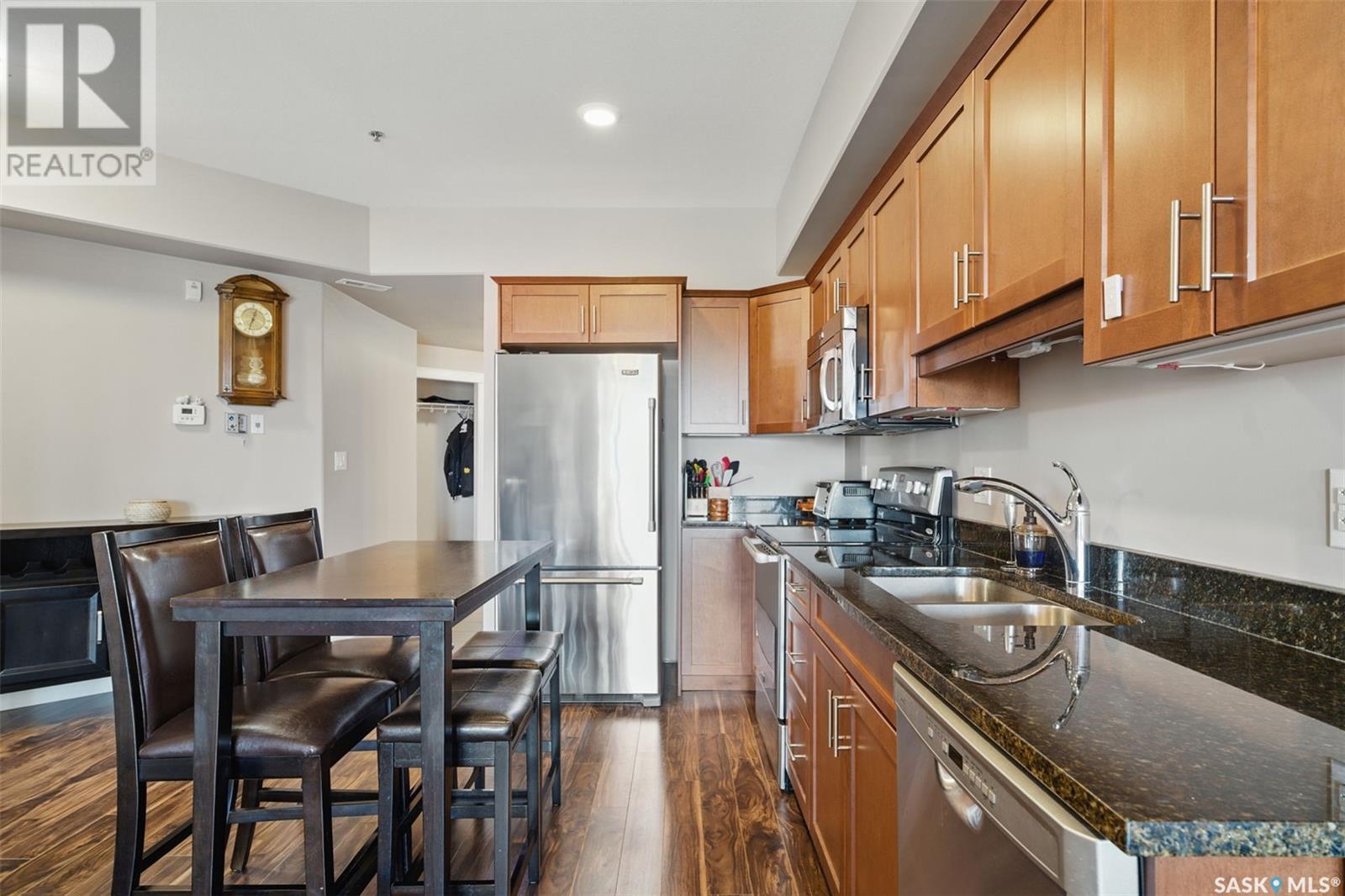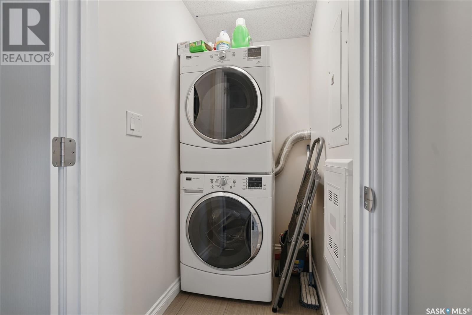 $526.30 MonthlyExperience top-floor living in this exceptional, west-facing, 2-bedroom, 2-bathroom condo, perfectly situated in the highly desirable neighbourhood of Willowgrove. This unit’s features include a spacious and modern open concept with 9-foot ceilings that create an airy and expansive feel, granite countertops, stainless steel appliances, easy-to-care-for tile and laminate flooring, and Hunter Douglas blinds throughout. Enjoy the convenience and security of not one but two underground parking stalls, ensuring your vehicles and their contents are always safe from the elements and ready to roll, saving you time and effort during the coldest of winters. The underground storage locker is perfect for storing your bikes and other gear. An abundance of visitor parking spots ensures your guests always have a place to park. For those who appreciate privacy, step outside and enjoy a 120-square-foot balcony that is afternoon and evening sunned. Relax and unwind on the largest balcony that the building offers with a tranquil view of the clock-square green space below and an unobstructed panorama of the skyline above—a perfect spot for your morning coffee or evening relaxation. The location is a true highlight. You'll find yourself within easy walking distance of a variety of grocery stores, banks, restaurants, and medical offices. With a bus stop right outside the building and a new daycare nearing completion across the street, this condo is a fantastic fit for both U of S students and small families seeking convenience and accessibility. This condo truly has it all. Book your private showing today and discover your new home. (28455744) (id:34297)