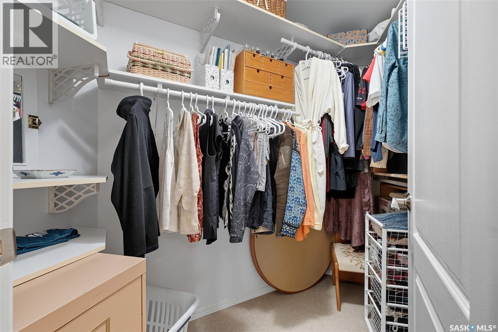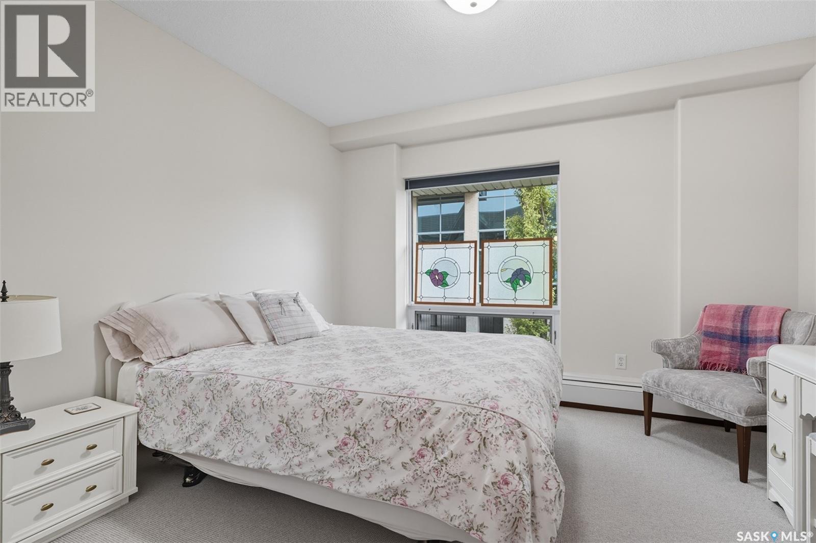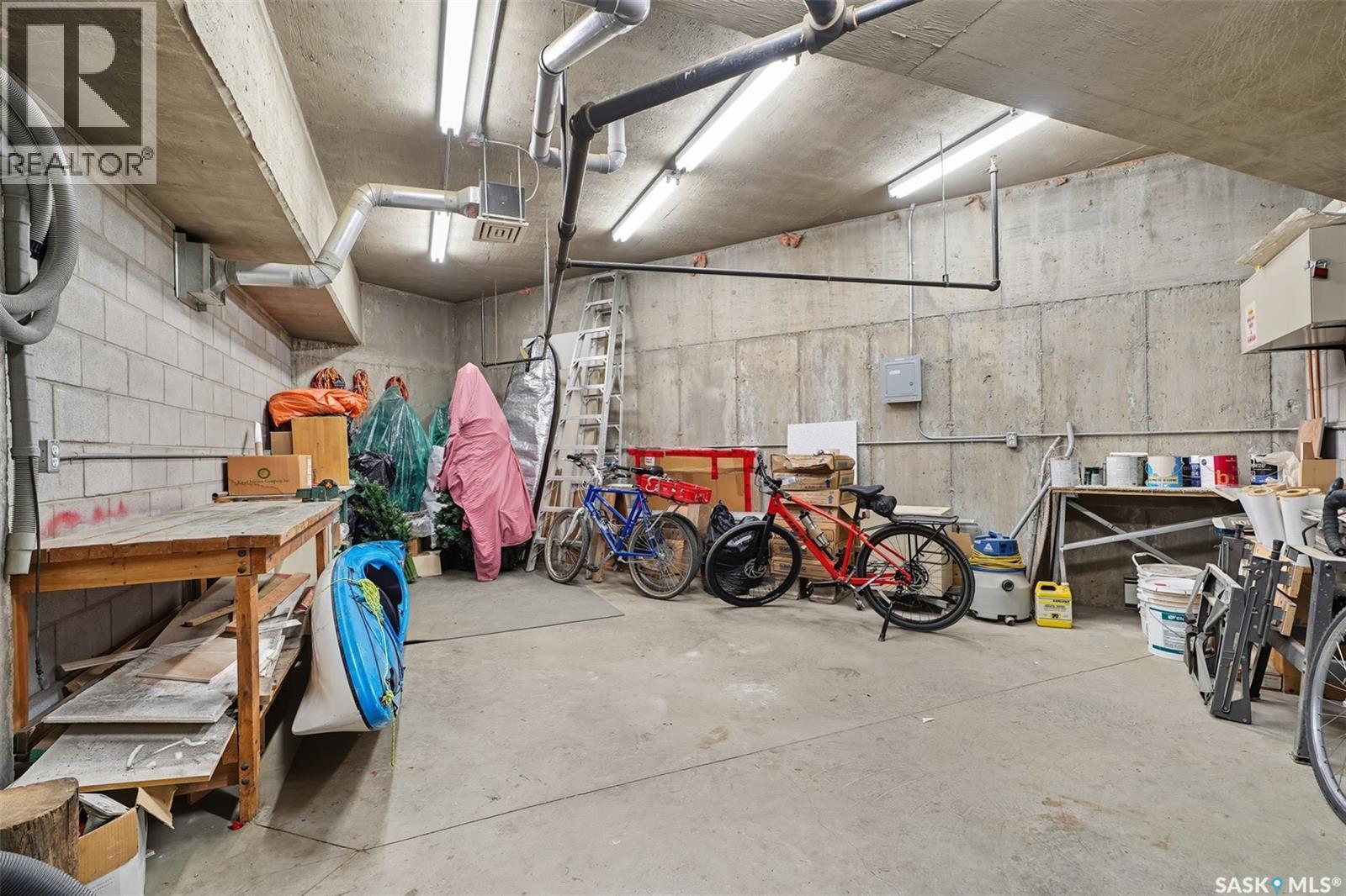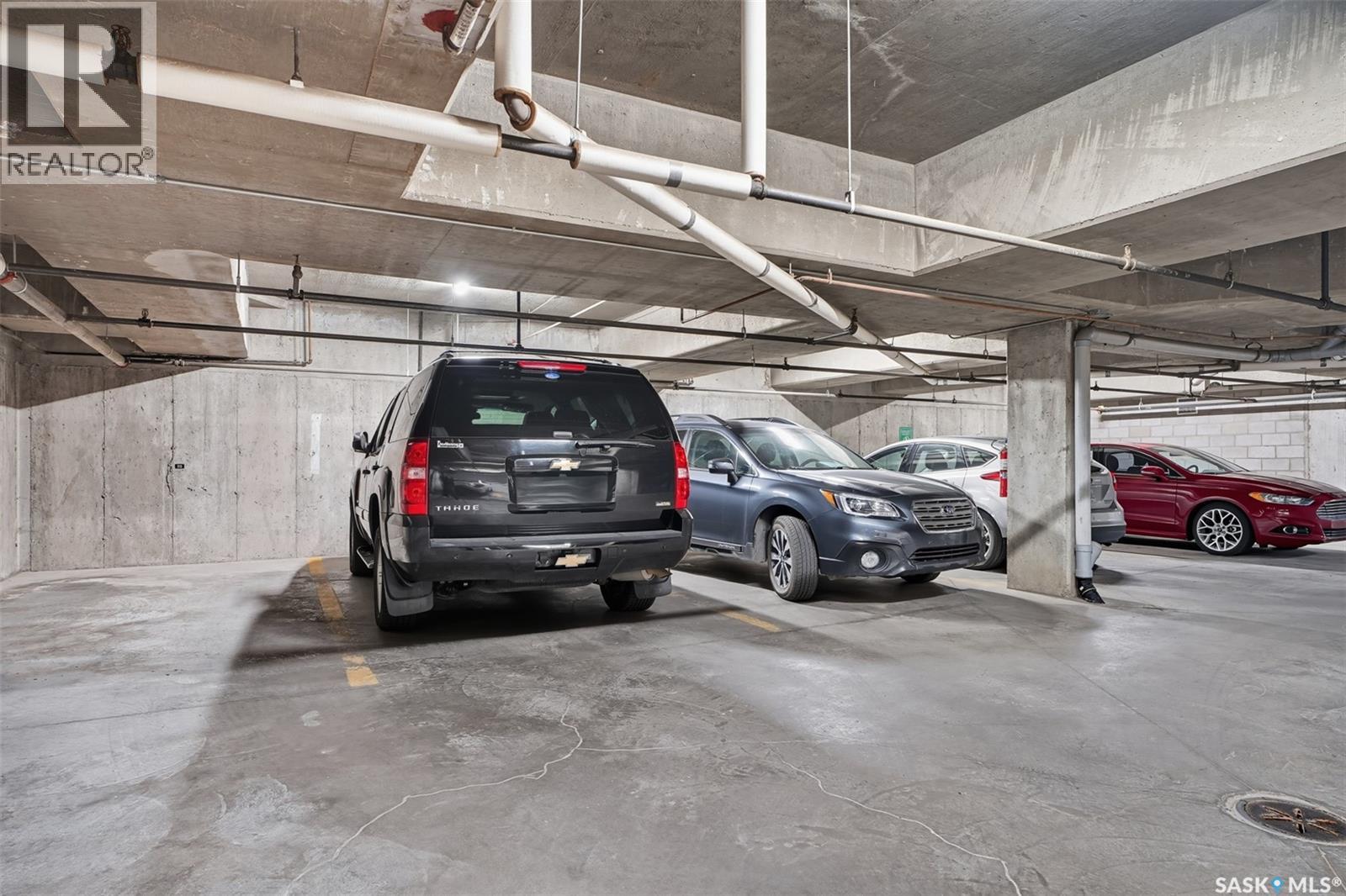 $895 MonthlyGorgeous river and downtown views are featured in this spacious 1,593 square foot THIRD FLOOR CORNER UNIT in the prestigious RIVERWALK condo building. Unit is 5th largest of 36 in RIVERWALK featuring 2 bedrooms PLUS large den (Or potential 3rd bedroom) and largest unit offered on MLS since 2003! This premiere location in Saskatoon is perched above Saskatchewan Crescent East and immediately adjacent to the Meewasin Valley park and trail system, and within walking distance of the downtown, University and the trendy Broadway shopping district. This quality Remai built building is of concrete and steel construction, and has stone and concrete tile exterior siding, triple pane windows and two elevators. Sweeping west to northwest river views from the balcony and from the open concept living, dining and kitchen areas, plus five additional large windows to the south. Roomy living and dining areas, and a spacious primary bedroom with ensuite bathroom featuring 5’ Jacuzzi soaker tub and separate shower. There is a second bedroom, an oversize den(or 3rd bedroom), and room for a freezer in the laundry room. Other notable features include solid maple framed kitchen cabinets, gas range, newer programmable thermostat with separate thermostat for the bedrooms, upgraded ceiling finish in the living areas, recently painted walls, ceilings, doors and trim, new toilets, and updated brushed nickel hardware and light fixtures. There is a Phantom screen to the balcony, and the balcony deck has been upgraded to an easy-to-clean urethane system with aggregate and clear finish top coats. There are TWO UNDERGROUND PARKING STALLS and two storage units in the heated garage. Building amenities include a well-equipped exercise room, meeting room, craft room and plenty of visitor parking. NOTE:Offers will be viewed at Monday OCT 27th at 5:00pm As per the Seller’s direction, all offers will be presented on 10/27/2025 5:00PM. (id:34297)