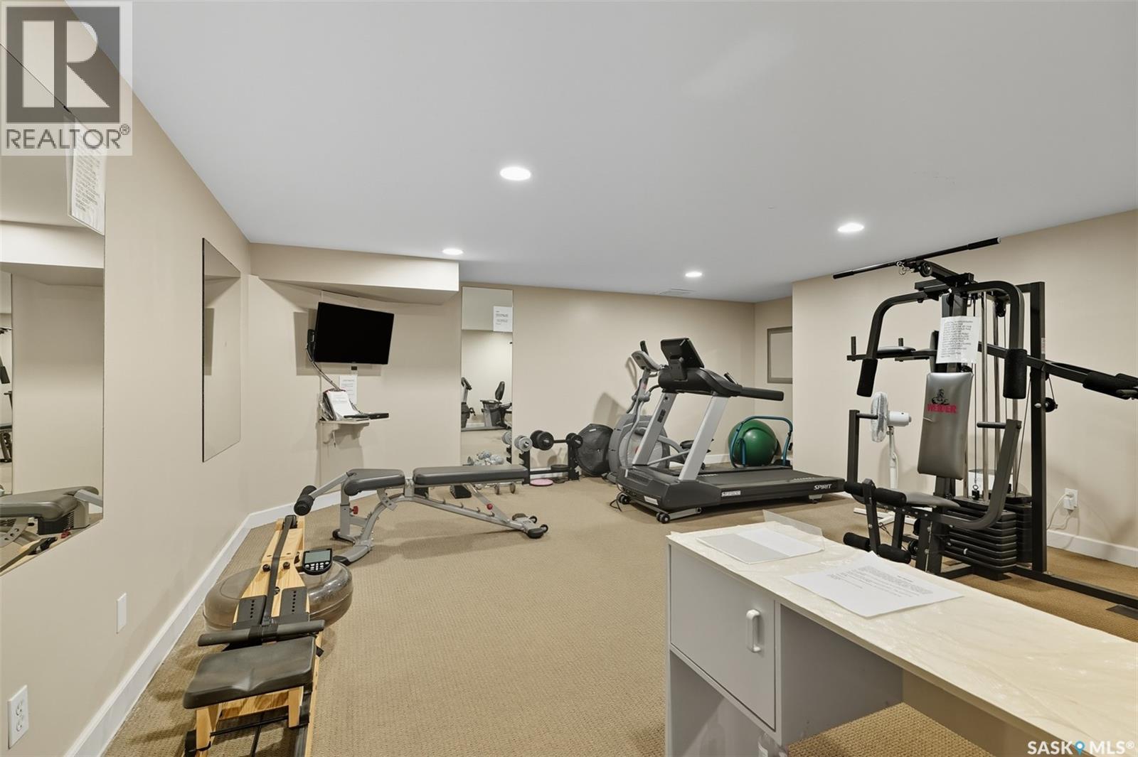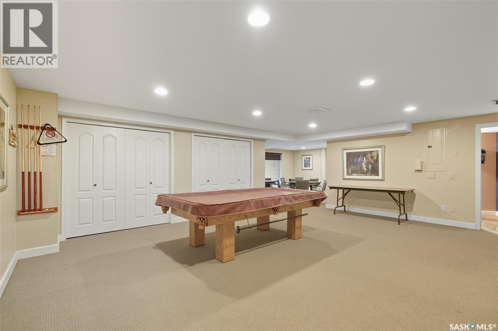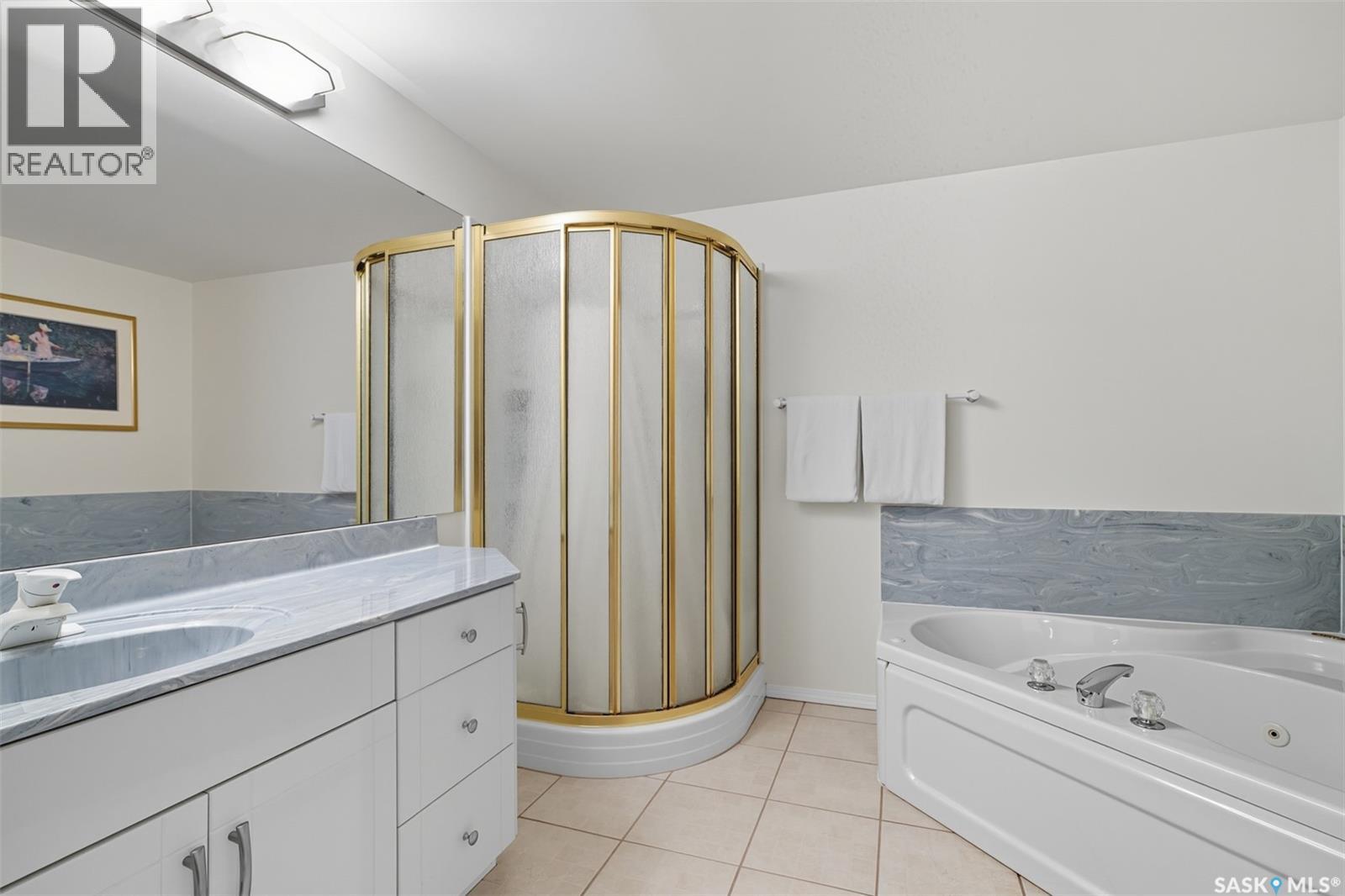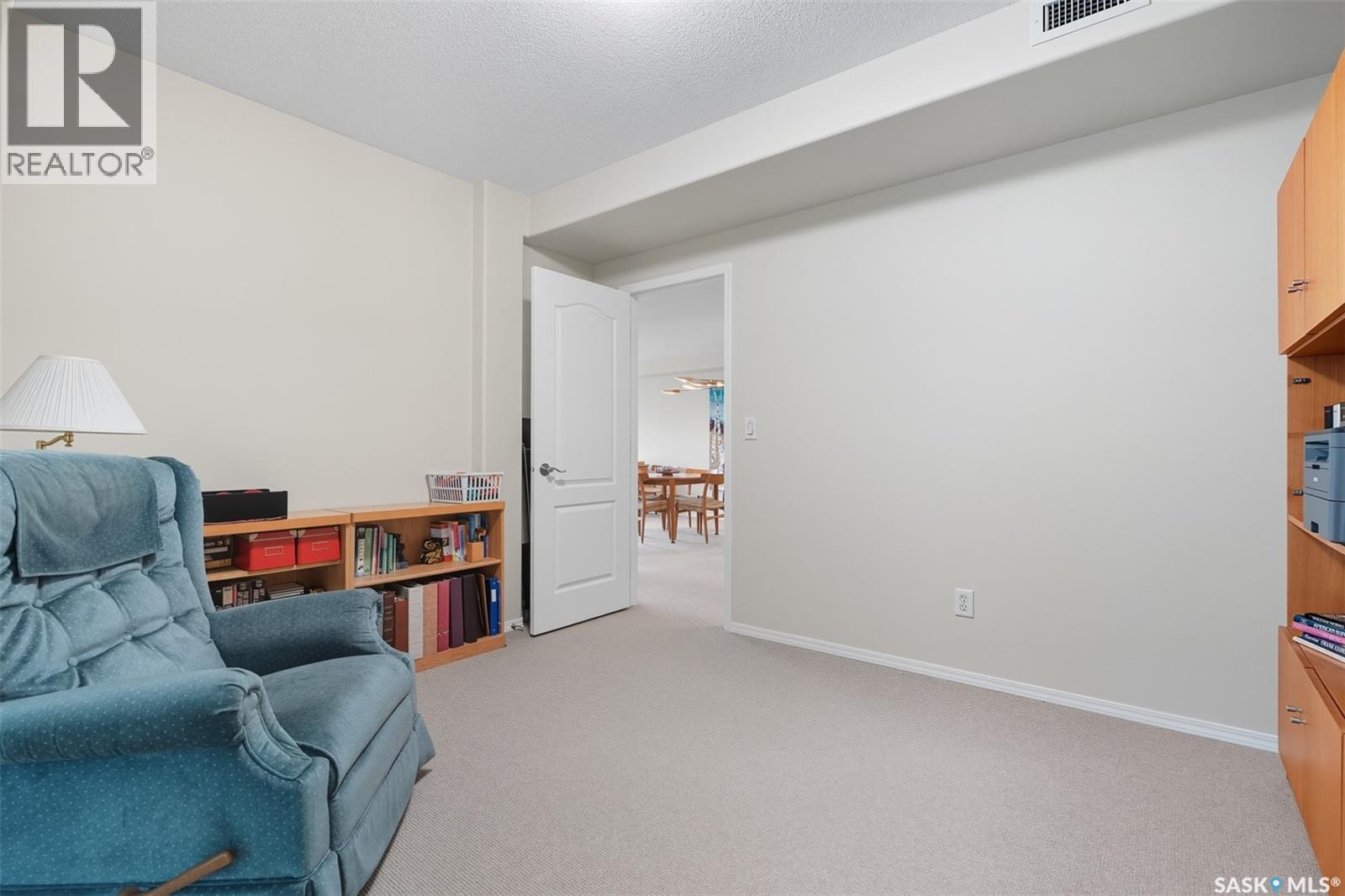 $895 MonthlyGorgeous river and downtown views are featured in this spacious 1,593 square foot THIRD FLOOR CORNER UNIT in the prestigious RIVERWALK condo building. Unit is 5th largest of 36 in RIVERWALK featuring 2 bedrooms PLUS large den (Or potential 3rd bedroom) and largest unit offered on MLS since 2003! This premiere location in Saskatoon is perched above Saskatchewan Crescent East and immediately adjacent to the Meewasin Valley park and trail system, and within walking distance of the downtown, University and the trendy Broadway shopping district. This quality Remai built building is of concrete and steel construction, and has stone and concrete tile exterior siding, triple pane windows and two elevators. Sweeping west to northwest river views from the balcony and from the open concept living, dining and kitchen areas, plus five additional large windows to the south. Roomy living and dining areas, and a spacious primary bedroom with ensuite bathroom featuring 5’ Jacuzzi soaker tub and separate shower. There is a second bedroom, an oversize den(or 3rd bedroom), and room for a freezer in the laundry room. Other notable features include solid maple framed kitchen cabinets, gas range, newer programmable thermostat with separate thermostat for the bedrooms, upgraded ceiling finish in the living areas, recently painted walls, ceilings, doors and trim, new toilets, and updated brushed nickel hardware and light fixtures. There is a Phantom screen to the balcony, and the balcony deck has been upgraded to an easy-to-clean urethane system with aggregate and clear finish top coats. There are TWO UNDERGROUND PARKING STALLS and two storage units in the heated garage. Building amenities include a well-equipped exercise room, meeting room, craft room and plenty of visitor parking. NOTE:Offers will be viewed at Monday OCT 27th at 5:00pm As per the Seller’s direction, all offers will be presented on 10/27/2025 5:00PM. (id:34297)