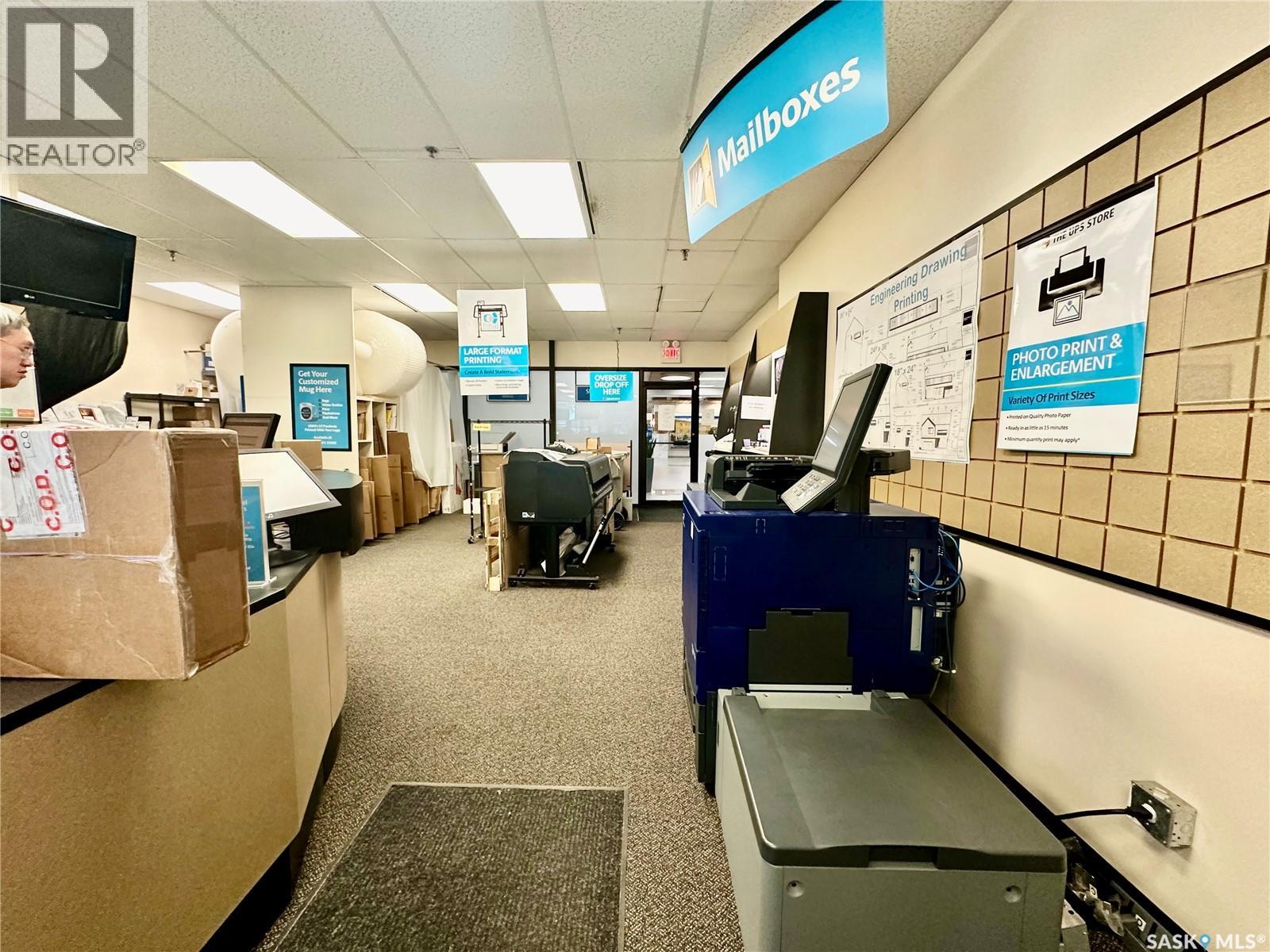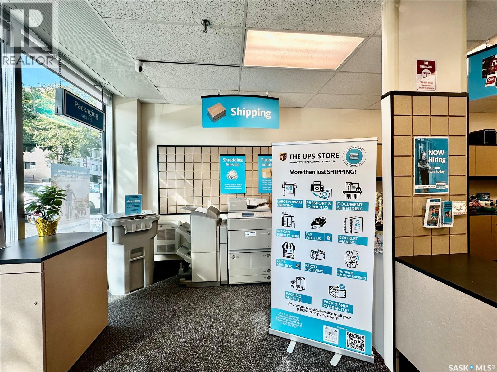 The UPS Store (franchise business) at Prime Downtown Saskatoon Location – For Sale. An excellent opportunity to own a well-established - The UPS Store franchise located in a prime downtown area, surrounded by numerous offices and business enterprises. This location has a proven track record of strong and steady revenue growth from consumers and business enterprises across the city. In addition to being a designed UPS shipping and parcel drop-off & pick-up center, the store is also a print center with all computer system upgraded this year (2025). Offering a wide range of printing services from normal documents printing to wide-format printing services for banners, posters, photos and other custom printings. Being a one-stop shop, this store also offer services like mailbox rental, passport / ID photo taking, shredding and many more business services. The attractive lease terms make it an appealing investment with low overhead and high growth potential. A unique highlight of this store - it is an appointed official training center for The UPS Store Saskatchewan franchisees, by The UPS Store Canada headquarter. This added feature not only enhances the store's prestige but also provides further revenue opportunities. This business is easy to manage and offers significant potential for future growth. Possible for SINP. Don't miss this opportunity to own a thriving franchise in a bustling downtown Saskatoon location! (id:34297)