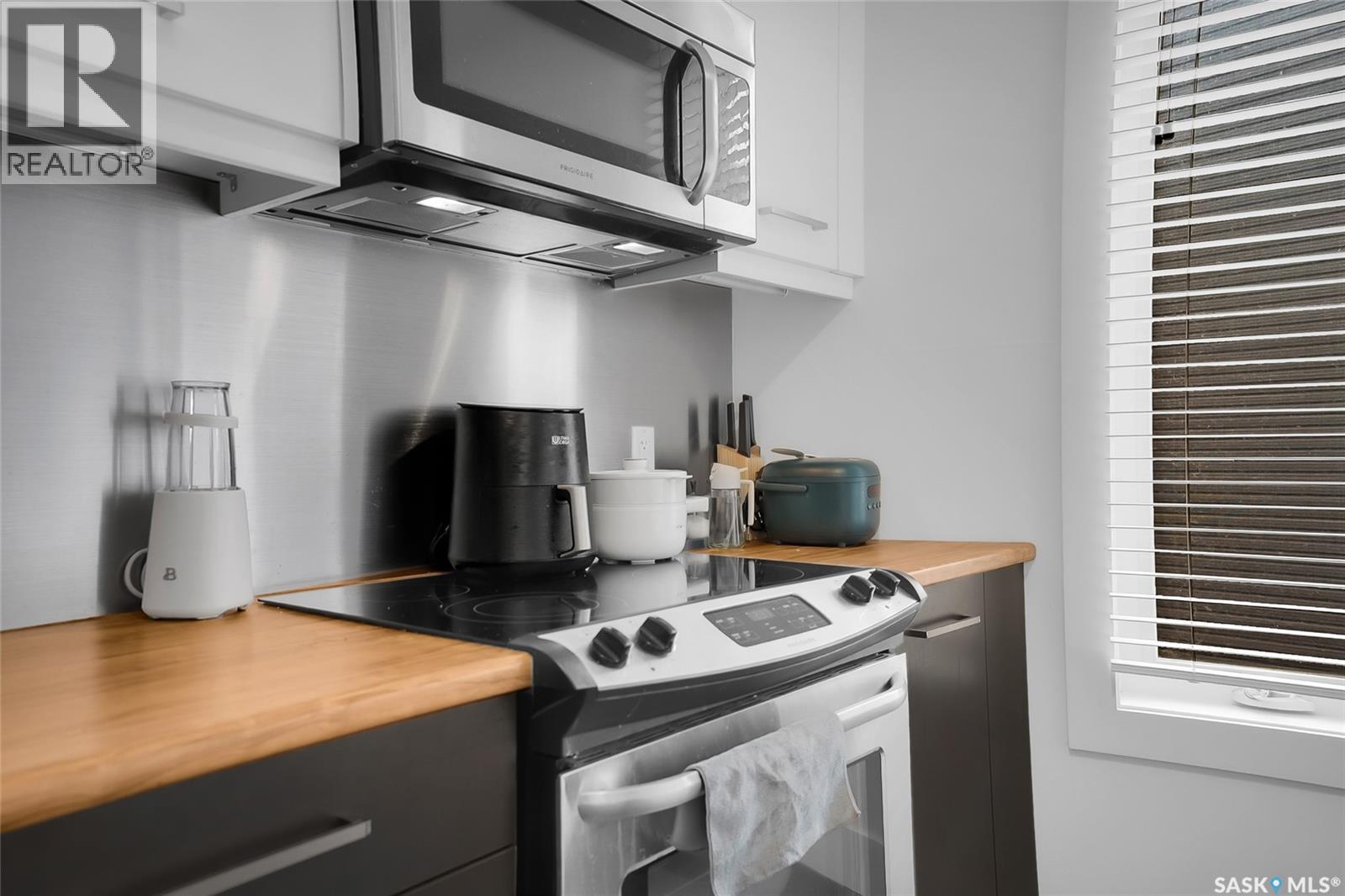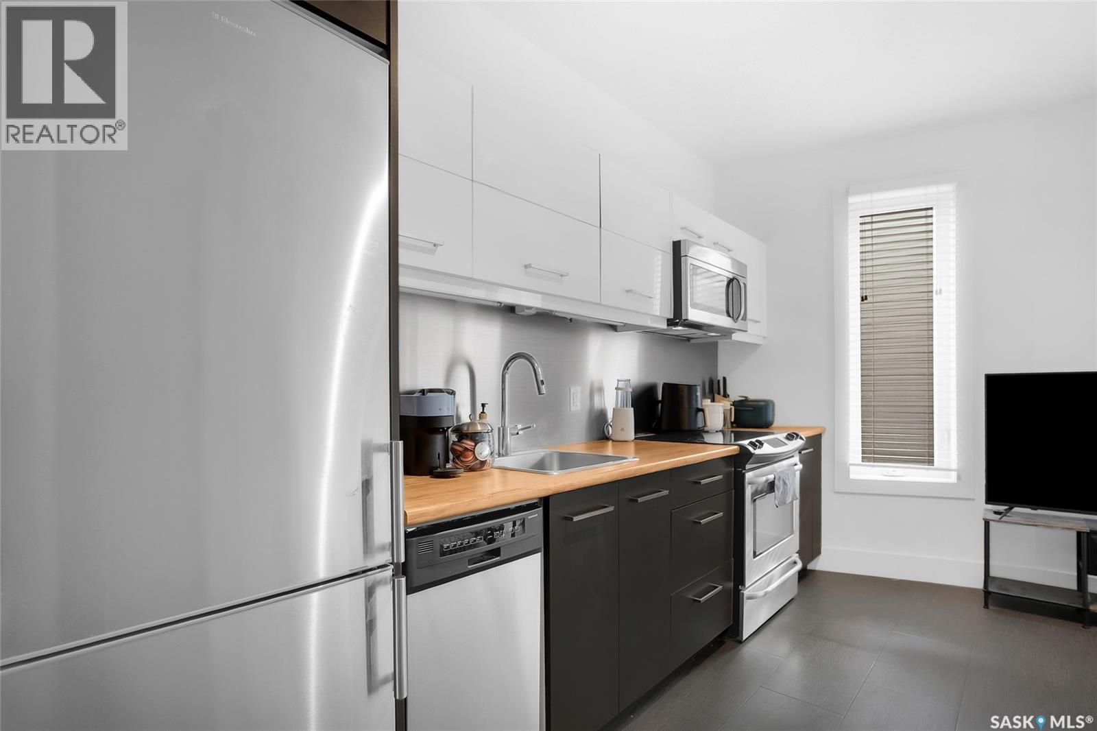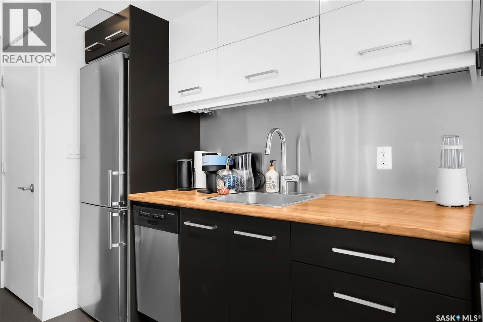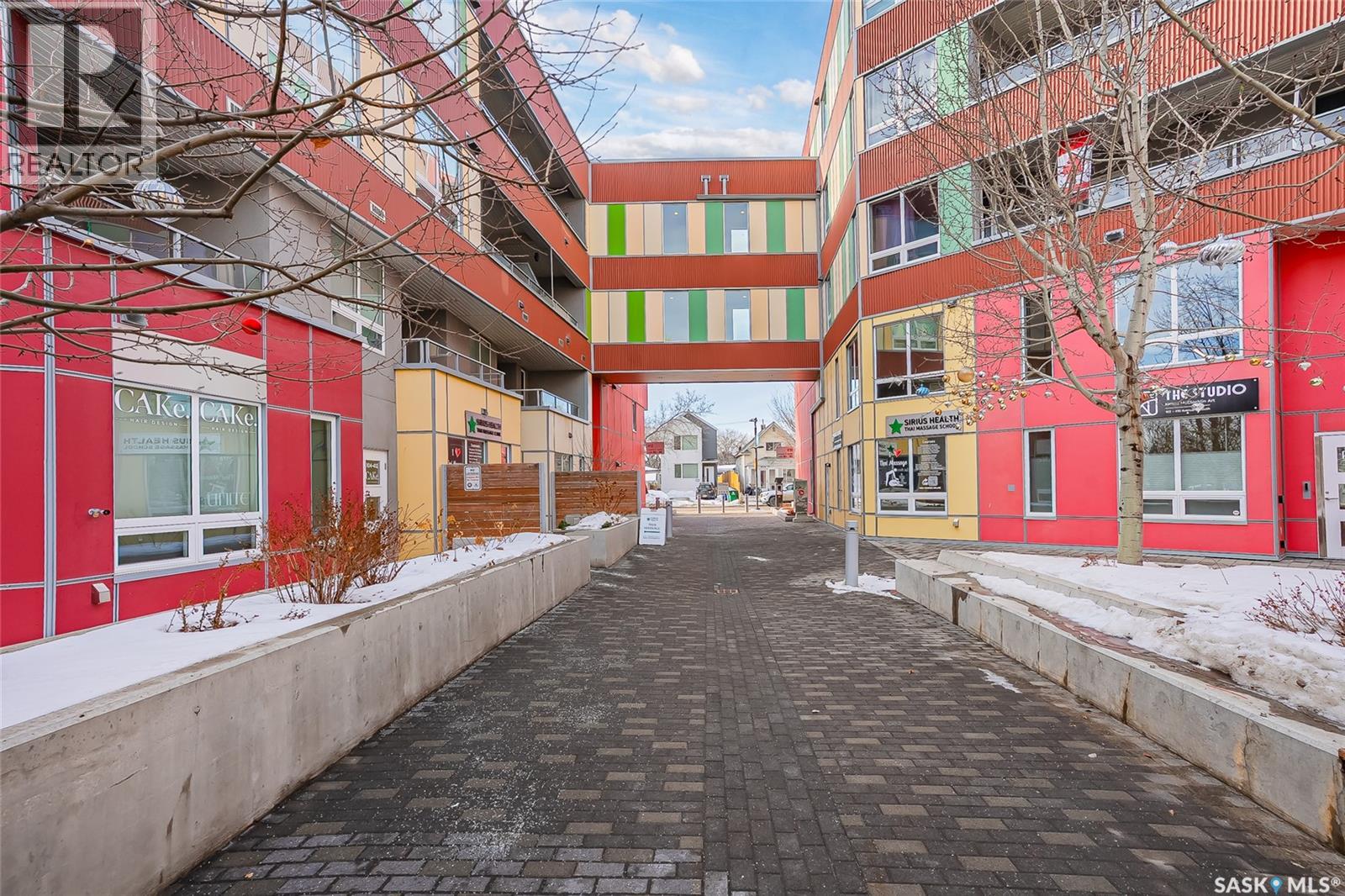 $230 MonthlyWhen you buy in The Banks, you’re not just purchasing a condo — you’re stepping into a lifestyle. A vibrant, walkable, community-driven way of living where minimalism meets convenience, and everything you need is just outside your door. Welcome to #325 – 404 Ave C North. A stylish studio designed for modern living, complete with underground parking and offered at an attractive $189,900. The true magic here is the setting. Step outside into a beautifully designed courtyard surrounded by local coffee shops, farmers’ markets, salons, massage studios, and boutique services. Grab your morning latte downstairs, meet friends for an evening drink, or take a short stroll to River Landing and the river trails. This is urban Saskatoon living at its best. Inside, the space is thoughtfully designed to maximize function without sacrificing style. The fully equipped kitchen includes fridge, stove, dishwasher, and microwave hood fan. The multi-functional den with dual sliding doors creates flexibility for a bedroom, office, or guest space. A full four-piece bathroom and in-suite laundry add everyday convenience. Whether you're a first-time buyer embracing a simplified lifestyle, a student wanting walkability, or an investor seeking a high-demand property, this unit checks the boxes. The seller reports zero vacancy and consistent demand — plus there is excellent short-term rental potential. The underground parking stall is the cherry on top, offering safety and comfort year-round, along with a dedicated storage unit. And as an owner, you’ll enjoy access to multiple rooftop patios — ideal for relaxing evenings, entertaining friends, or soaking in the city skyline. Students. Investors. First-time buyers. If you’ve been waiting for an opportunity to live where energy, community, and convenience meet — this is it. (id:34297)
