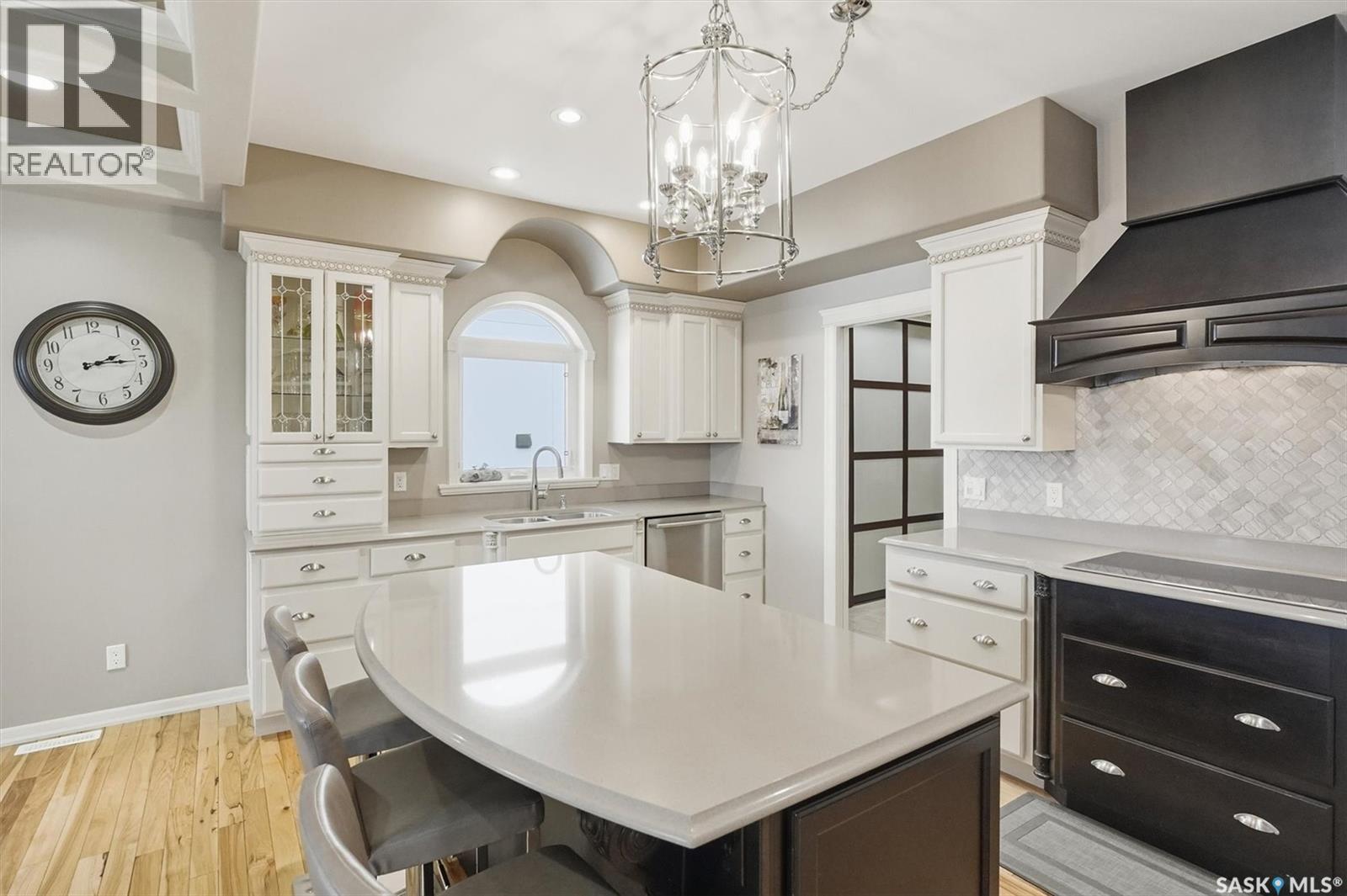 Welcome to 327 Hastings Lane, a gorgeous 2112 sq ft modified walkout bungalow in Rosewood. The main floor is impressive as you are greeted with the luxurious finishes of this warm and inviting home making your way to an open concept kitchen, dining, and living area filled with amazing designer detail. From the dining area, you can access a covered deck w/ waterproof floor, auto sun screen system, natural gas bbq outlets and absolutely stunning views. The main floor also includes a front bedroom/office, laundry w/ cabinets/sink, 2-pce bath, walkthrough pantry/coat rooms, along with an owner’s suite w/ walk in closet and 5-pce bath including dual sinks and oversized jacuzzi ideal for moments of relaxation. Transitioning to the second level is a large, bright bedroom with 4-pce bath and private balcony ideal for guests or family. The lower level is complete with 2 bedrooms, a 3-pce bath, a generous sized family/rec room, storage areas, and a giant wet bar with cabinets, fridge, sink, and dishwasher for an assortment of uses. The basement features an in-floor heating system for that extra bit of comfort when hosting gatherings with friends/family. From the lower level you will be excited to see a fully enclosed multi use outdoor kitchen/entertainment space with all you need for barbecuing year round. Glancing into the gorgeous rear yard, you will notice a brick patio/fire pit area, custom retaining wall, maintenance free vinyl fence, manicured yard w/ automatic sprinklers and uninterrupted park views. Saving the best for last, 2 heated garages! An attached garage (26’x 21’) and a detached (19’ x 25’) garage w/ 12’ x 11’ garage door adjacent to an RV parking space. Includes kitchen/laundry (2 fridges, 2 dishwashers, stove, microwave, hood fan, washer, dryer), gas/electric fireplaces, central vacuum (fully equipped to attached garage), window coverings, and central AC. This prime location has perfect access to walking paths and several nearby amenities. (id:34297)