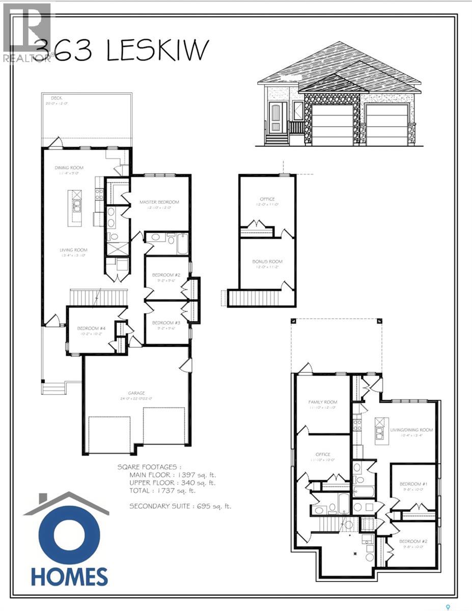 Welcome to 363 Leskiw Bend in Saskatoon’s vibrant Rosewood community – a 1737 sq. ft. bungalow built by Ohomes that doesn’t just think outside the box, it redesigned the box entirely. With part of the attic cleverly converted into living space, this “bungalow” has a surprise upstairs – because who doesn’t love a good plot twist? On the main floor, you’ll find 4 bedrooms, including a primary suite with a 4-piece ensuite, plus three more bedrooms and another full bath. The layout flows smoothly from foyer to living room to kitchen, and finally into the dining area with access to a future deck – perfect for BBQs, or just pretending you’re a grill master. Upstairs, you’ll discover a bonus room and a 5th bedroom, giving this home bungalow convenience with two-storey flair. The walkout basement is brimming with potential: one half could expand the main dwelling with a 6th bedroom, flex/office, and 3rd bath, while the other half is designed for a legal 2-bedroom suite with separate entrance, laundry, and living room – the perfect mortgage helper (or a great place to stash the in-laws). Backing onto green space that connects to Glenn H. Penner Park and nearby schools, this home also comes with peace of mind thanks to the Progressive New Home Warranty. With smart design, income potential, and a location that checks all the boxes, this is more than a house – it’s an Ohomes original. (id:34297)