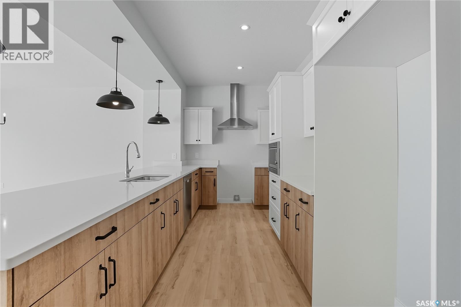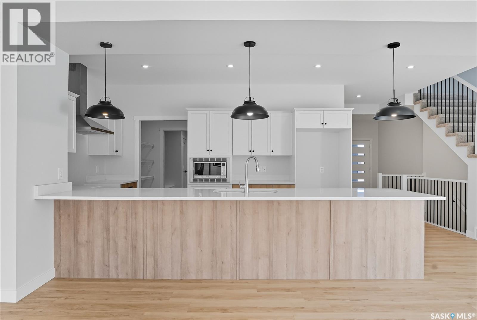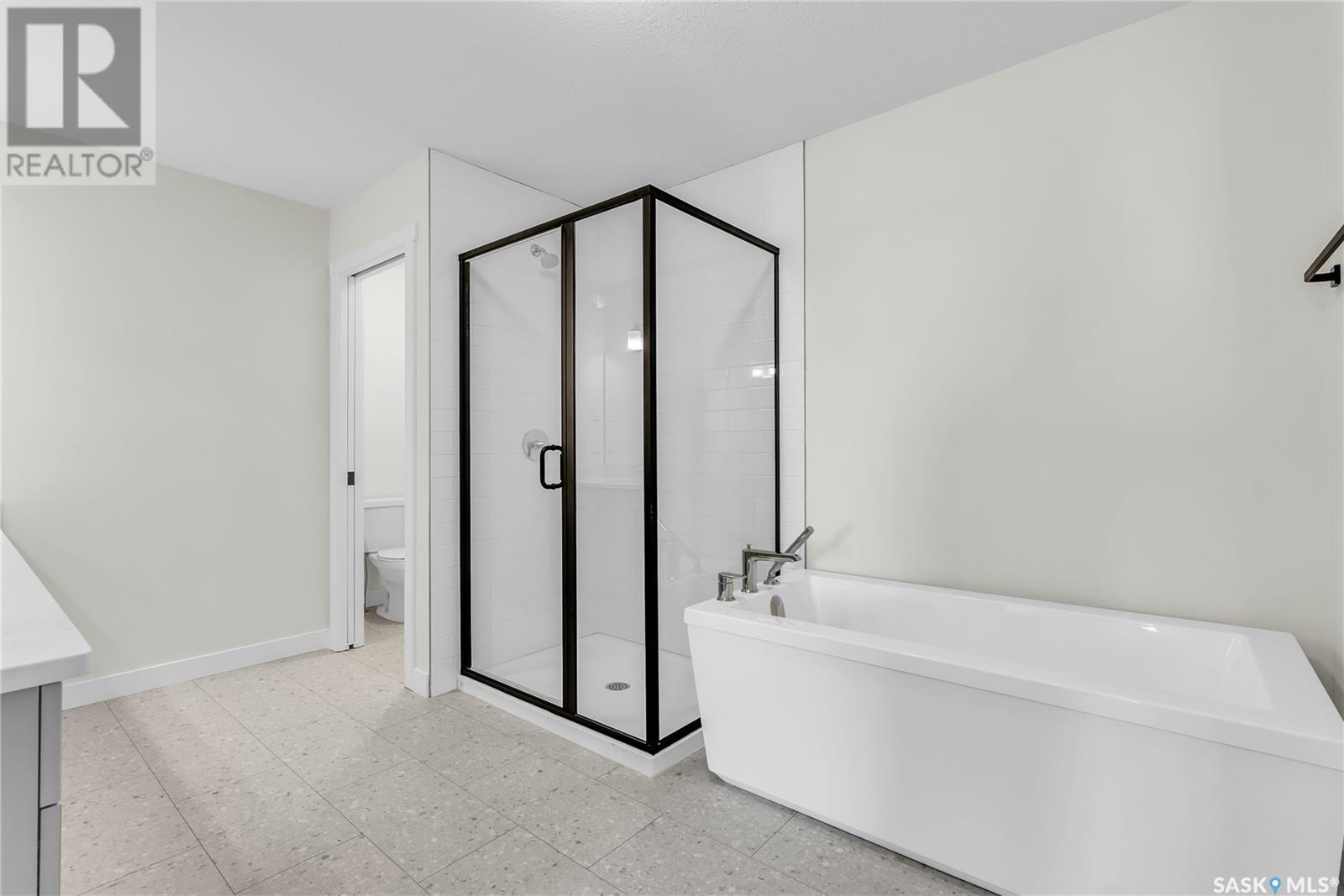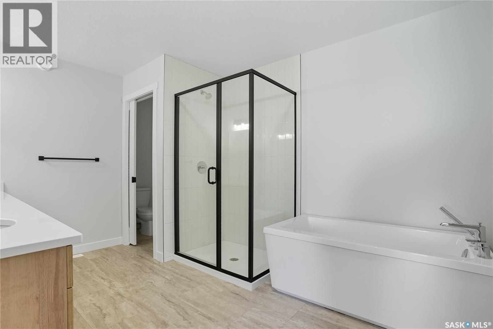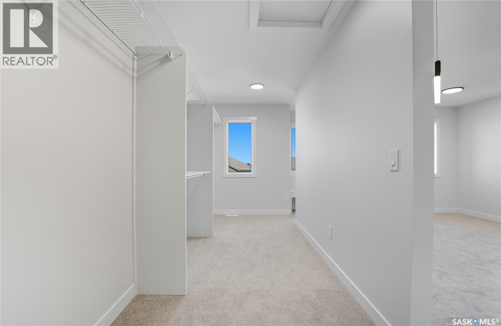 Introducing the exquisite Nova model by North Prairie Developments Ltd. This stunning two-story residence boasts a spacious layout spanning 2346 square feet and comes complete with a double attached garage and an integrated Smart Home Package for modern living convenience. Step into the main floor, where you'll be greeted by a large mudroom featuring a walk-in closet, ensuring a clutter-free entryway. The mudroom seamlessly flows into a walkthrough pantry, leading you into the contemporary kitchen, a spacious dining area, and an inviting living room. This open-concept design creates a warm and welcoming atmosphere, perfect for entertaining family and friends. Adding to the convenience of this level is a well-placed half bath. As you ascend to the second floor, you'll discover the epitome of luxury in the primary bedroom. Bathed in abundant natural light, this retreat boasts a massive walk-in closet and an ensuite bathroom equipped with a 5-piece suite, providing a spa-like experience in the comfort of your own home. Additionally, there are two more bedrooms, a well-appointed 4-piece bathroom, a convenient laundry room, and a bonus room on this level, offering ample space for everyone's needs. The Nova model also offers the option for basement development, extending the living space by an impressive 1063 square feet. In the basement, you'll find another bedroom, a bathroom, a den, and a living space, providing flexibility and versatility for various lifestyle preferences. All North Prairie homes are covered under the Saskatchewan Home Warranty program. PST & GST included in the purchase price with a rebate to the builder. Errors and omissions excluded. Prices, plans, promotions, and specifications subject to change without notice. (id:34297)