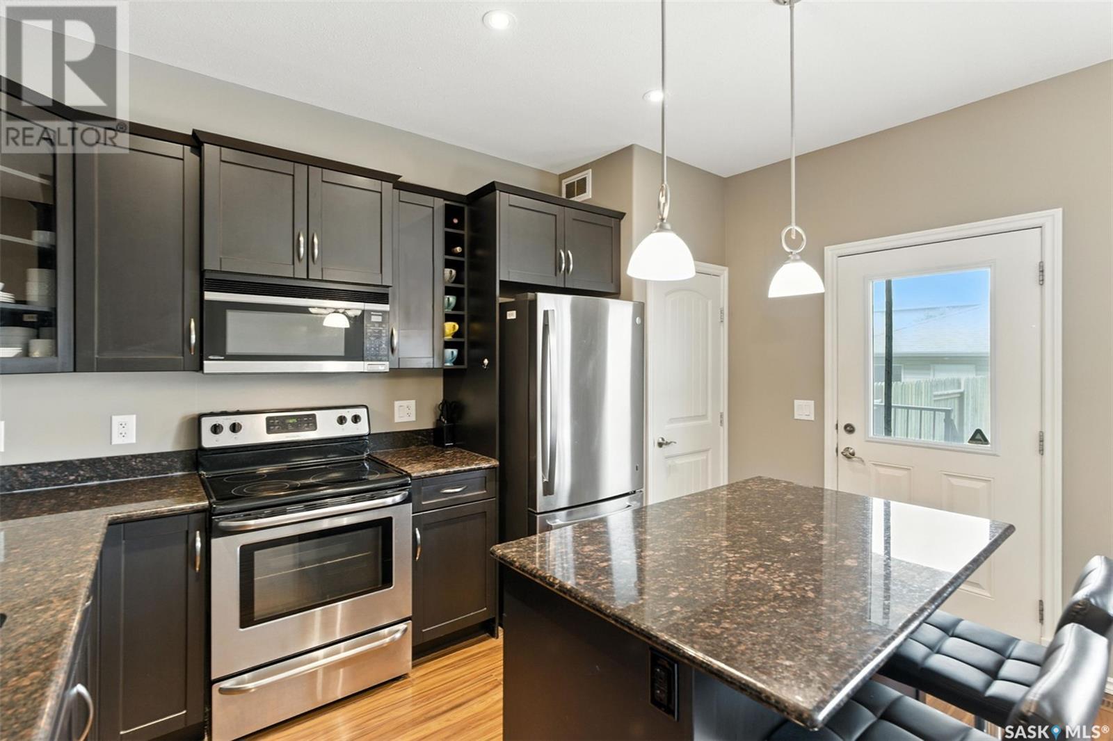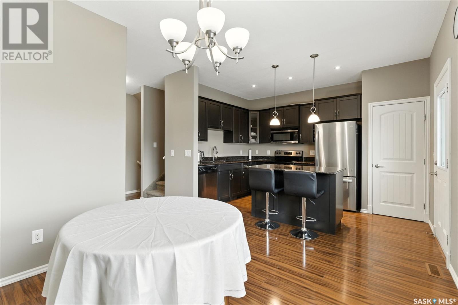 $334 MonthlyWelcome to 380 Willowgrove Lane—a beautifully crafted 4-bedroom, 4-bath townhouse built by Riverbend Developments, offering the perfect blend of quality and luxury. Ideally located just one block from Willowgrove Square and two elementary schools, with close proximity to St. Joseph and Centennial high schools, University Heights shopping, and all essential amenities. The home features an attractive exterior with stone and vinyl siding, a charming front veranda, and a private fenced backyard with a spacious covered deck. Inside, you’ll find 9-foot ceilings and oversized windows that fill the main floor with natural light. The open-concept living, kitchen, and dining areas showcase deluxe laminate flooring, maple cabinetry with soft-close doors, granite countertops, a large island with seating, and a generous walk-in pantry. Upstairs offers three well-appointed bedrooms and two bathrooms, including a primary suite with granite countertops and a private ensuite. The professionally finished basement includes a large family/entertainment area, a stylish 3-piece bathroom, storage space, and a bright guest retreat. Additional highlights include a humidifier, recently upgraded toilets, new heat exchanger for the furnace , a detached garage, and a rear single-car driveway. This home shows 10/10—schedule your private showing today! (id:34297)