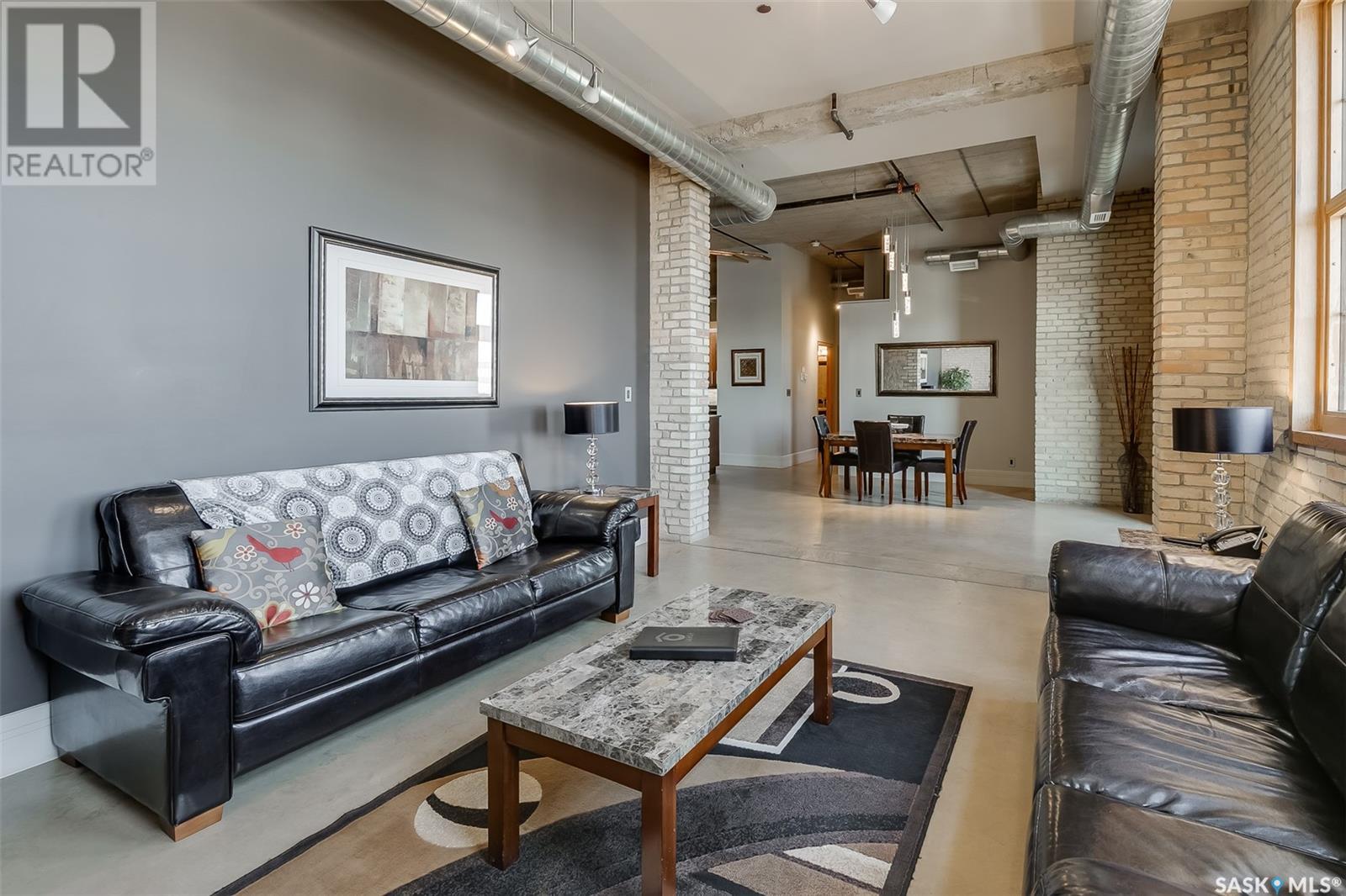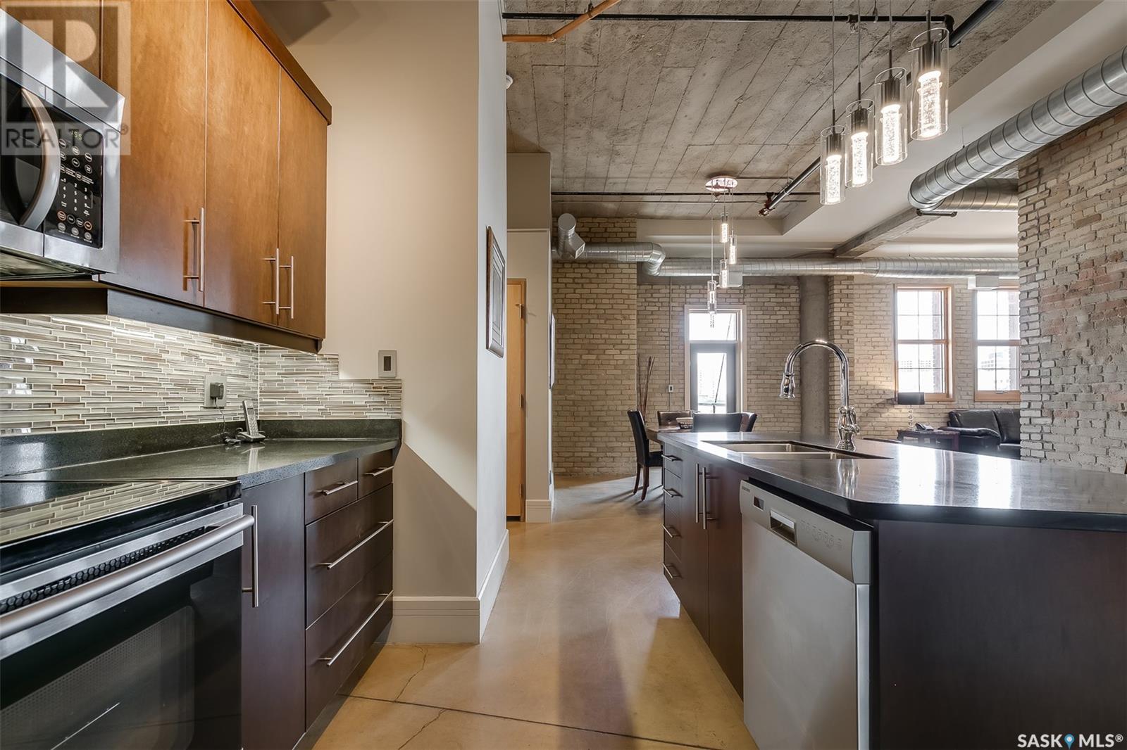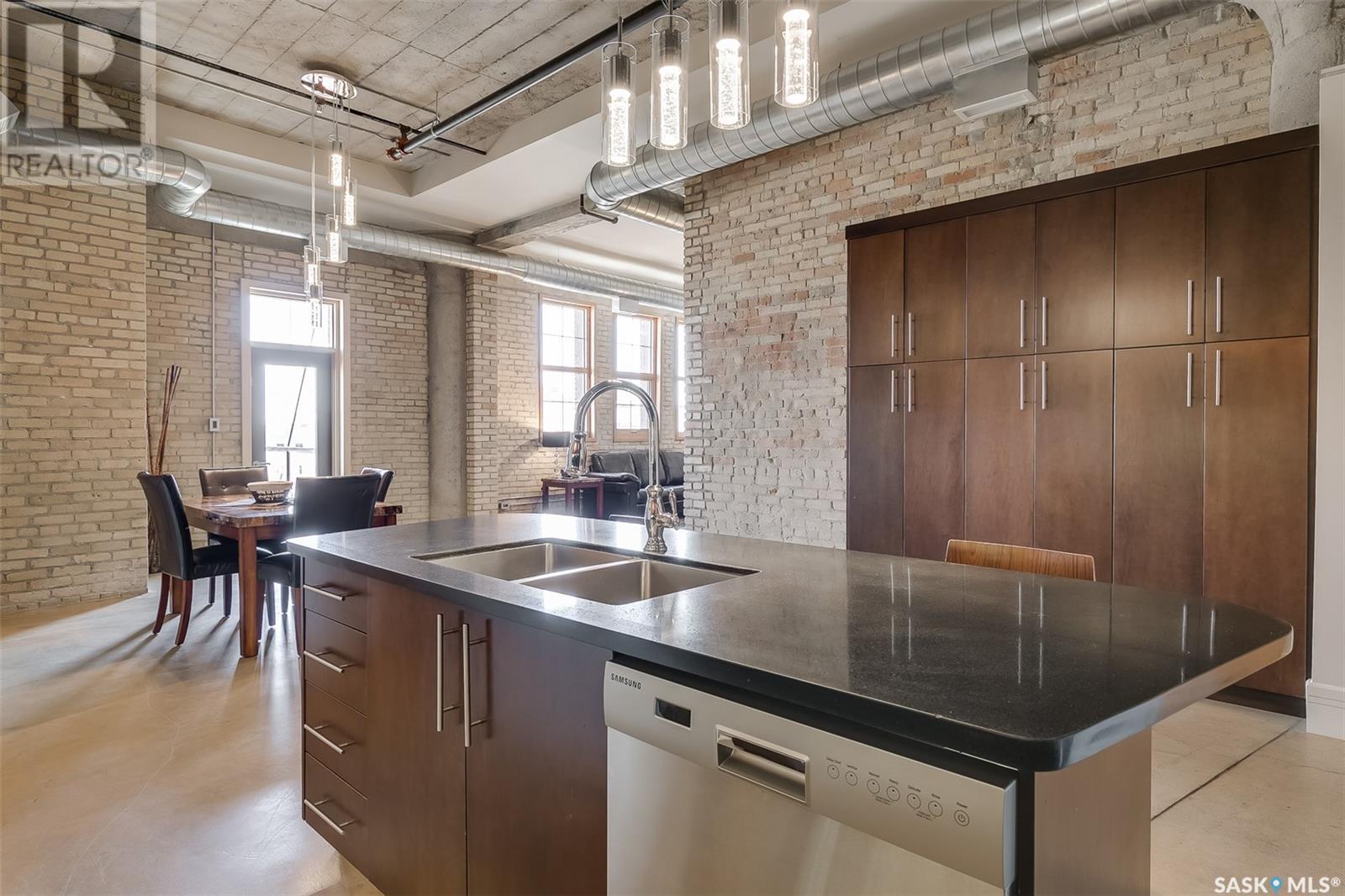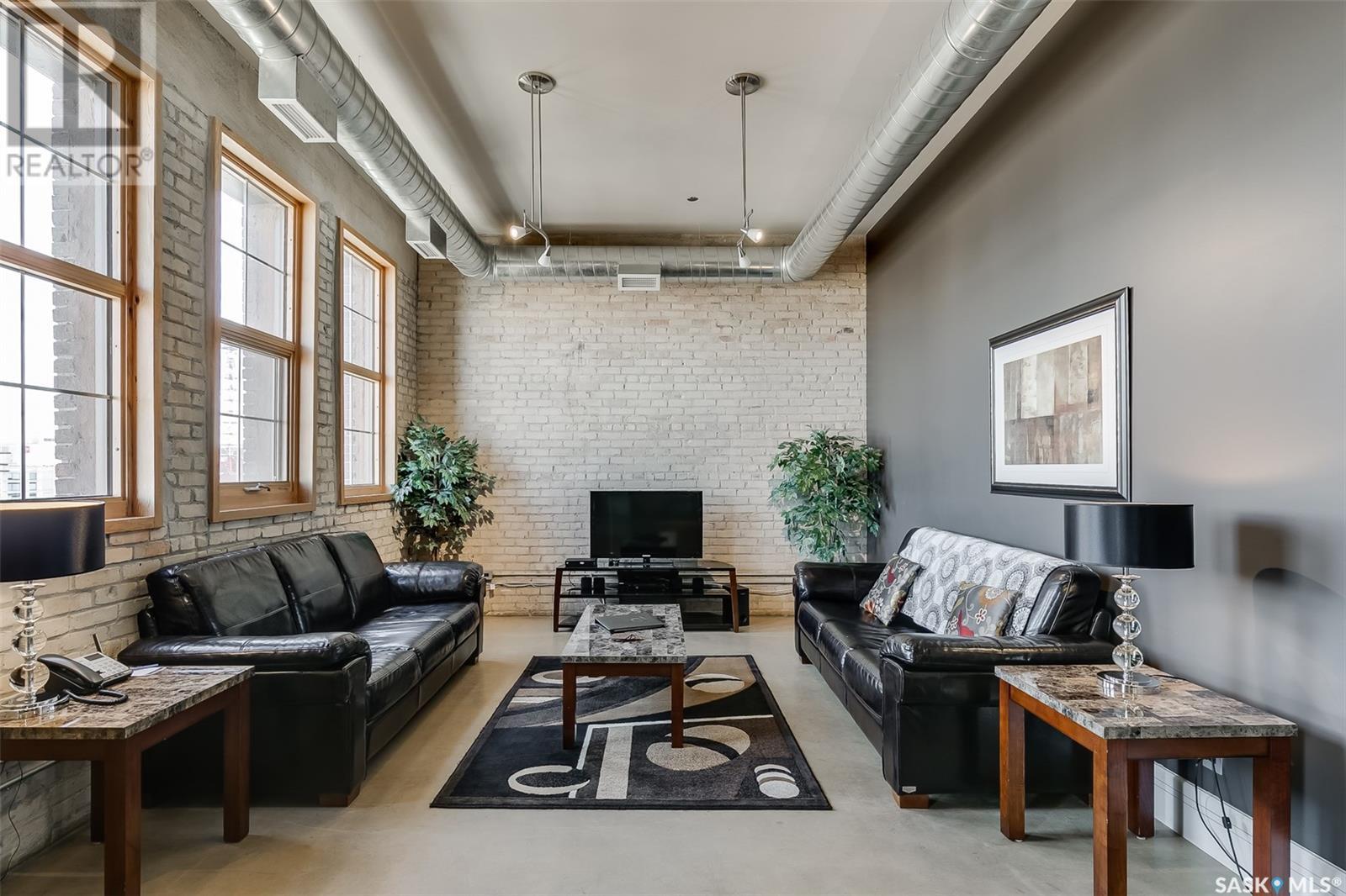 $1,054 MonthlyAn Icon of Strength and Style in the Heart of Downtown They say some buildings are "bomb-proof"—and this one almost literally is. Welcome to the Rumley Distinctive Lofts, a building steeped in history and built to last. Originally constructed in 1912 as a farm implement factory and showroom, this impressive structure of heavy brick, concrete, and steel was once designated as one of only six buildings in Canada suitable for use as an armoury. Its solid bones are matched by soaring ceilings, striking columns, and thick concrete floors that speak to its industrial past. Now thoughtfully transformed into architecturally designed executive lofts, the Rumley offers an exceptional blend of heritage character and modern luxury. This corner unit, #401, is one of the finest loft homes available—featuring rare east and north-facing exposure that fills the space with natural light throughout the day. Step out onto your private, east-facing balcony and enjoy sweeping downtown views—this is the only balcony with this orientation on the 4th floor, offering true exclusivity. Start your mornings with sunrise views and enjoy the energy of city living, just steps from all the best Saskatoon has to offer. The Rumley Distinctive Lofts are a rare example of what happens when history, craftsmanship, and contemporary design come together—something that simply can't be replicated. (id:34297)