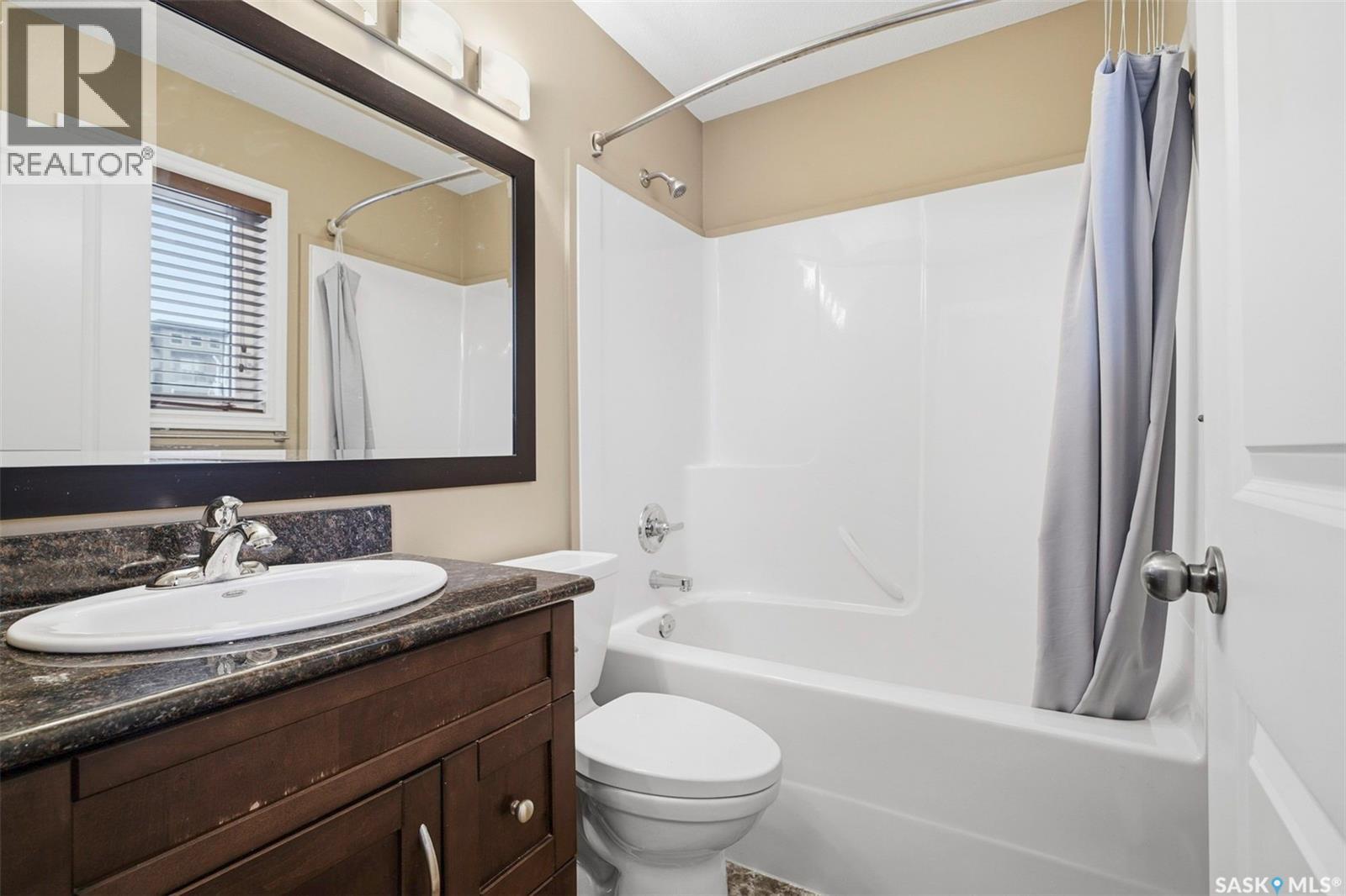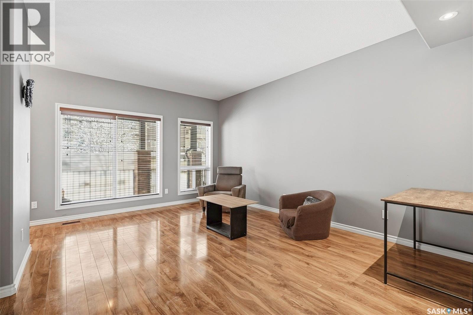$409 MonthlyWelcome to 110 Willowgrove Crescent # 402—a beautifully crafted 3-bedroom, 3-bath townhouse built by Riverbend Developments, offering the perfect blend of quality and luxury. Ideally located just one block from Willowgrove Square and two elementary schools, with close proximity to St. Joseph and Centennial high schools, University Heights shopping, and all essential amenities. The home features an attractive exterior with stone and vinyl siding, a charming front veranda, and a private fenced backyard with a spacious covered deck. Inside, you’ll find 9-foot ceilings and oversized windows that fill the main floor with natural light. The open-concept living, kitchen, and dining areas showcase deluxe laminate flooring, maple cabinetry with soft-close doors, granite countertops, a large island with seating, and a generous walk-in pantry. Upstairs offers three well-appointed bedrooms and two bathrooms, including a primary suite with granite countertops and a private ensuite. The basement is open for further development. Additional highlights include central AC, detached garage, and a rear single-car driveway. This home shows well—schedule your private showing today! (id:34297)