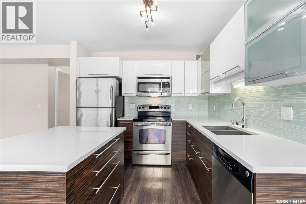 $451 MonthlyWelcome to #403 - 410 Hunter Road, a great three bedroom, three bathroom townhouse that offers a perfect blend of modern touches and practical convenience. The heart of this home is the stylish kitchen, boasting a central island, quartz countertops, four stainless steel appliances, modern tile and lighting, and clever built-in cupboard features. The open-concept dining and living room area flows seamlessly to a private patio, ideal for relaxing or entertaining. Upstairs, the master suite is bathed in natural light and features a spacious walk-in closet and a four-piece ensuite. The fully developed basement offers a cozy family room complete with a mini-bar, alongside a convenient three-piece bathroom and laundry area. With a single-car attached garage and a location that can't be beat, this townhouse is perfect for first-time buyers, university students, or those looking to downsize. Enjoy the convenience of being steps from a bus stop, shopping centers, parks, and essential professional services, with downtown and the University of Saskatchewan just a short 10-minute drive away. (id:34297)