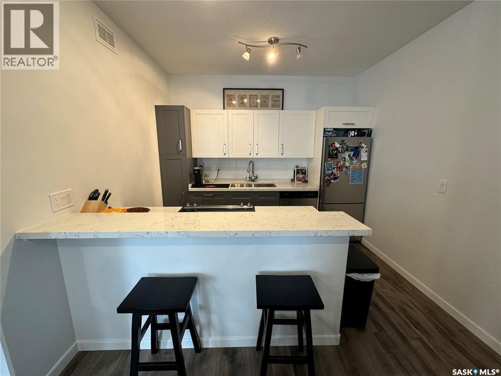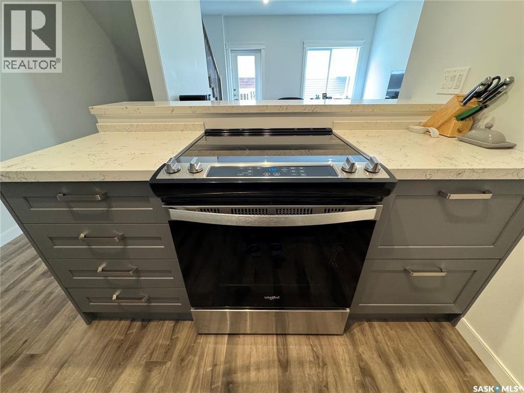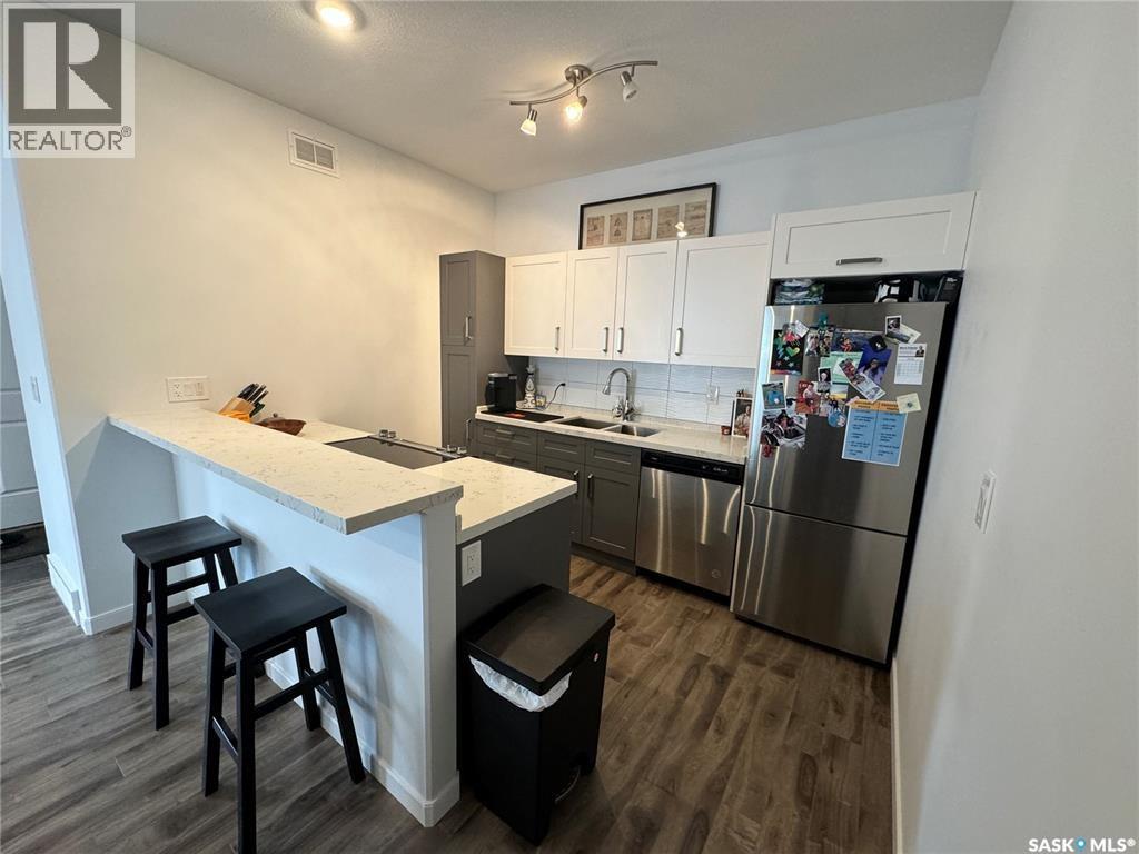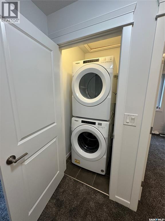 $208.33 MonthlyClean, Modern Townhouse-Style Condo Offering Exceptional Value Welcome to this beautifully finished townhouse-style condo with quick access to Riversdale, the South Saskatchewan River, and minutes from Downtown. Combining modern design, functionality, and outstanding value, this home is perfect for first-time buyers, professionals, or investors. The main floor showcases a stylish two-tone kitchen with soft-close cabinetry, white quartz countertops throughout, stainless steel appliances, and energy-efficient recessed LED lighting. Premium Chestnut millwork adds warmth and character to the custom staircase railings. Upstairs features two spacious bedrooms, including a large primary with a walk-in closet and custom organizer, along with a contemporary three-piece bathroom and convenient stacked washer and dryer. The basement is neatly roughed-in and ready for future development, making it easy to add additional living space and a third bathroom leaving room for even more future opportunity to build equity and enhance long-term value. This is a fantastic opportunity to own a move-in ready home in a very central location of Saskatoon. (id:34297)