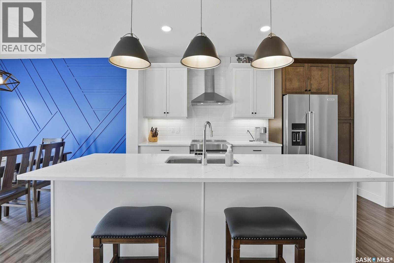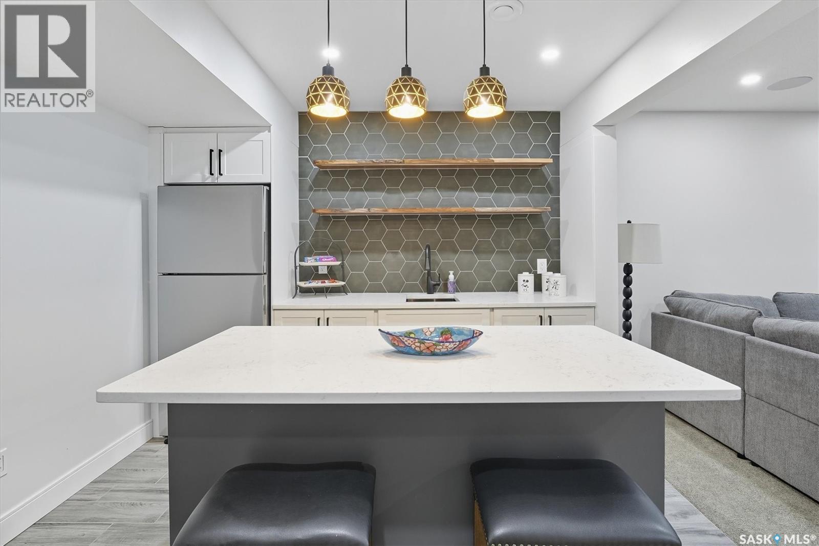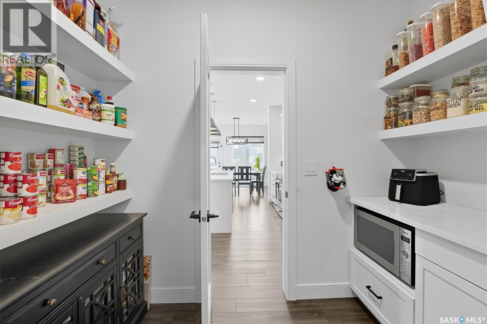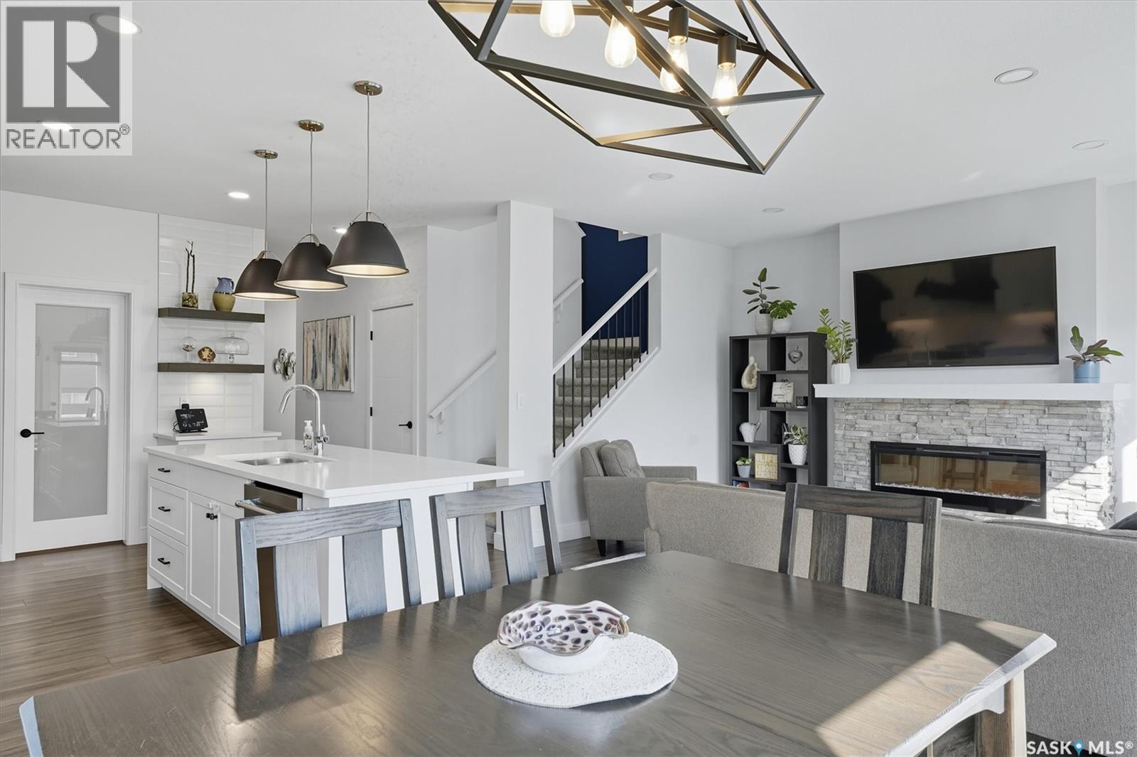 Welcome to this stunning home in the heart of Brighton, offering style, comfort, and thoughtful details throughout. Step inside to a spacious front entry with a large front closet, a handy two-piece bath, and direct access to the heated garage. From the entryway, you’ll find a sliding door to the walk-through pantry with tons of storage and counterspace, leading to a beautiful yet highly functional kitchen with quartz countertops, shaker-style cabinetry with modern black hardware, stainless steel appliances including a convection oven with induction cooktop, and a large island with double undermount sink, seating and statement pendant lighting. The kitchen opens to a bright, cozy living room with a fireplace and mantle, and a spacious dining area with a stunning feature wall, large windows and direct access to the deck for easy outdoor entertaining. There is an office/flex space down the hall. Upstairs, you’ll find 4 bedrooms, a large bonus room, a laundry room with extra storage, and a shared 4pc bath. The primary suite features a gorgeous feature wall, large windows, an impressive ensuite with dual sinks, corner tub, glass-door shower, toilet closet, and a generous walk-in closet. A second upstairs bedroom also includes a walk-in closet as well. The basement is made for entertaining with a striking wet bar featuring quartz counters, two-tone cabinetry, live-edge floating shelves with custom lighting, a hidden pull-out wine rack, and secret storage behind a bookcase. Enjoy movie nights in the family room with in-ceiling surround sound and a cozy fireplace. There is a 5th bedroom and another full bath down the hall. Outside, the yard is fully landscaped with fruit trees and shrubs, a patio with pergola, sandbox area, underground sprinklers with drip irrigation, and a custom pathway around the home. This home truly blends beauty, function, and location—walking distance to Brighton’s many amenities and easy commutes in and out of the area. (id:34297)