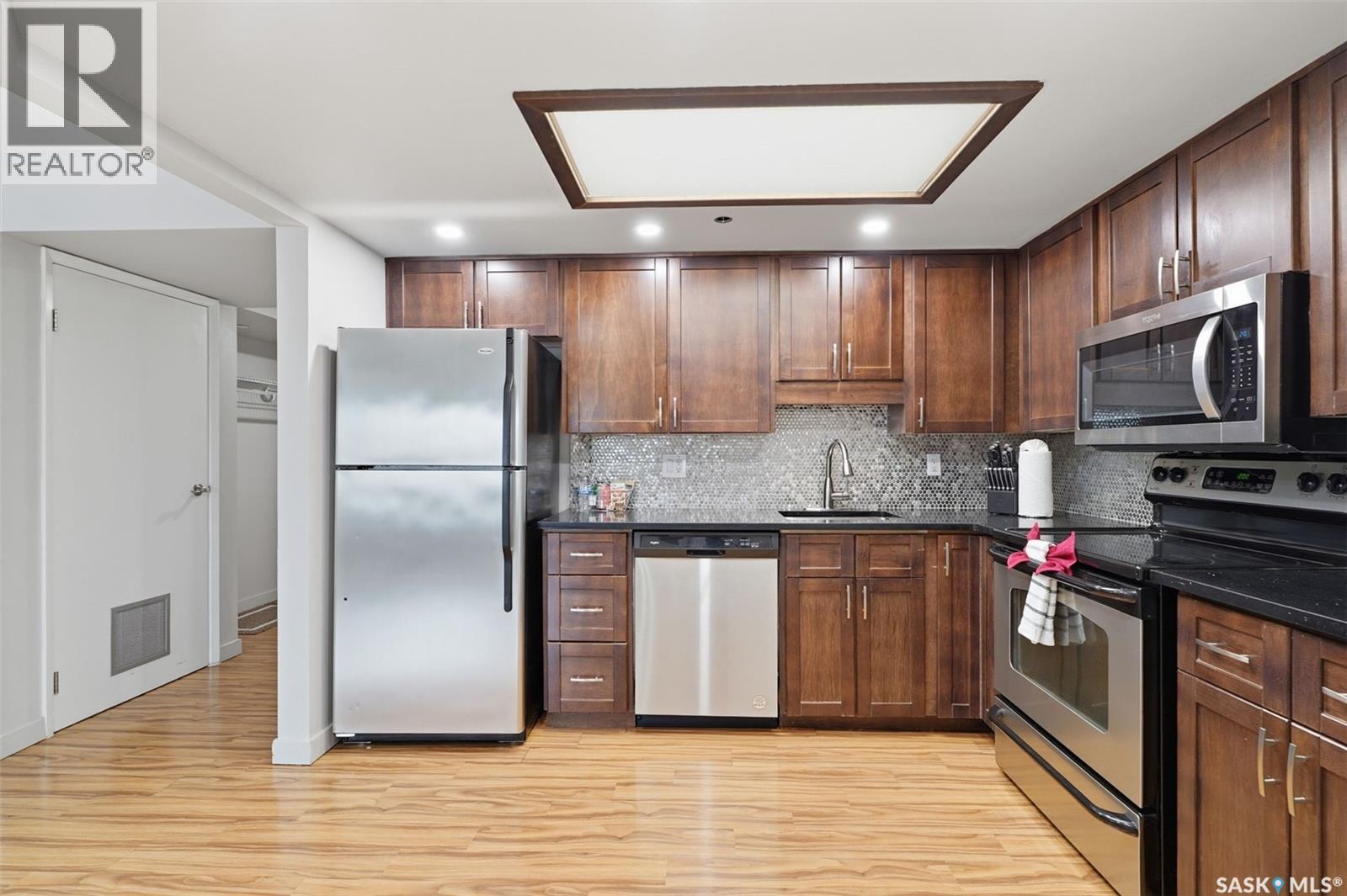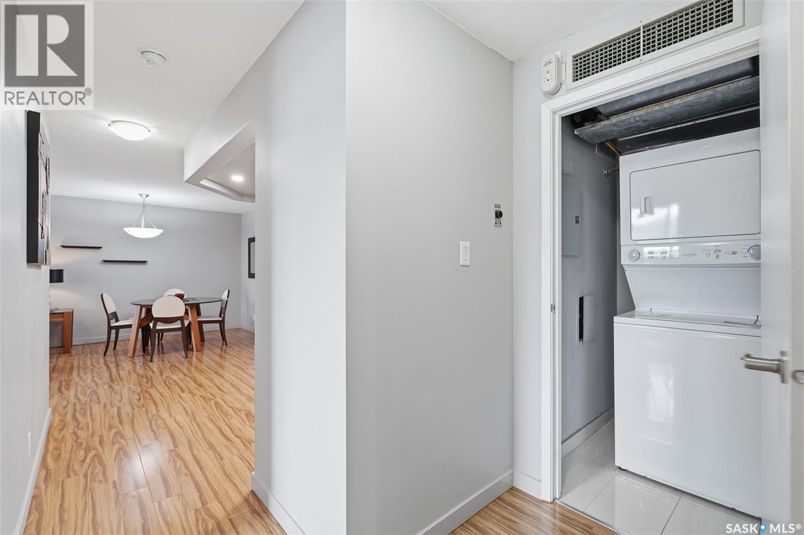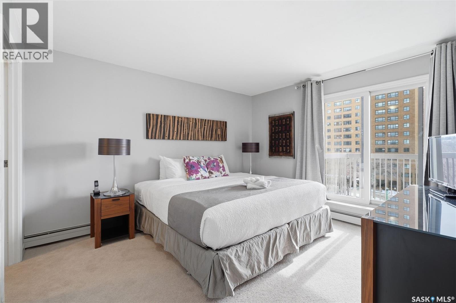 $520 MonthlyExceptional city views with a peek of the river await from the 5th floor of Hallmark Place in the heart of Saskatoon! This well-maintained 970 sq. ft. condo offers 2 bedrooms and 1 full bathroom, all in excellent condition with a bright, open-concept layout. The kitchen overlooks the spacious living area—perfect for casual dining or entertaining. Both bedrooms are generously sized, with the spacious primary suite featuring a large walk-in closet. Freshly painted with new carpet, this move-in-ready unit also includes in-suite laundry and all appliances. Step out onto your private balcony to enjoy city skyline views along with a glimpse of the river—an ideal setting for morning coffee or relaxing evenings. Hallmark Place is a well-managed concrete building offering fantastic amenities, including an amenities room, exercise area, squash court, outdoor patio, and high-speed elevators. There’s even a convenient store right at the entrance for added everyday convenience. While this unit does not include its own parking stall however the seller has secured underground rental parking if there is interest. Don’t miss your opportunity to enjoy downtown living with views—call your REALTOR® today to book your private showing! (id:34297)