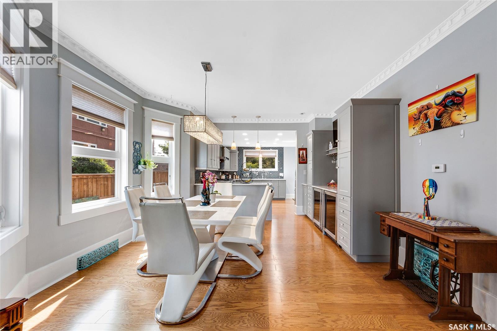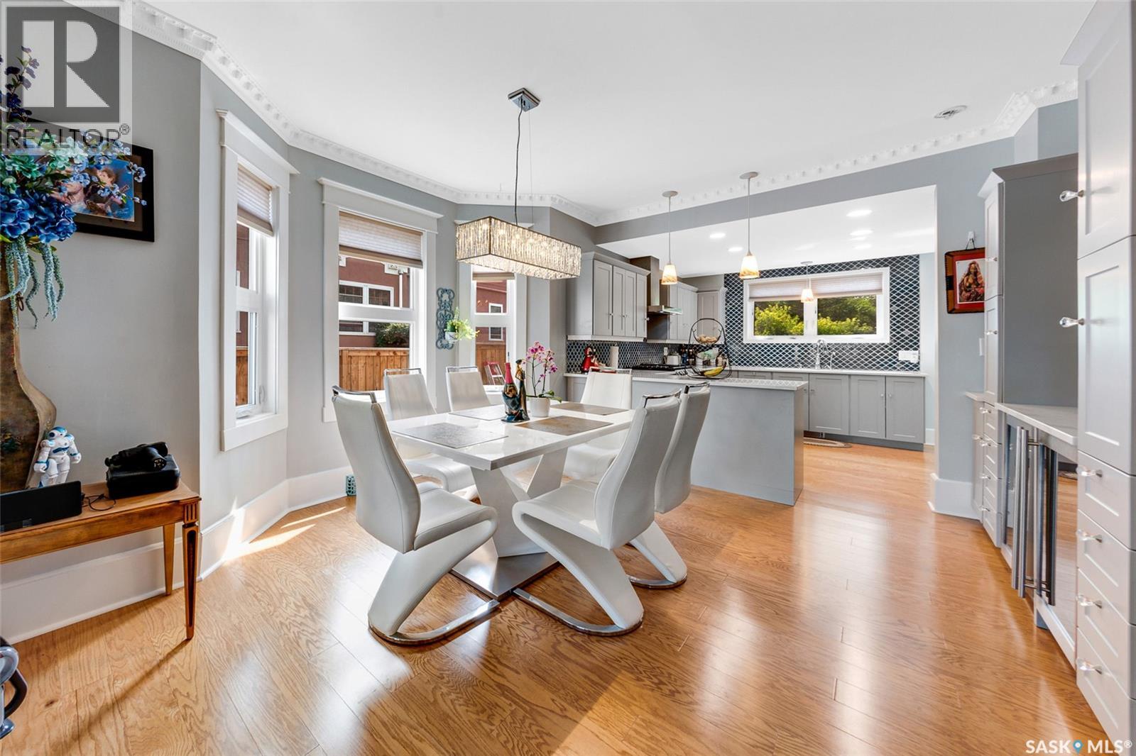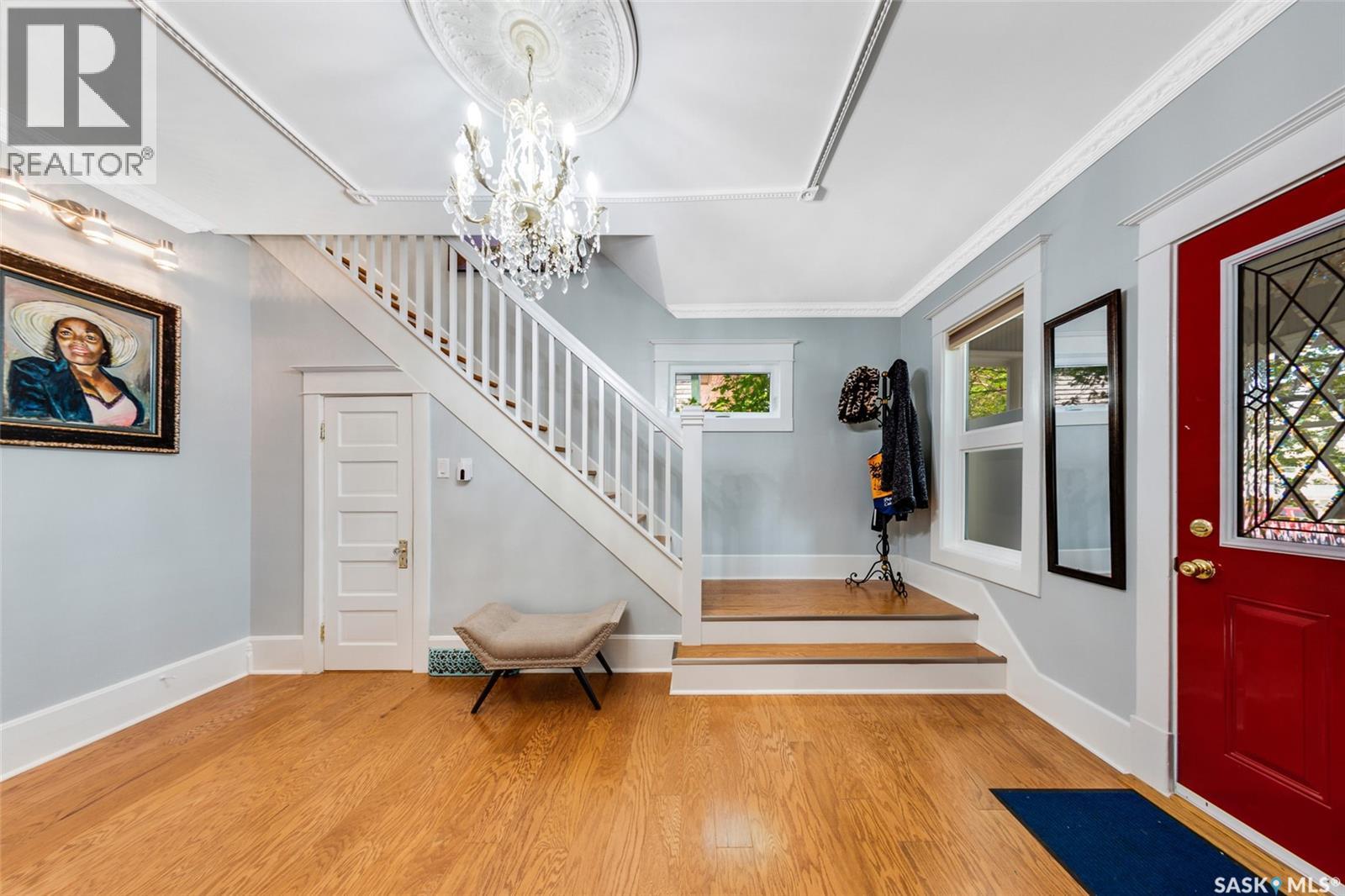 Just steps from the Saskatchewan River, tucked into the historic Nutana Neighbourhood, this Character 1911 home has been lovingly restored for clients who appreciate the history and location of this property. This spacious home has a completely renovated kitchen with quartz countertops, new cupboards and backsplash, under counter lighting, all new appliances, including a newer large wine and beer fridge and a nice open floorplan flowing through to the dining room and living room. An office space and main floor laundry are a great convenience on the main floor. Four- piece bathrooms on each of first two floors and half bath on third floor are convenient. Three large bedrooms on the second floor, one with a very large walk-in closet with window. (Could be used as a nursery.) One of the bedrooms on the second floor can also be used as a Sunroom. A new staircase leads to the third floor where the primary bedroom could be located. This room could also be used as a bonus room or very large office. Owner has replaced much of the crown molding to return this property to its original glory. There are South facing decks off the second and third floor as well as a back deck off the kitchen, also South facing. Most windows are new. Furnace, water heater and reverse osmosis recently changed. New paint everywhere and new engineered hardwood flooring make this is a turnkey property (Vinyl planking on the 3rd floor). Arches, tall baseboards, bay windows and glass doors complete the historic look of this home. This property has a completely fenced in backyard with board sidewalk leading to parking off the back alley. There is room for a garage. The owner has also created a small oasis of gardening boxes tucked around the back yard which is drenched in sunshine most of the day. Come and visit this beautifully renovated historic home, you’ll be glad you did. (id:34297)