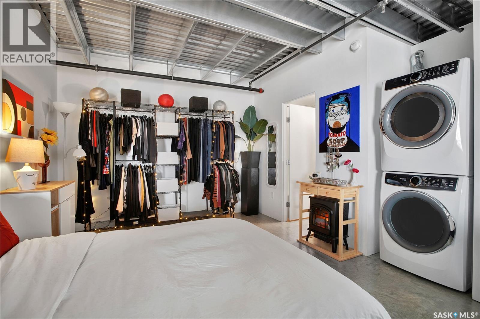 Sought after Top Floor, Corner Unit in the Iconic 2nd Ave Lofts building! You will feel like you have walked into a New York flat with the style & design of this unique unit! Unit 528 has an amazing layout (more of a square shape than rectangular making the space easier to work with)! It features high ceilings, ceiling to floor windows and a corner balcony & 2 bathrooms. As for this complex, you will immediately feel the awe factor as you walk down the spacious halls with the high ceilings and abundance of natural light! Because it is a solid concrete building it is very quiet. This well cared for unit has been freshly repainted and shows picture perfect. The kitchen features a large island with pot drawers for abundant storage. On this main level you will also find a 2 piece washroom and access to the balcony. Upstairs you will find the spacious Primary bedroom with a 4 piece ensuite bathroom. The laundry is also located on the 2nd level and features a newer Electrolux stacking washer/dryer ( with a 4 year warranty). Another wonderful feature is that this unit has a central air conditioning unit ( ~6 years old)or use the commercial grade fan. This unit features an underground heated parking and a storage unit ( in front of the parking space). There is also storage racks for your bike (s). Check out the 2 gyms and out door patio Bbq deck ! Condo fees include all utilities .This building offers a great vibe to it as it is home to many professionals & pets with board approval. This location is steps away from many restaurants, shopping and entertainment. Call your favourite Agent today to tour this amazing Condo & Complex! (id:34297)