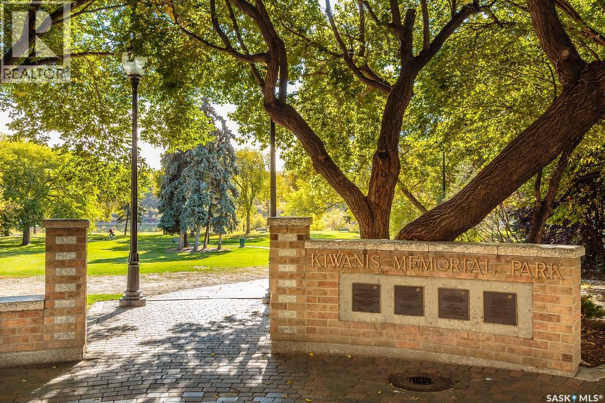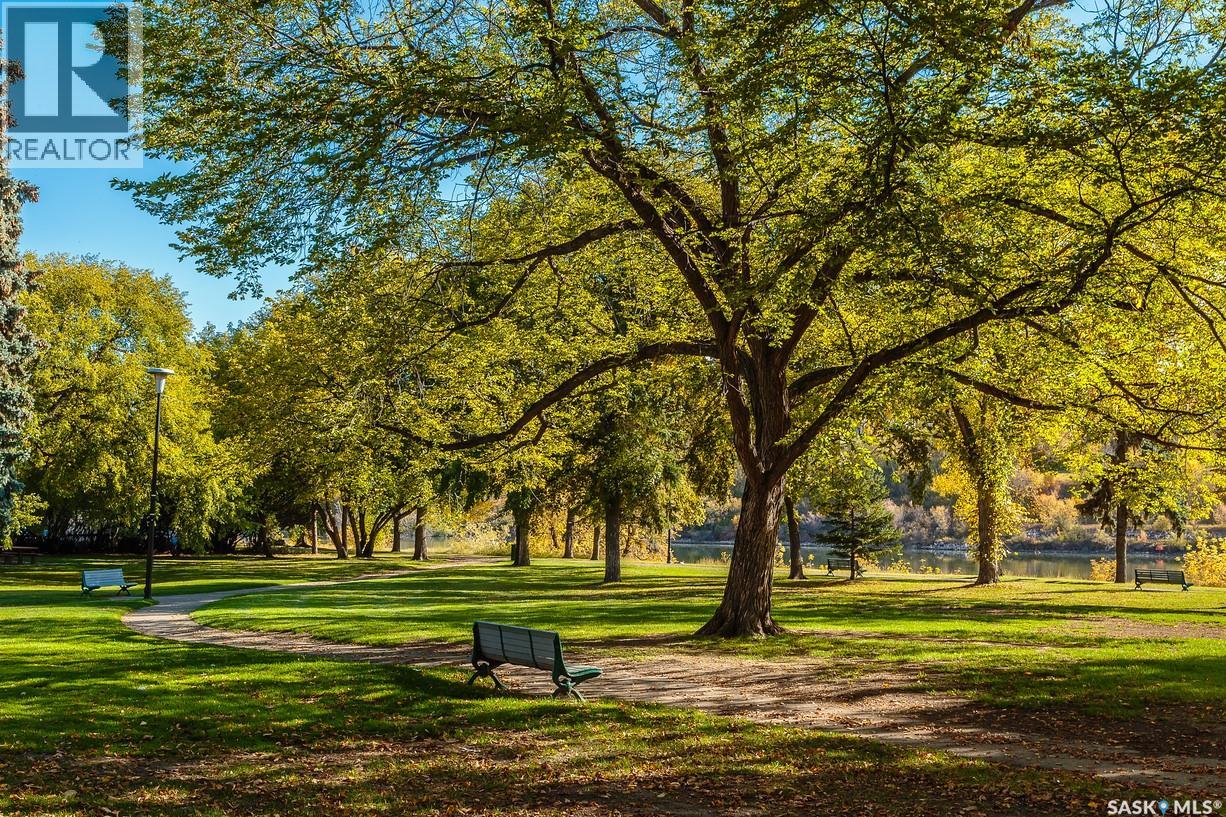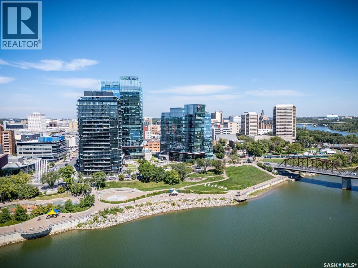 An incredible suite location in Saskatoon’s downtown district overlooking beautiful Kiwanis Memorial Park, with views of the river and the historic Delta Bessborough Hotel! Enjoying what is arguably the best floor plan in the building (40), the sun-filled suite offers an east-facing position and nearly 1,200 square ft of architecturally designed space, a large window wall across the entire entertaining area, 2 bedrooms & 2 full bathrooms, formal dining, and impressive views of the Bessborough Hotel from both bedrooms. Whether considering a modest or high-level remodel, this is a most attractive opportunity to renovate a river-front condo to your personal tastes. Additional interior features include a white Oak kitchen, radiant heating, double-wide bedroom closets, tiled kitchen & bathroom flooring, private entry, and in-suite laundry. The Renaissance enjoys a large resident lobby, heated underground parking and storage facilities, an indoor pool, spa & waterslide, gym, and sound reserve fund. This river-front location is within a 5min walk of Broadway and River Landing, and offers the best in daily conveniences and walkable city life with easy access to the downtown's and Nutana’s amazing parks, cafés, globally-renowned eateries, and fantastic shopping. Saskatoon’s many music, festival sites, and cultural venues also take centre stage in the Summer months in the river valley mere minutes from your door.! The suite comes complete with a full appliance package, 1 underground parking stall, and a heated storage locker (strata fees of $702.50 include heat & water utilities). You are invited to inquire with your local realtor to schedule your private tour. Open House Sun, Apr. 12, 11am-Noon. (id:34297)
