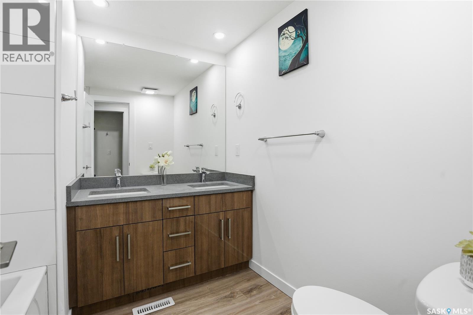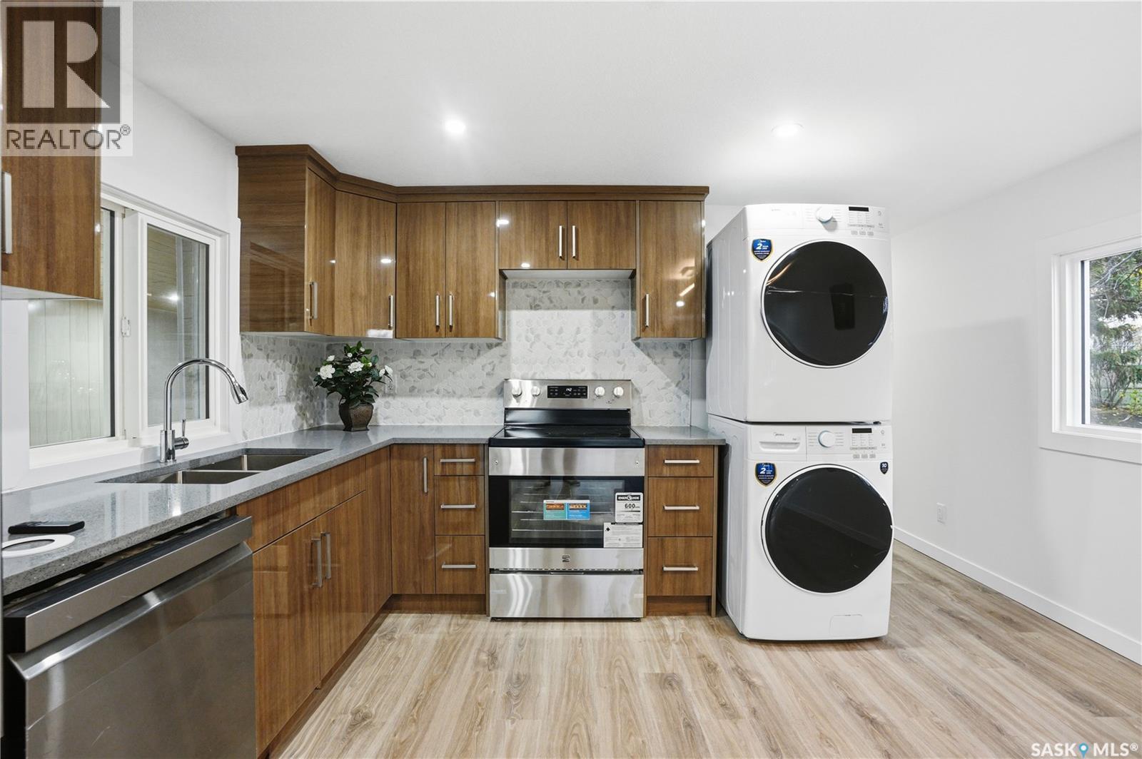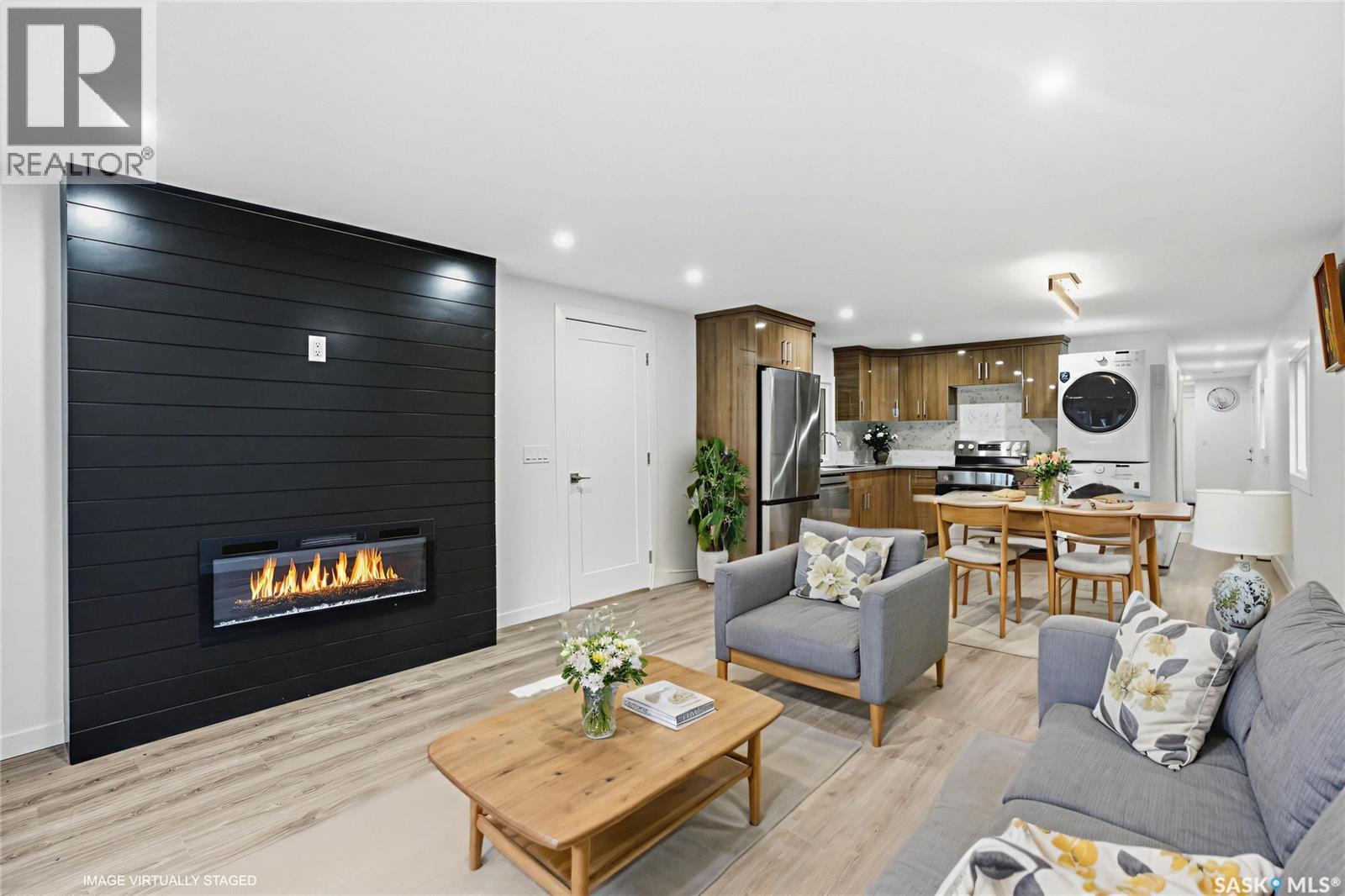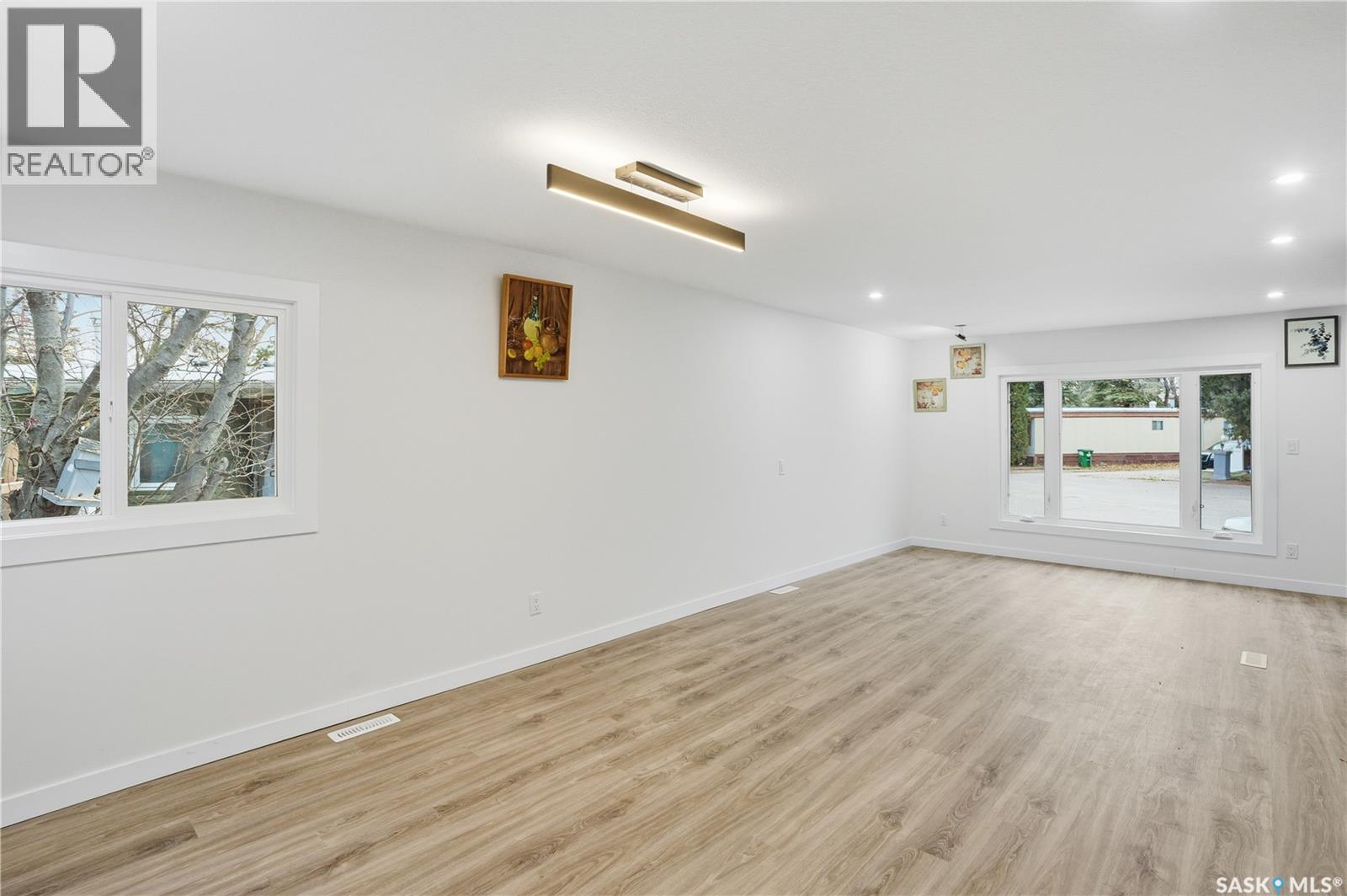 A backyard that feels like your own private park! This beautifully renovated mobile home sits on one of the best lots in the entire community, backing directly onto green space, ball diamonds, and a gorgeous park setting. It’s rare to find this much space and privacy on Saskatoon’s east side, especially at this price point. Inside, you’ll find over 1,200 sq. ft. of bright, modern living space that’s been updated from top to bottom. Everything’s been done from the newer furnace and new windows to the sleek kitchen with quartz counters, tile backsplash, soft-close cabinets, and stainless steel appliances. The open layout feels warm and welcoming with luxury vinyl plank flooring, pot lighting, and a cozy electric fireplace that ties it all together. There’s also an oversized family room, perfect for an office, playroom, or extra lounge space. The main bathroom features dual sinks and the primary bedroom has a stylish feature wall that adds character. Outside, enjoy two new decks, one for morning coffee, one for evening BBQs and a yard so big it honestly feels like your own park. Lot fees cover water, sewer, snow removal, garbage pick-up, and park maintenance, so you can just move in and enjoy. If you’re looking for something move-in ready with unbeatable space, style, and location, this is a must-see. Homes like this, especially with a yard like that, don’t come around often! Park is managed by ICR and lot fees currently $1158/month and include property taxes, water, sewer, park maintenance, snow removal, garbage/recycling pick-up. (id:34297)